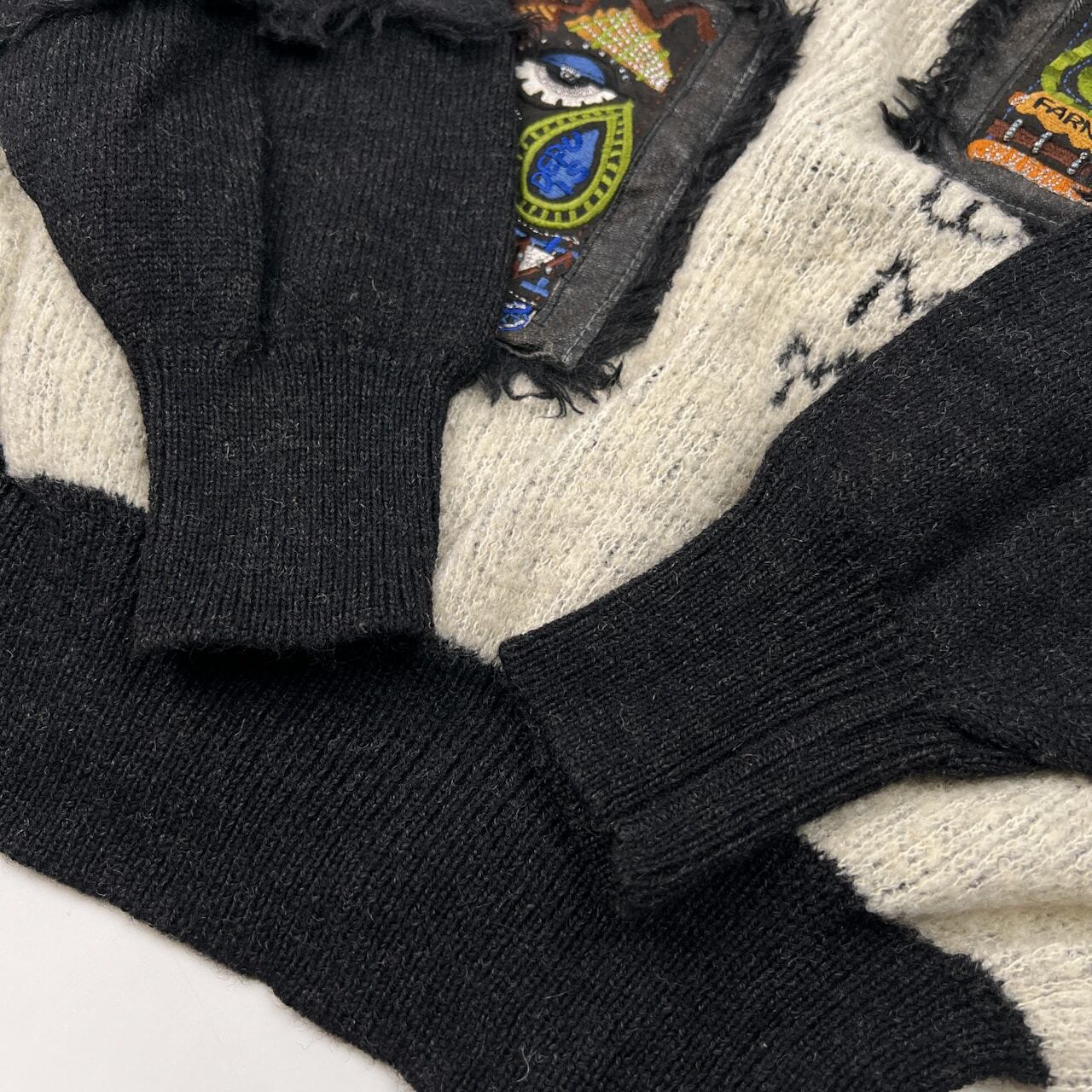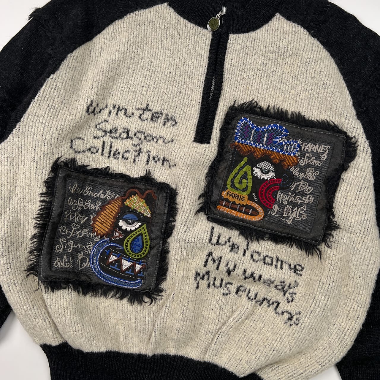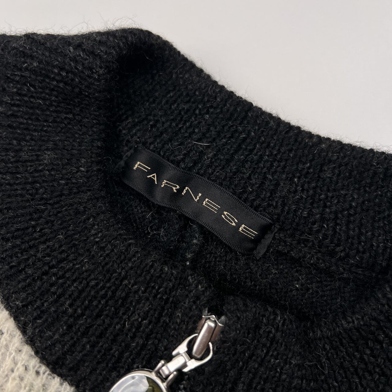90s FARNESE ファルネーゼ 豪華 デザイン ハーフジップ ウールニットセーター 3 /ブラック×ホワイト/ビンテージ/ライカ
