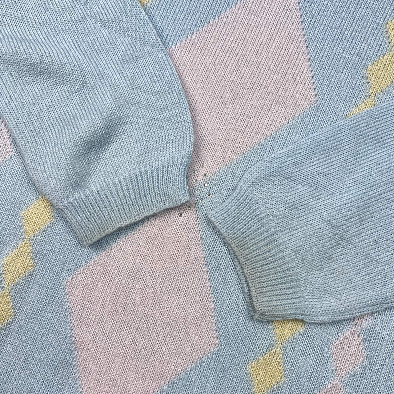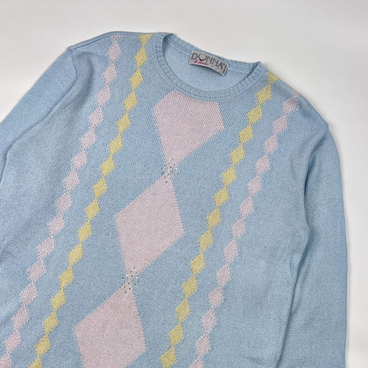 イタリア製 DONNA ti amo ドナ ティアモ ラインストーン アーガイル風 デザイン 長袖 ニット セーター /水色系 レディース