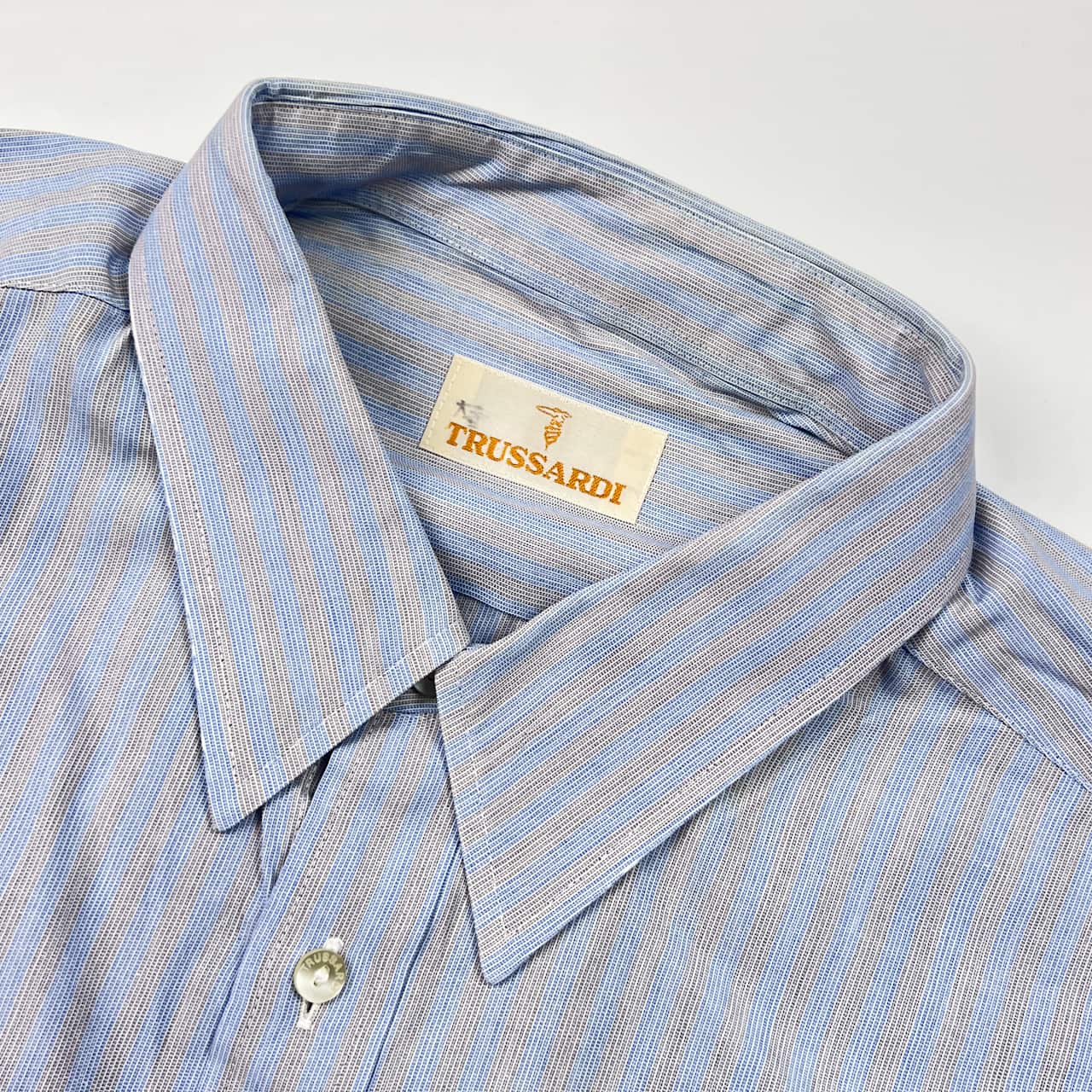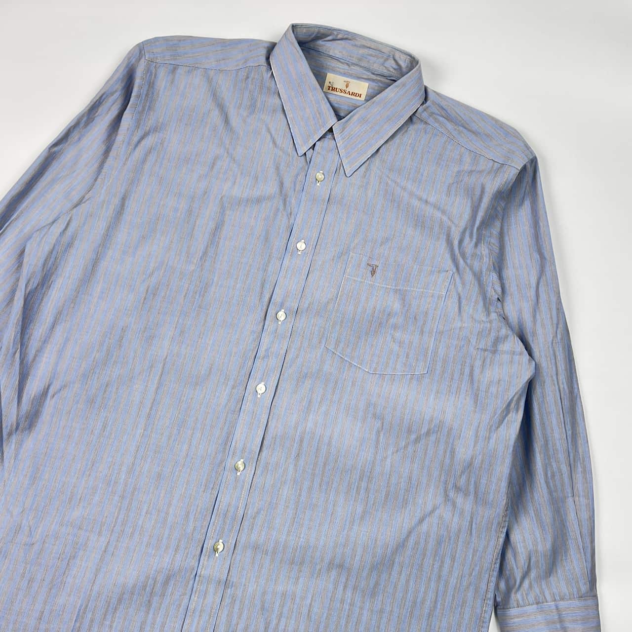 TRUSSARDI トラサルディ ストライプ 長袖シャツ /ブルー×グレー メンズ
