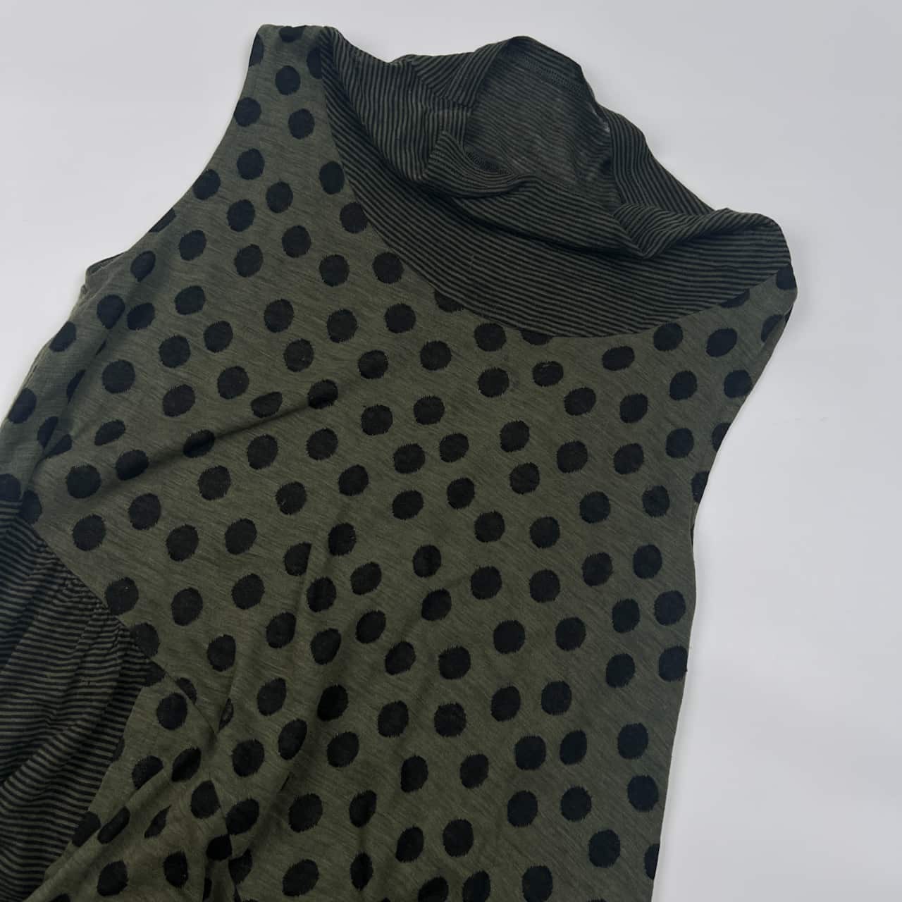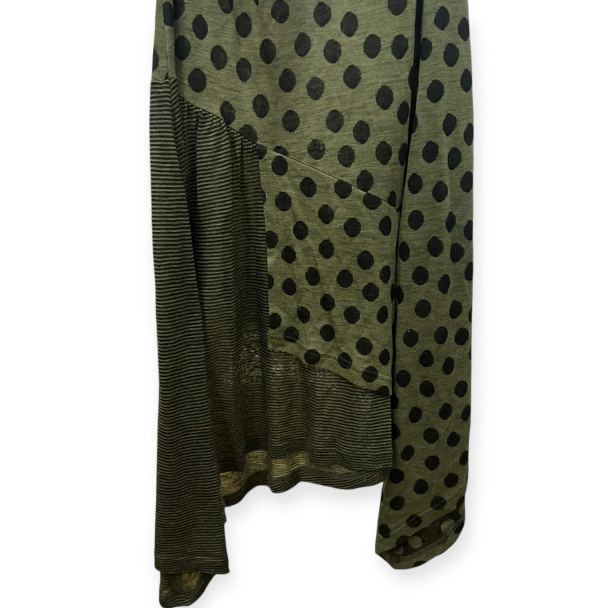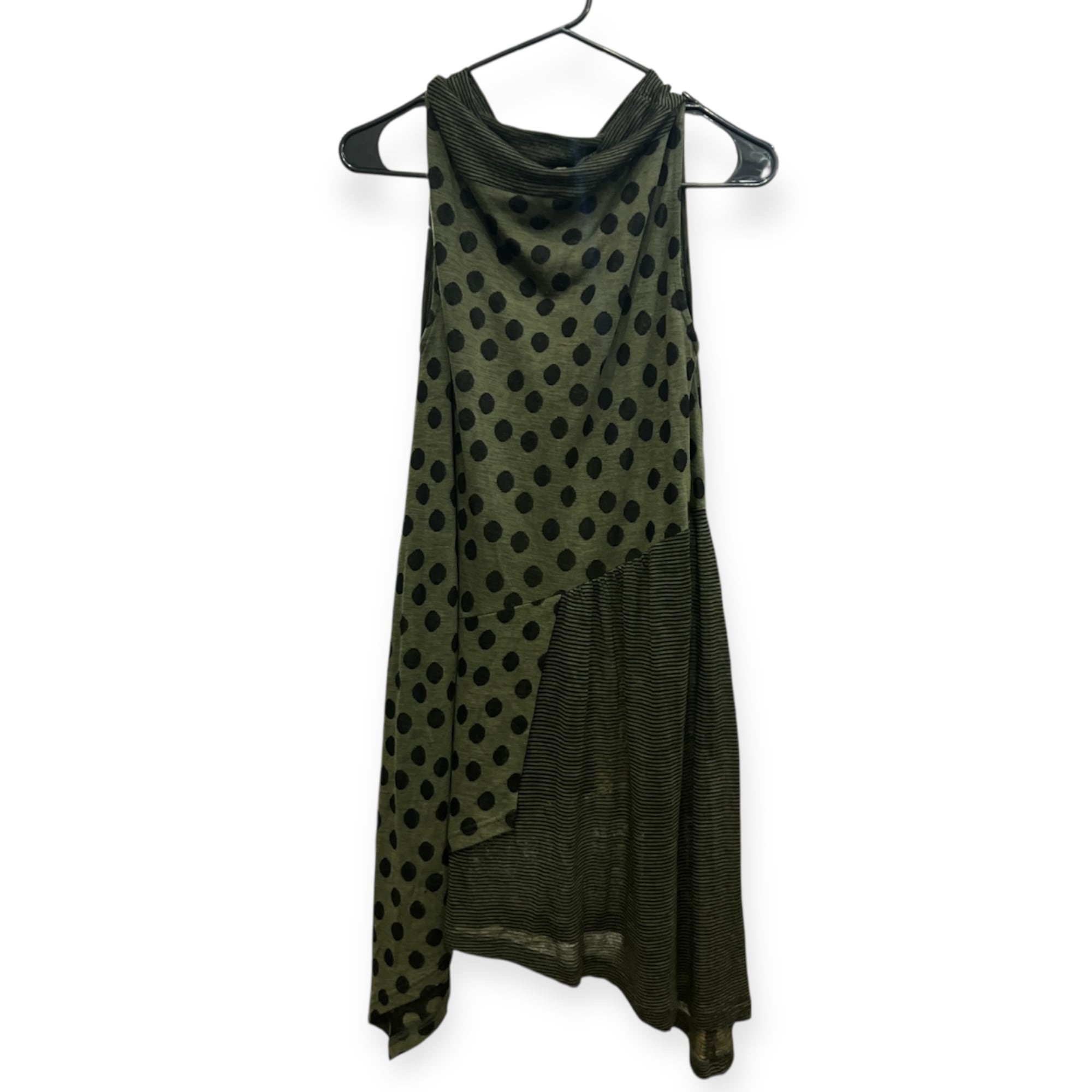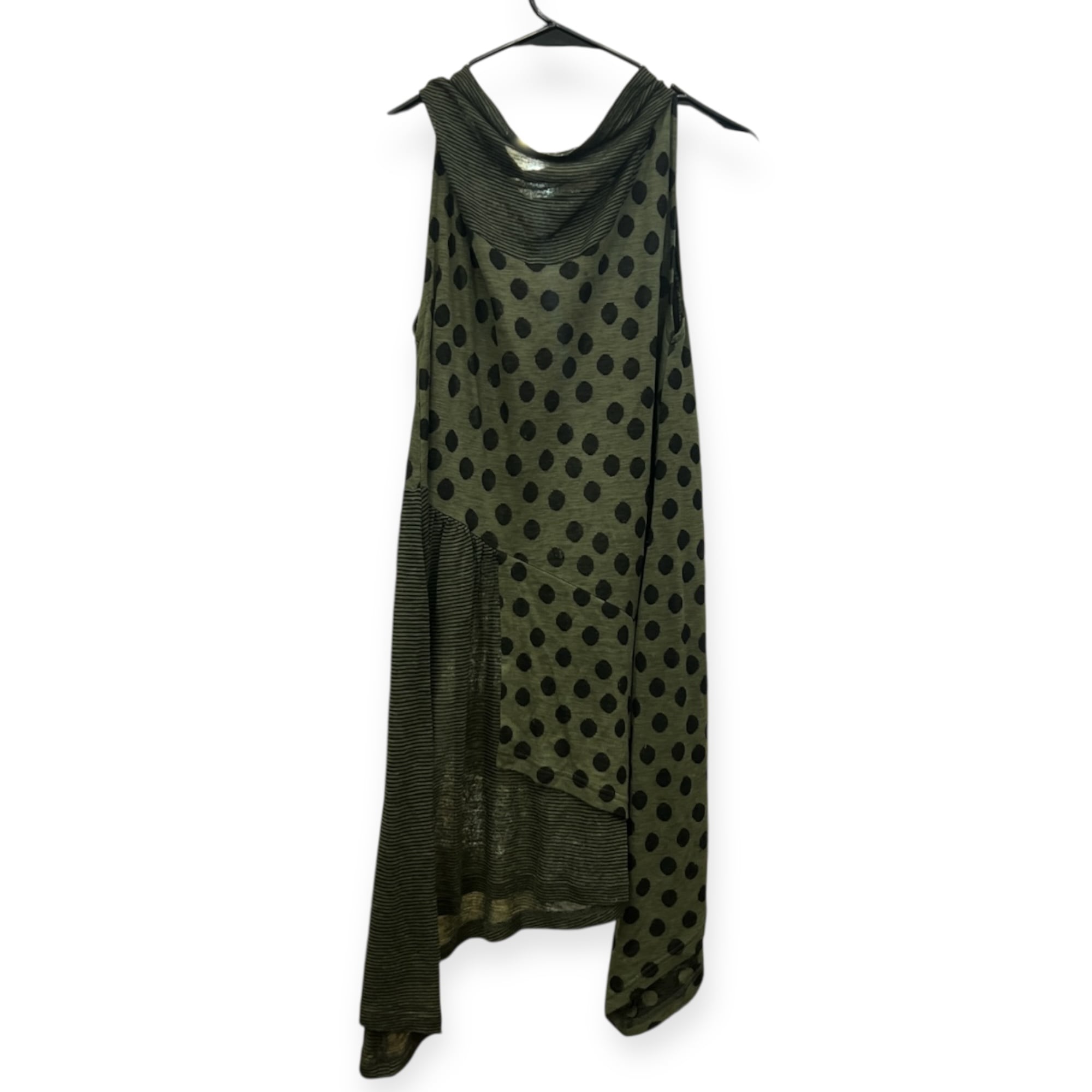 慈雨 ジウ ボーダー ドット ノースリーブ アシンメトリー チュニック丈 トップス 40/グリーン×ブラック系 レディース