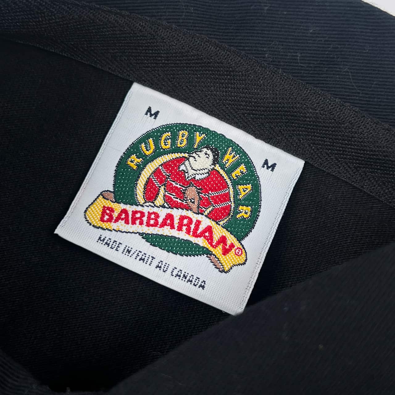 90s カナダ製 BARBARIAN バーバリアン 七分袖 ラガーシャツ ポロシャツ M/ブラック メンズ