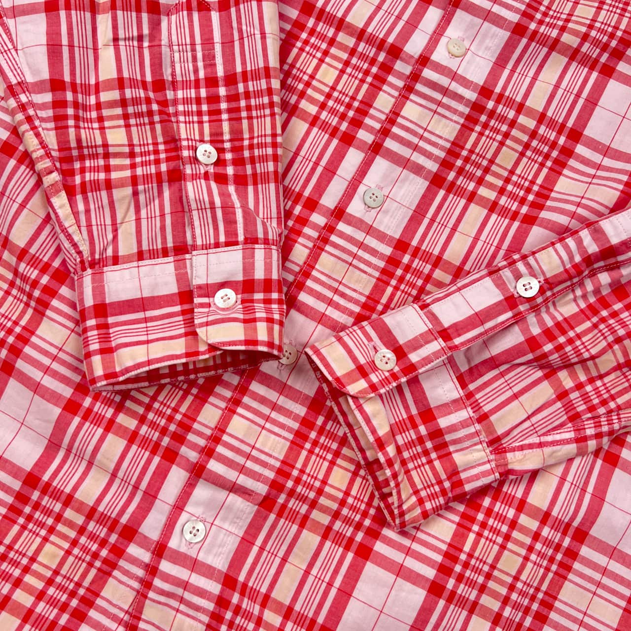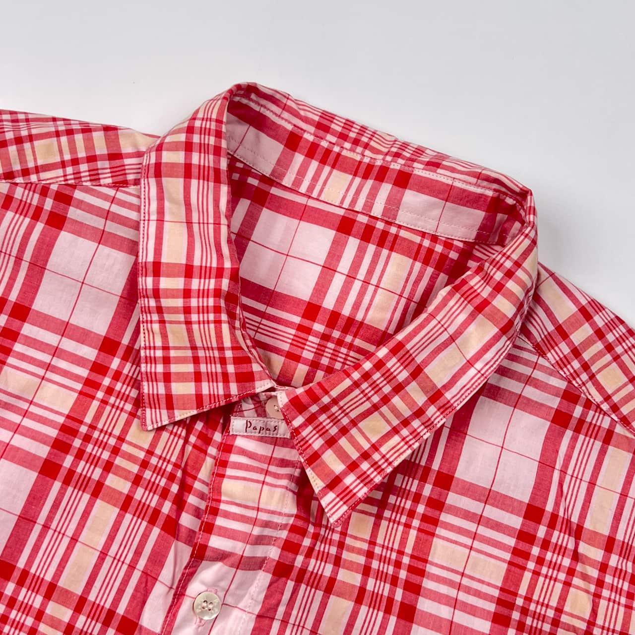 Papas パパス チェック 長袖シャツ M/レッド×ピンク 系 メンズ
