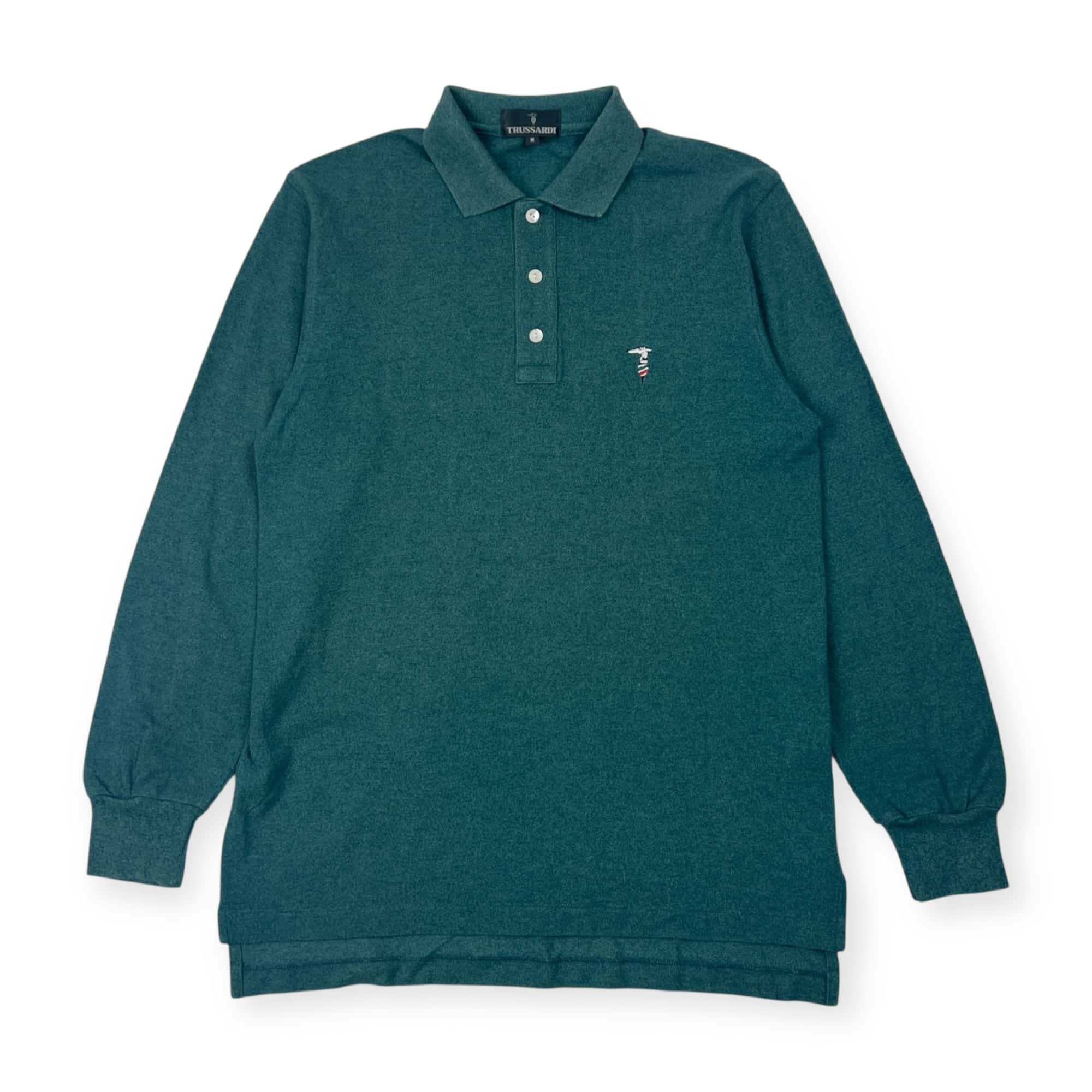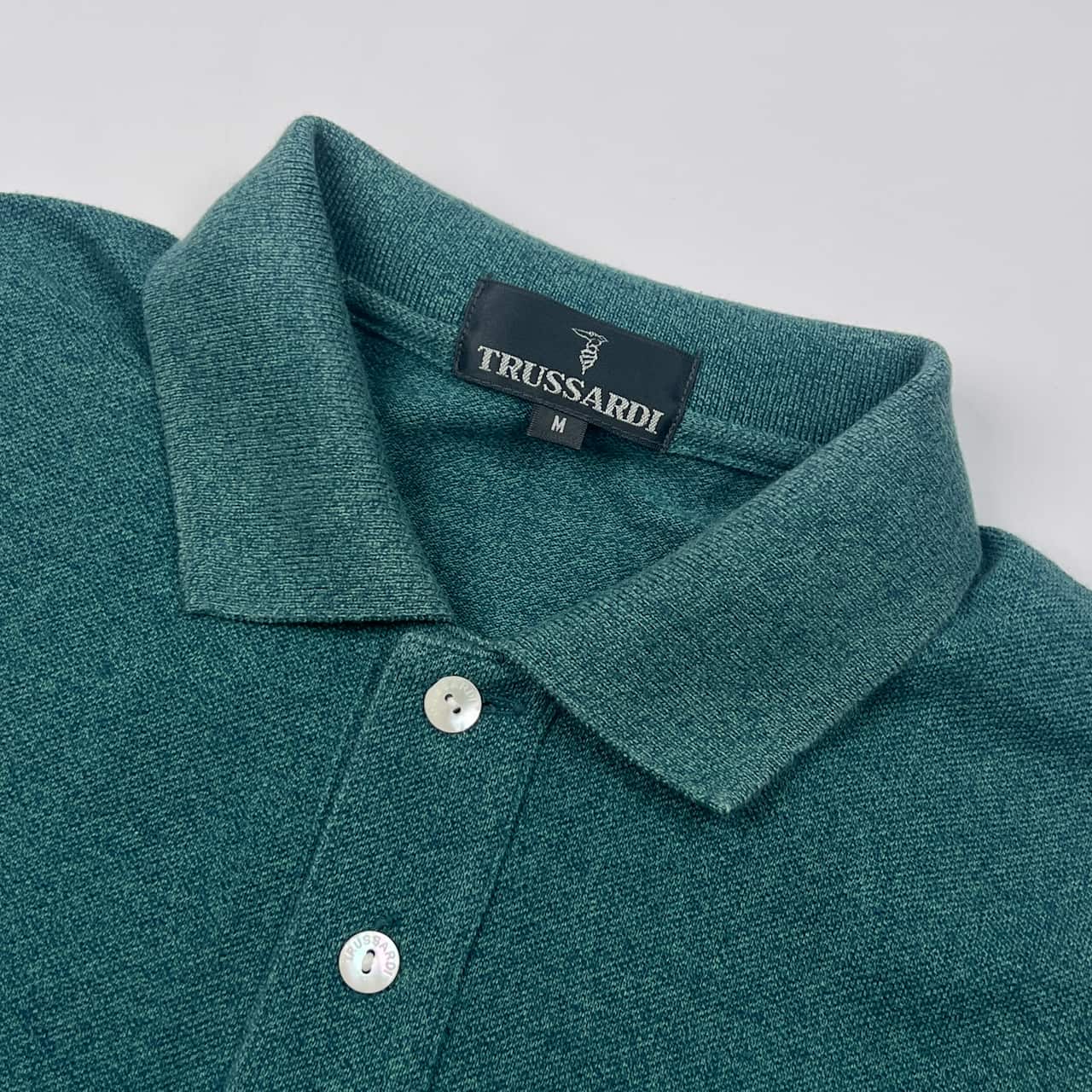 TRUSSARDI トラサルディ 鹿の子 長袖 ポロシャツ M/グリーン系 メンズ