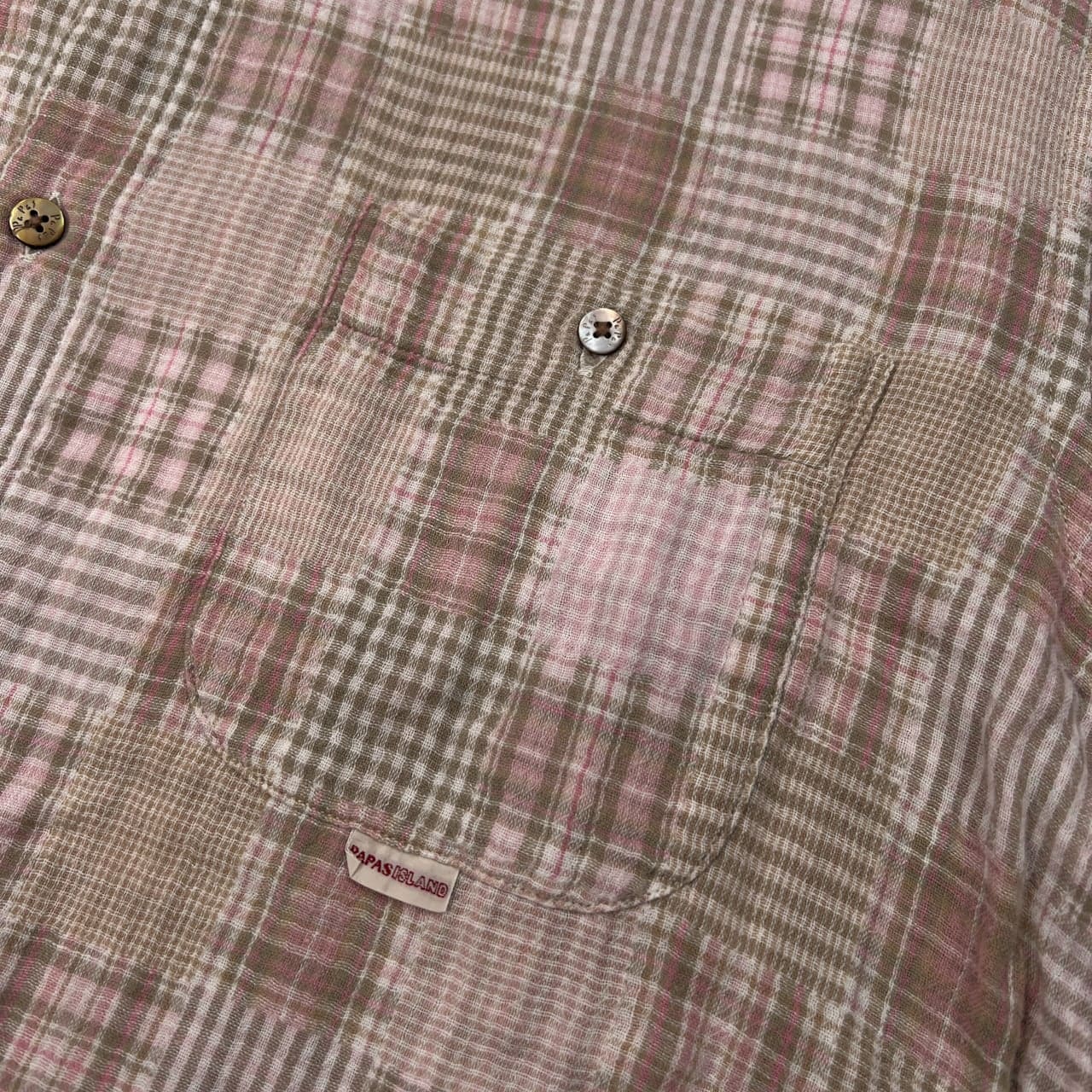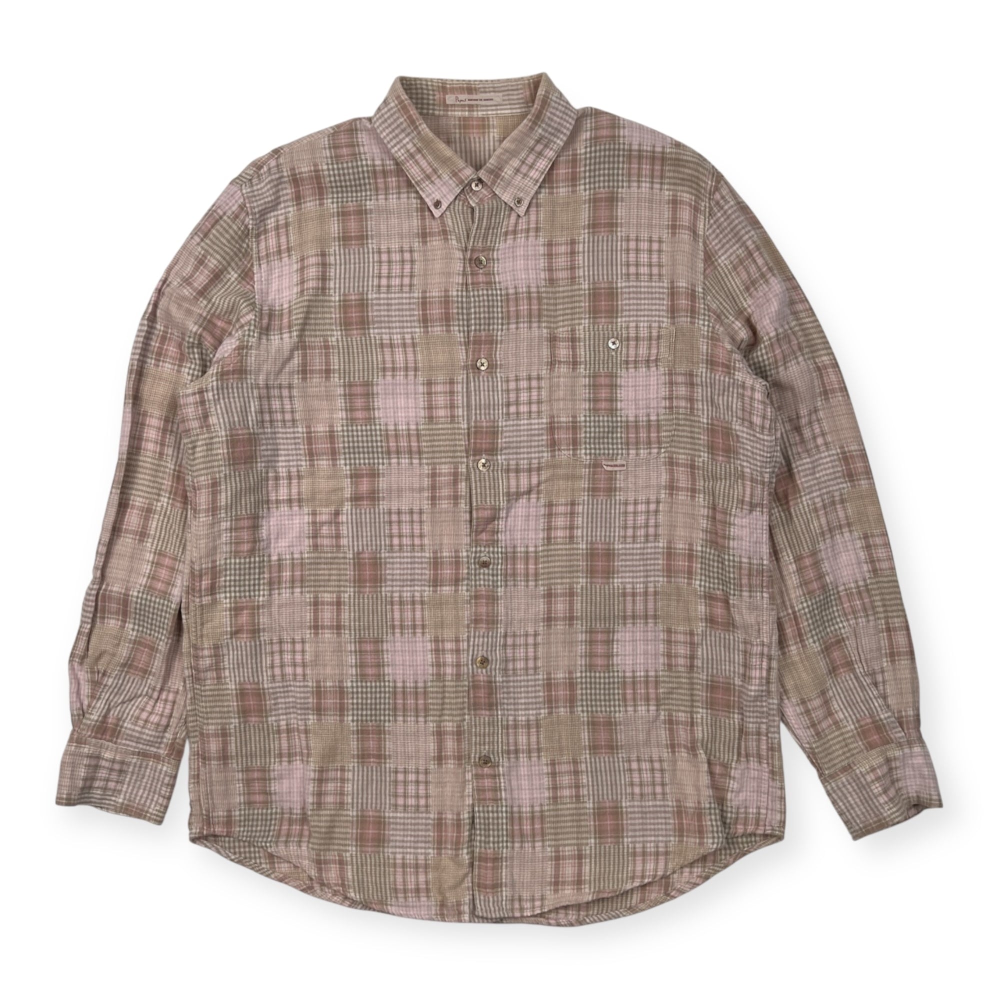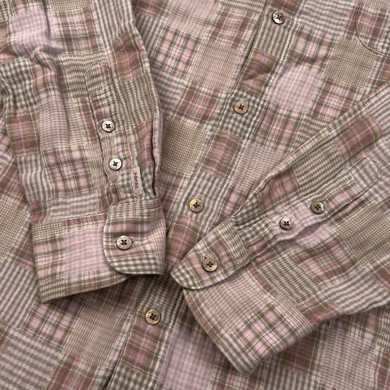 PAPAS パパス チェック柄 BD 長袖シャツ サイズ 50 L /ピンク系/麻混/日本製/ガーゼコットン系