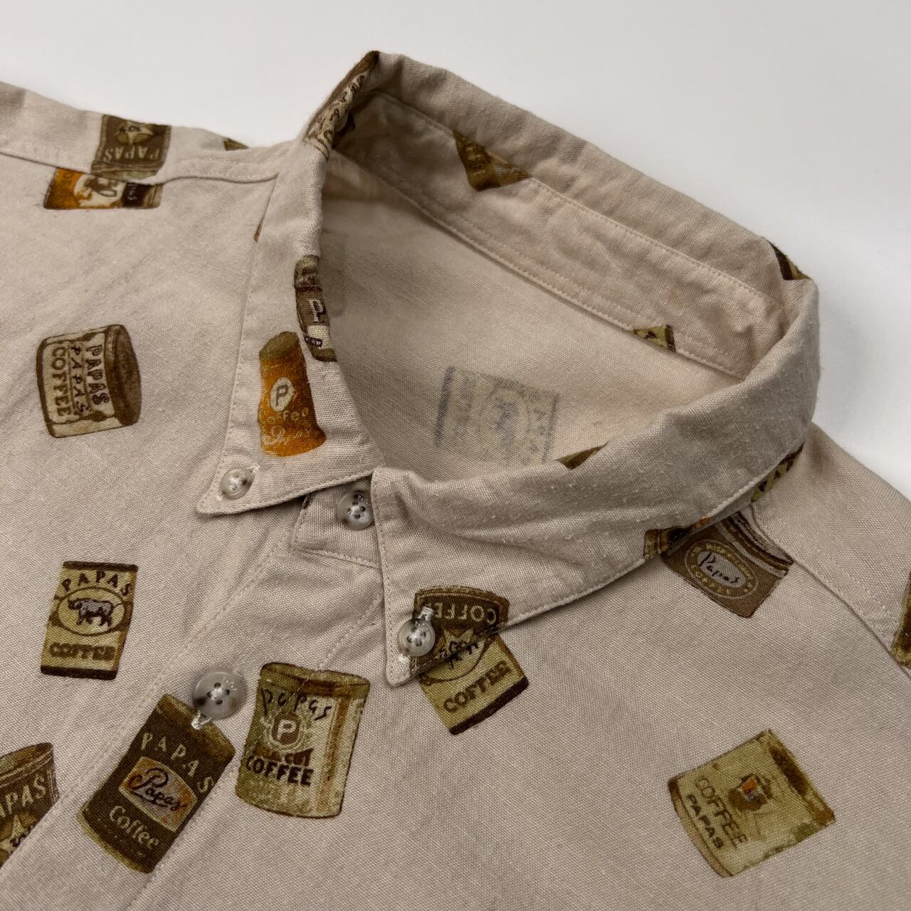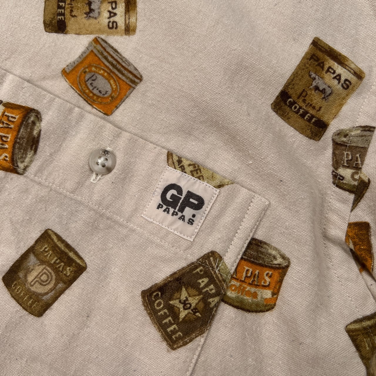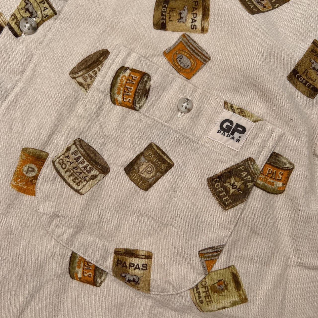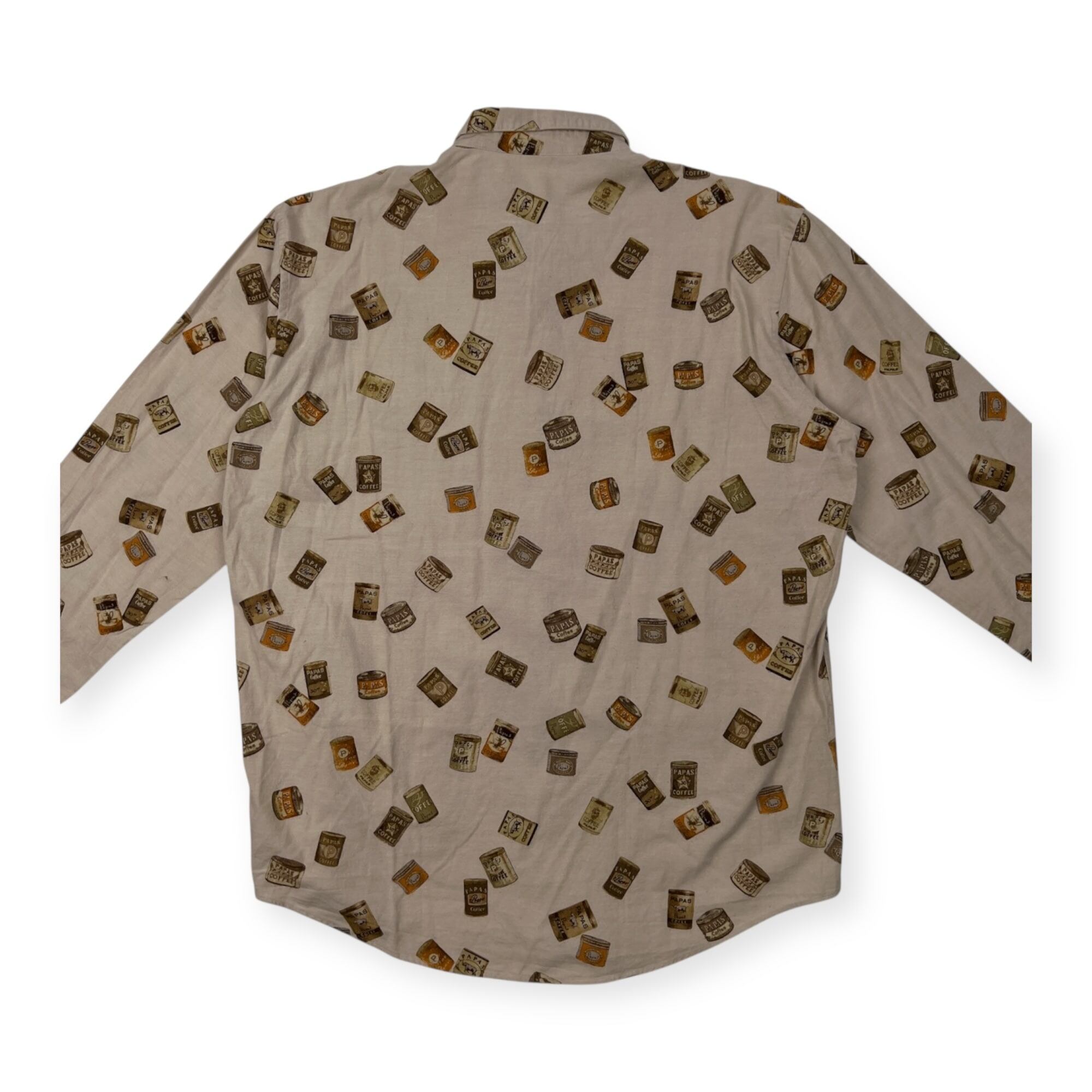 PAPAS パパス 缶詰 総柄 BD 長袖シャツ サイズ 50 L /ベージュ系/日本製