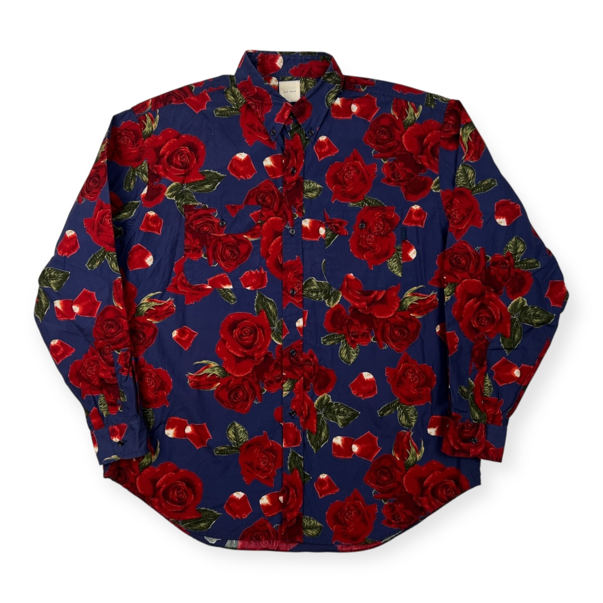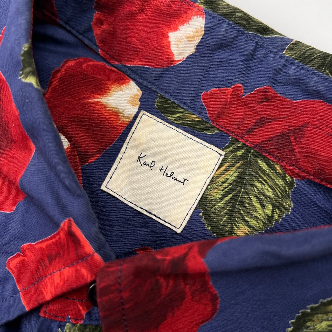 Karl Helmut カールヘルム 花柄 総柄 両胸ポケット BD 長袖シャツ サイズ L /ネイビーブルー×レッド/メンズ/ピンクハウス/日本製