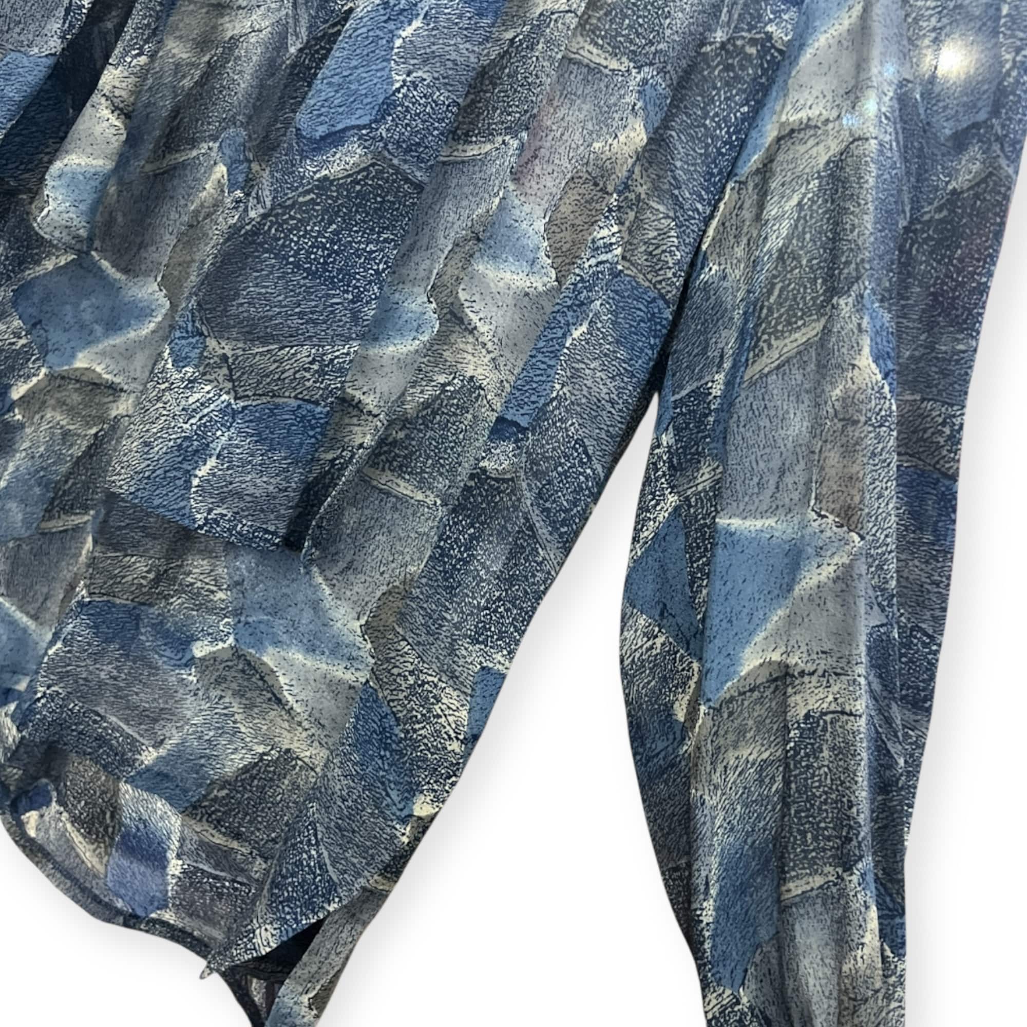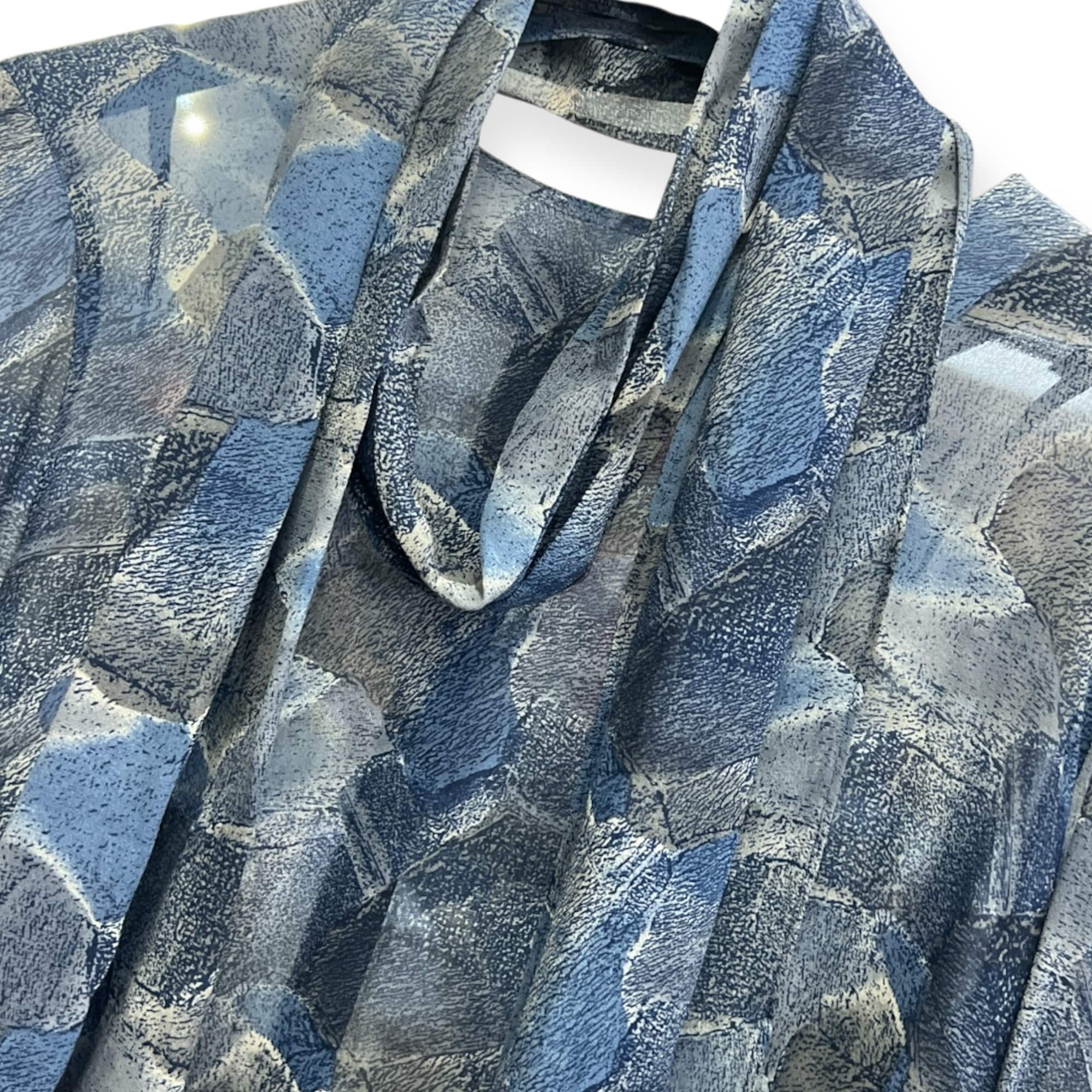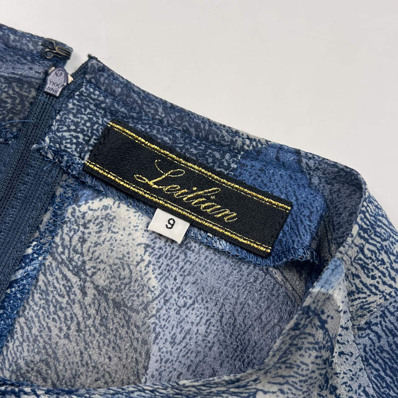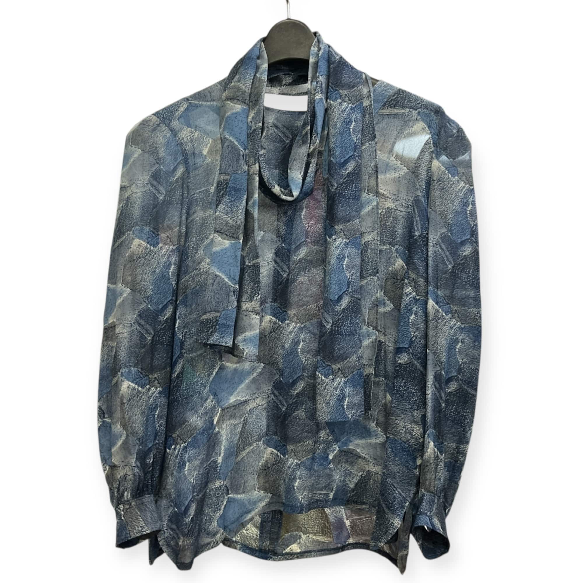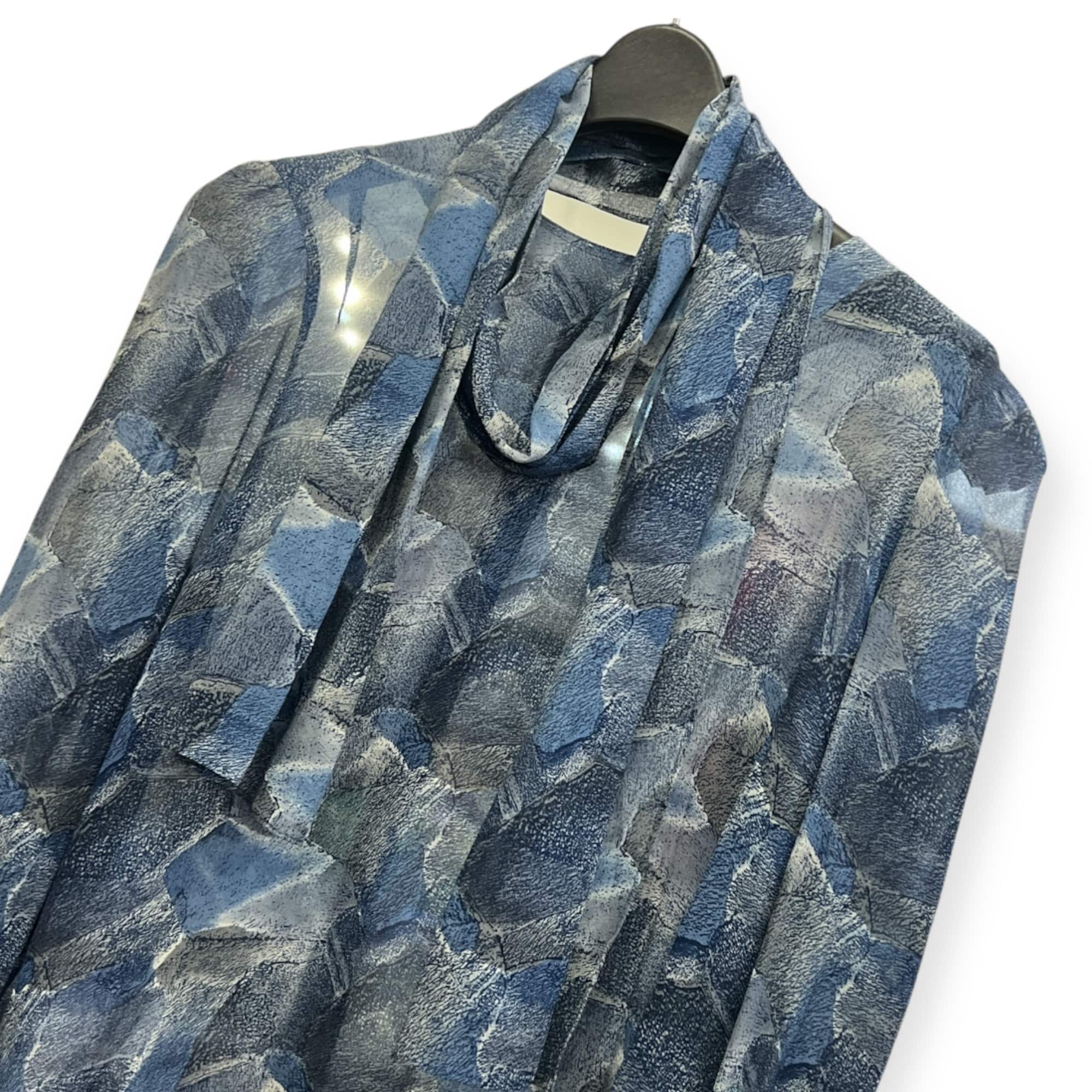 シルク100% Leilian レリアン ボウタイ付き アート風 デザイン 長袖シャツ ブラウス 9/ブルー系 レディース シースルー