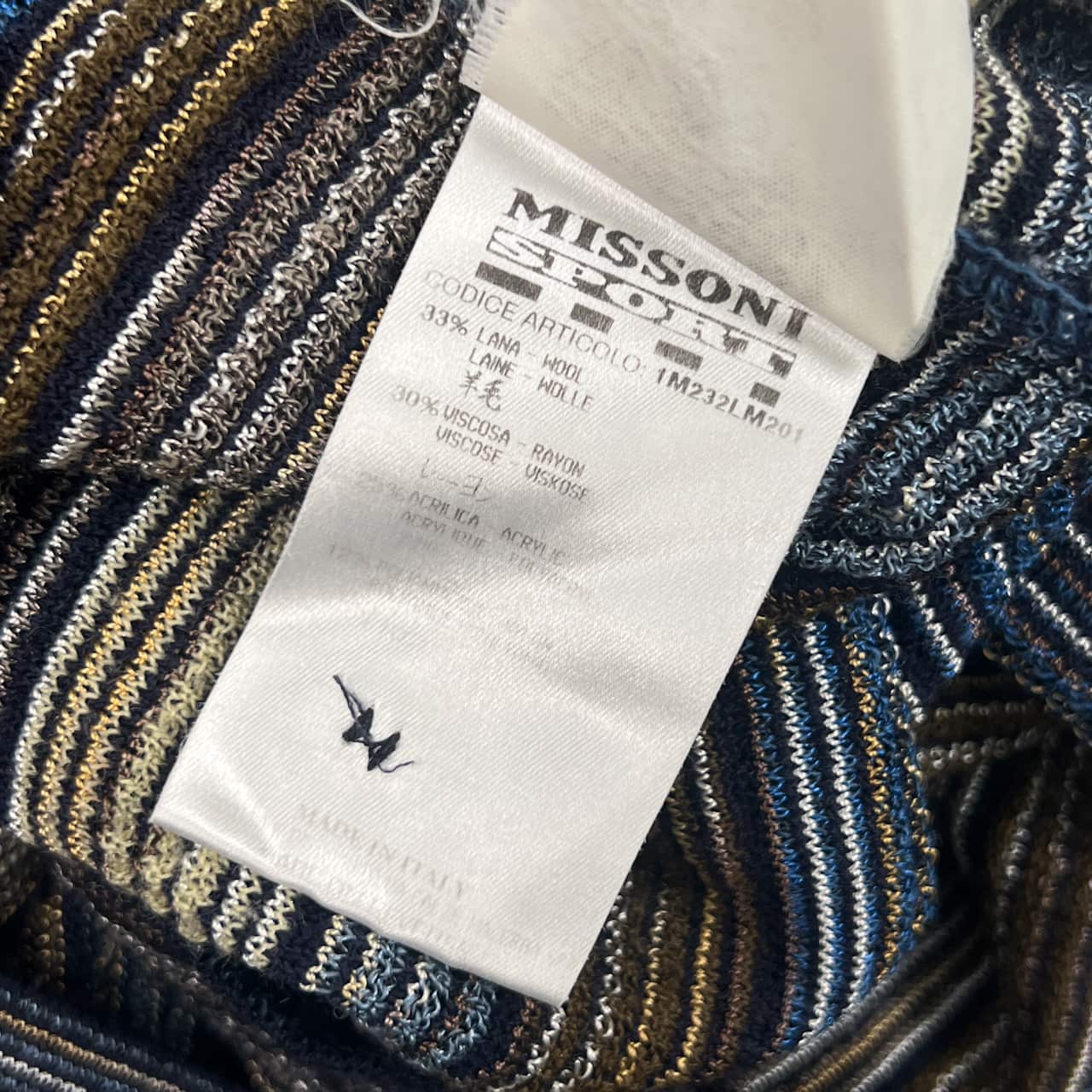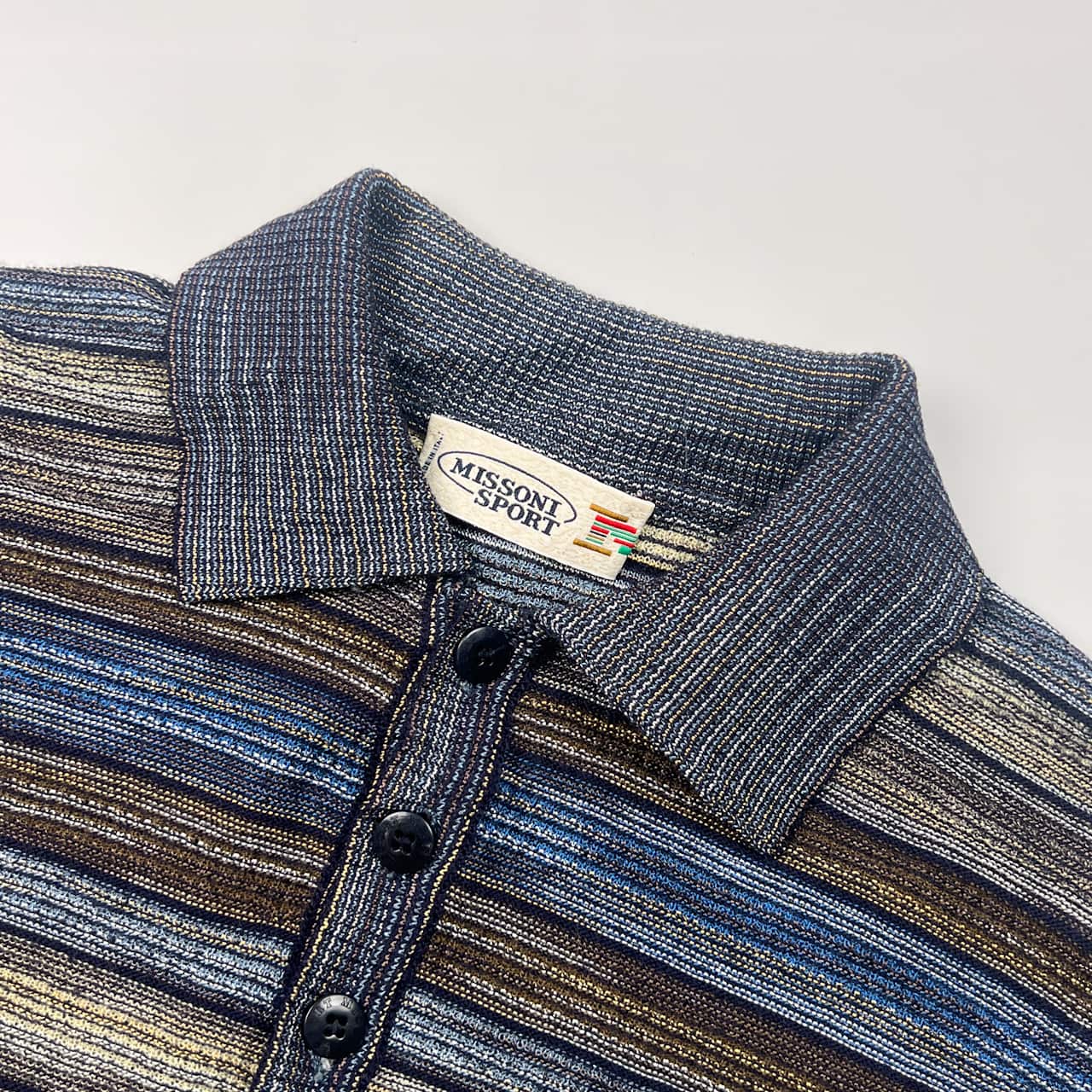 イタリア製 羊毛混 MISSONI SPORT ミッソーニスポーツ ボーダー 長袖 ポロニット 46/マルチ メンズ