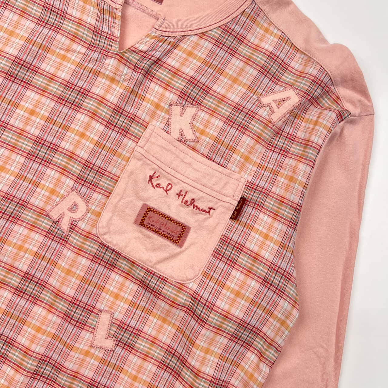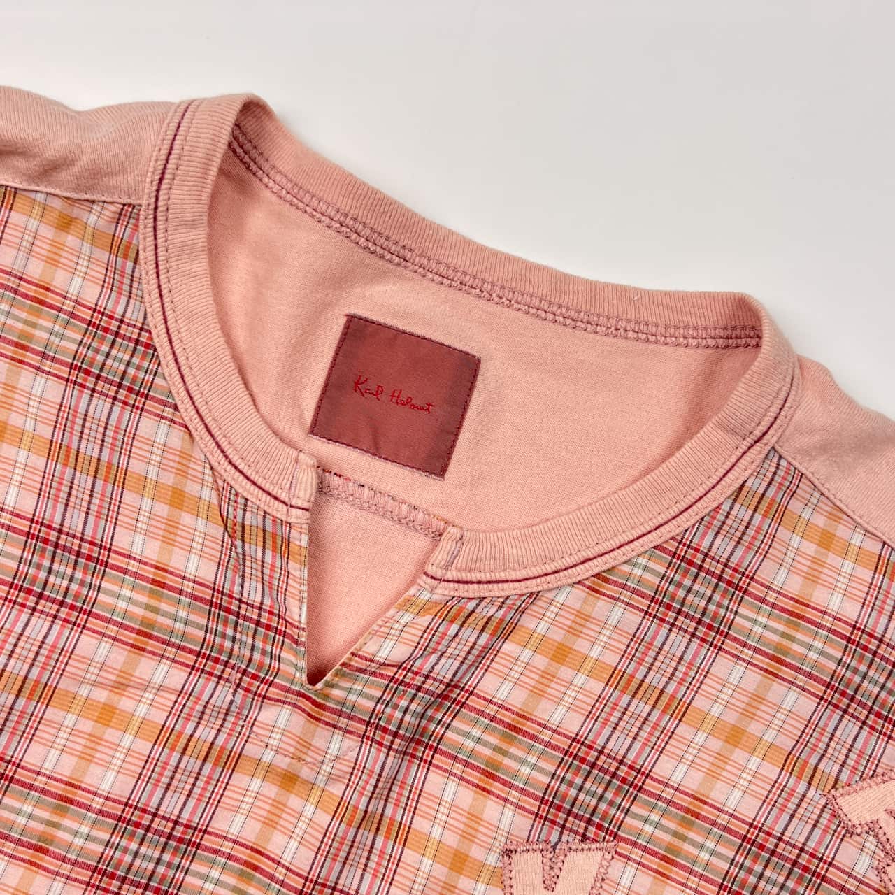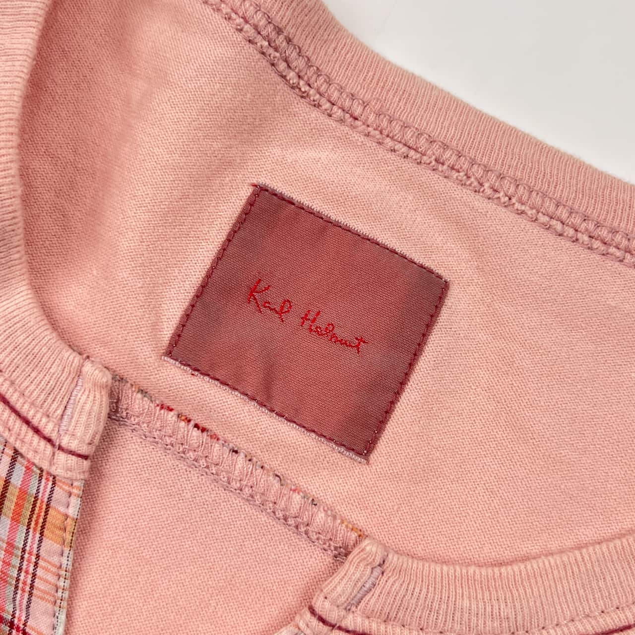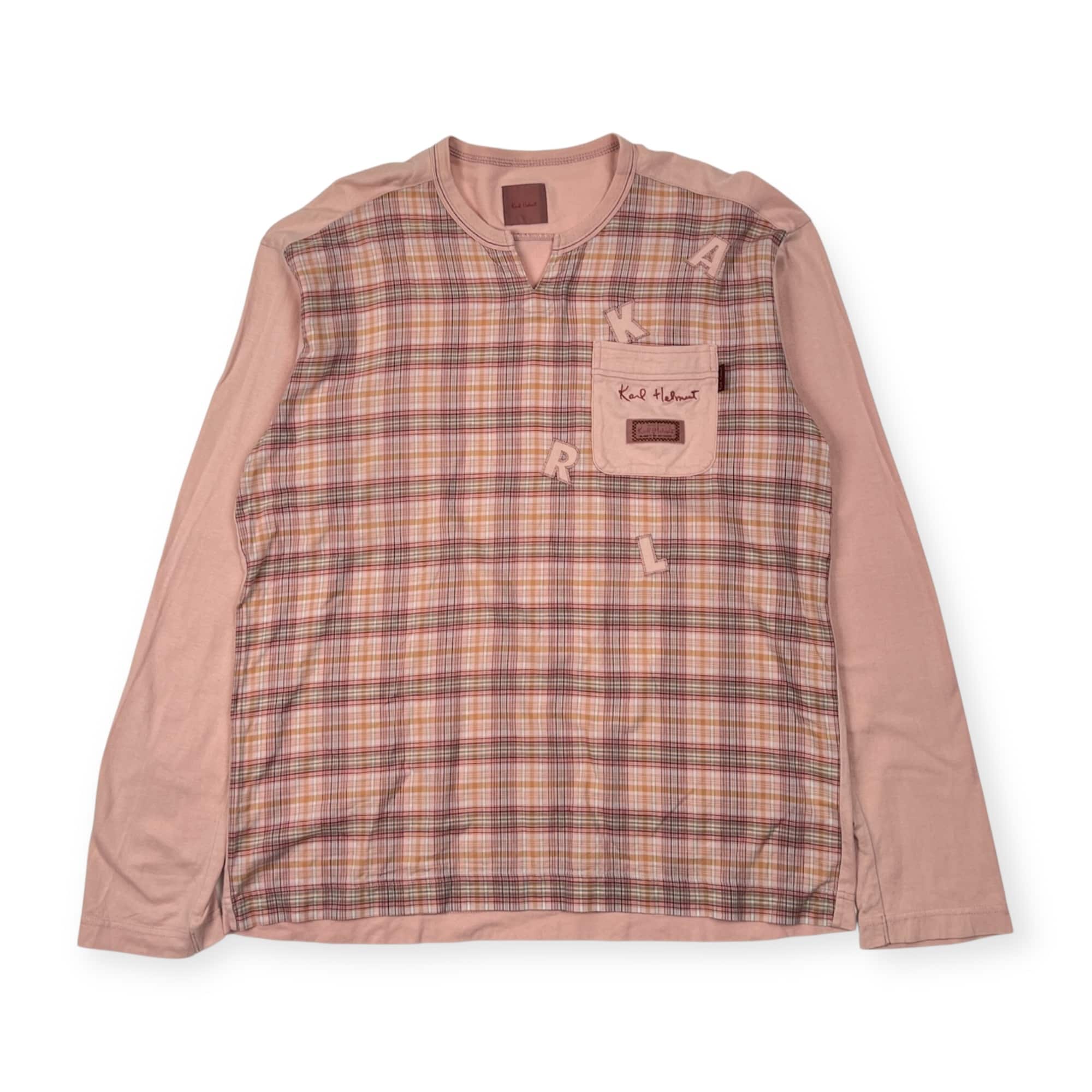 Karl Helmut カールヘルム チェック 長袖 Tシャツ L/ピンク系 メルローズ