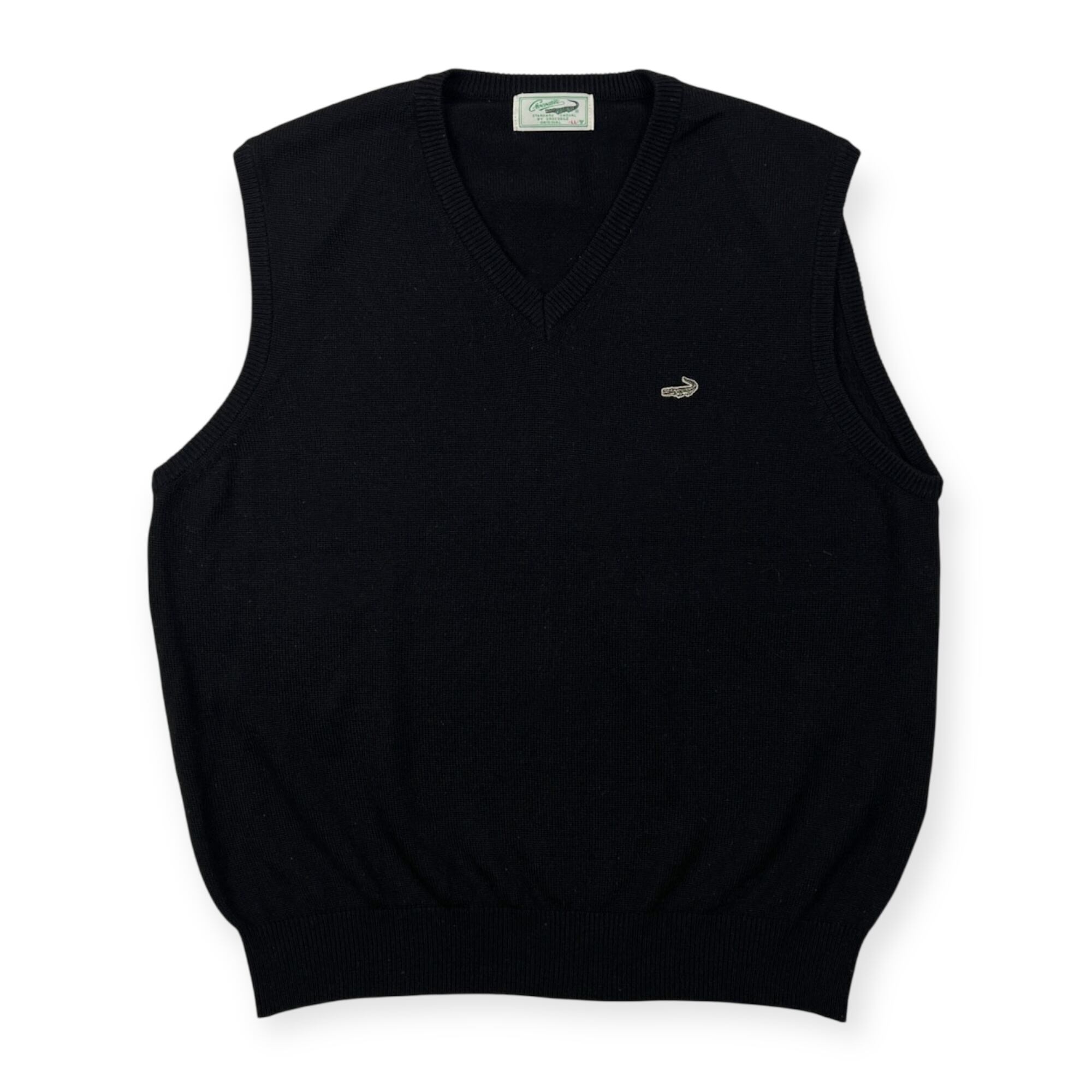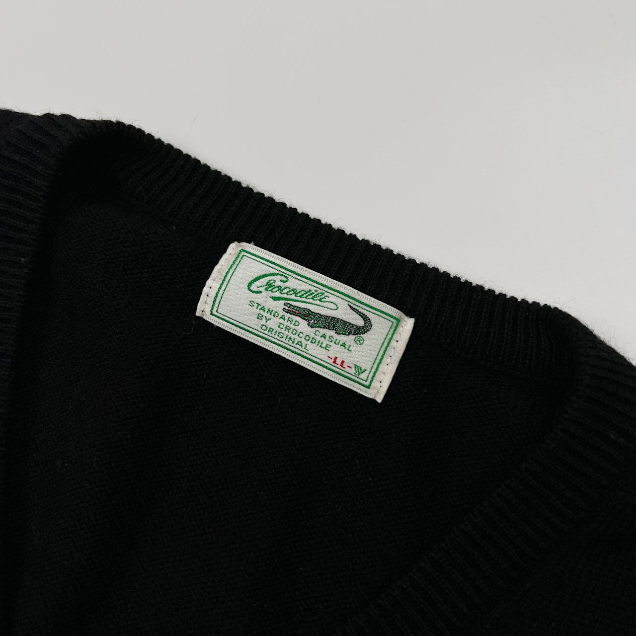 Crocodile クロコダイル ワンポイント刺繍 Vネック ウールニット ベスト サイズ LL /メンズ/ブラック