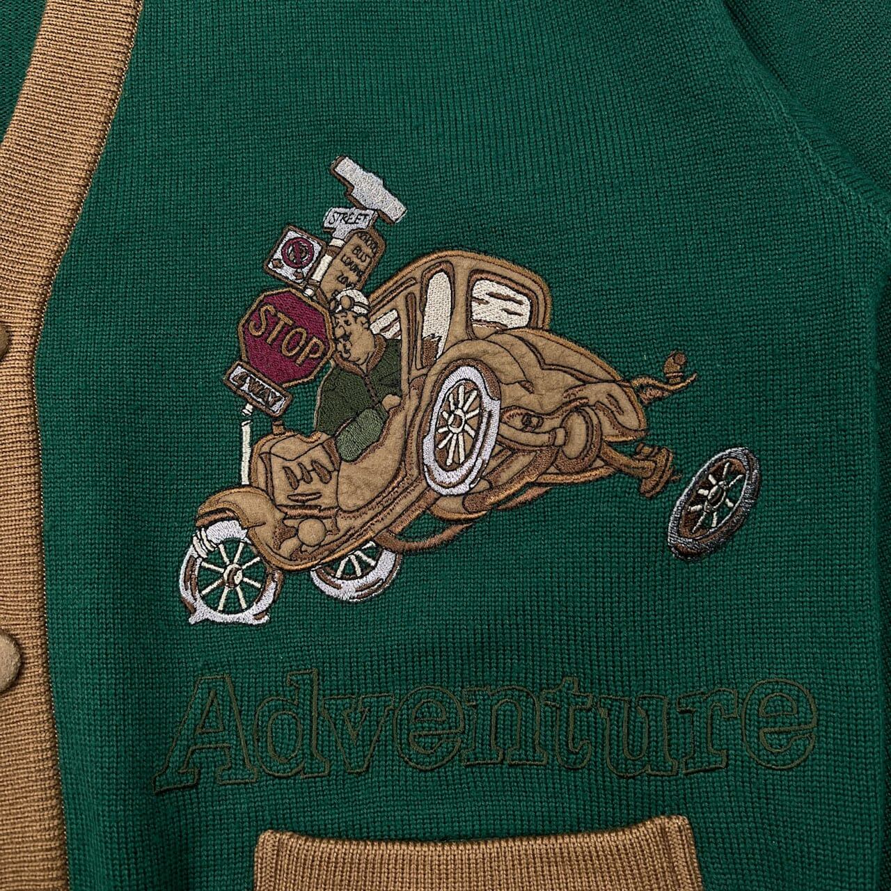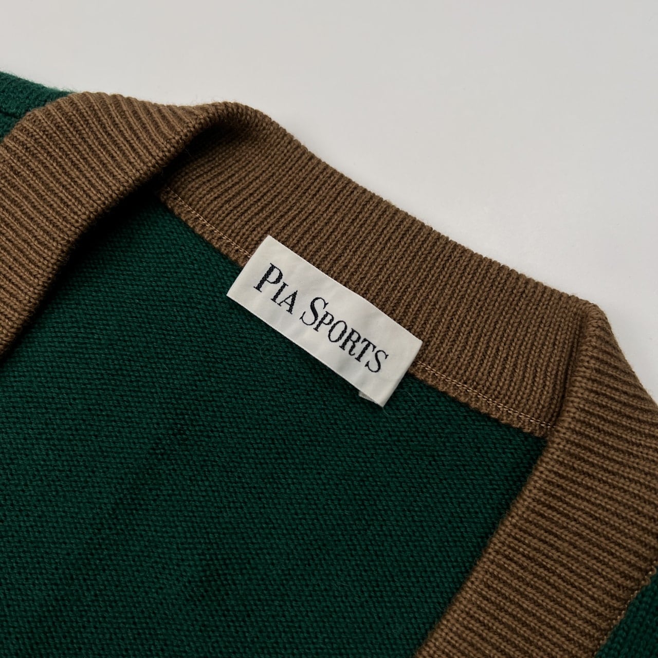 PIASPORTS ピアスポーツ Adventure刺繍 ウールニット カーディガン サイズ 3 /ライカ/日本製/グリーン×ブラウン/メンズ
