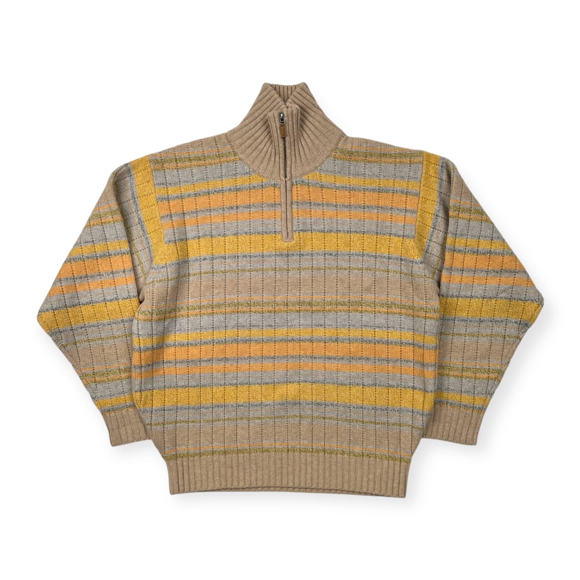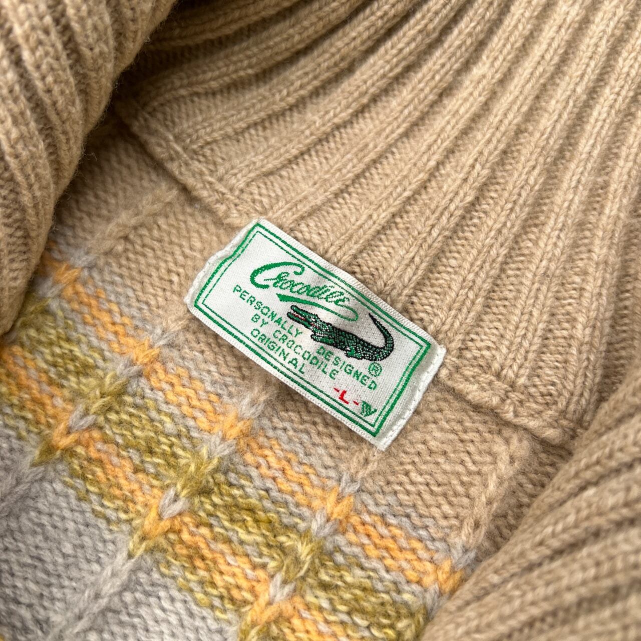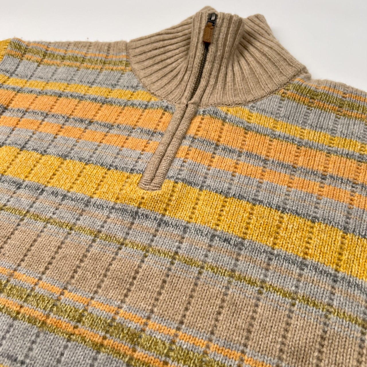 Crocodile クロコダイル チェック柄 ハイネック ハーフジップ ウールニットセーター サイズ L /メンズ/マルチ系