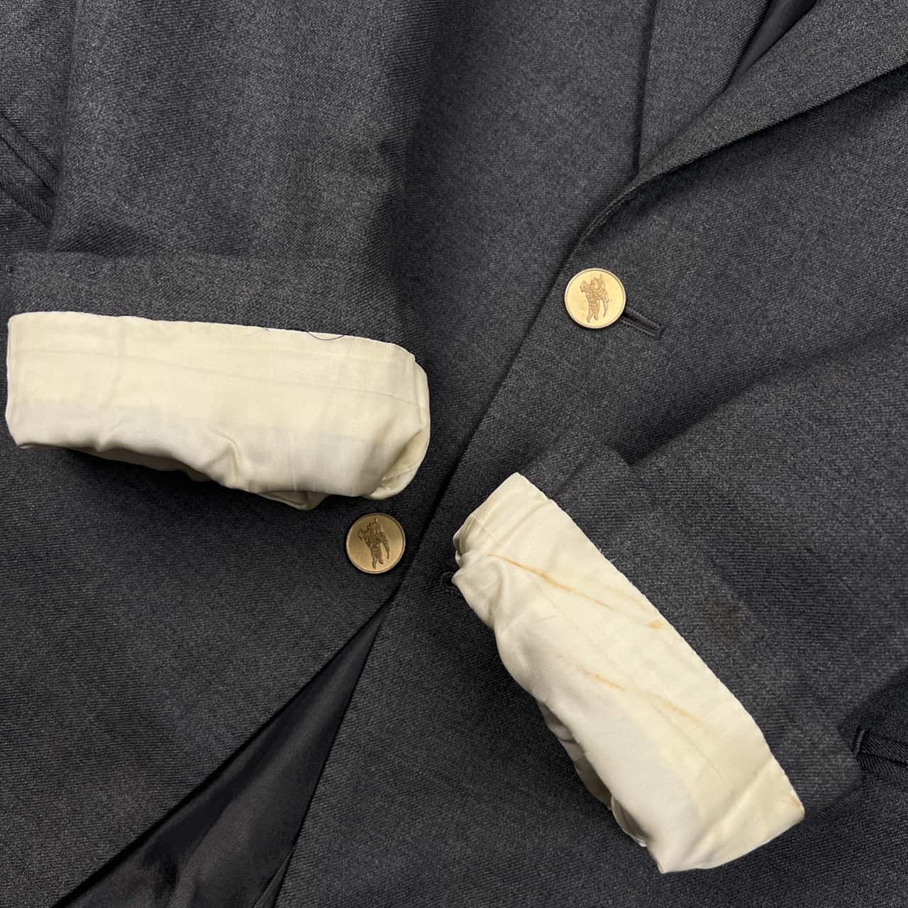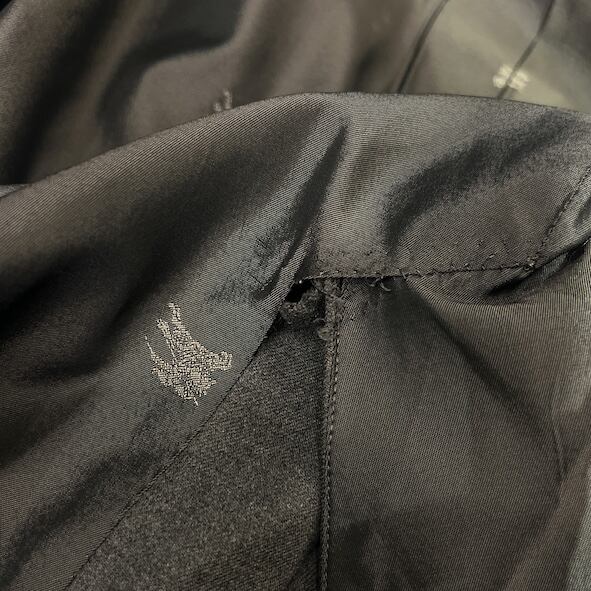 フロント裏地のベンツ部分に裂け、フロント裏地、袖先裏側によごれがあります。コンデションについての詳細は画像をご参照ください。