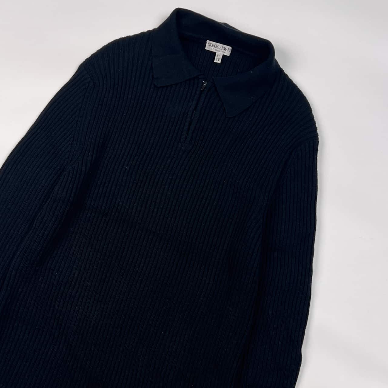 イタリア製 GIORGIO ARMANI ジョルジオアルマーニ リブ編み ハーフジップ 長袖 ニット セーター I 50/ブラック メンズ