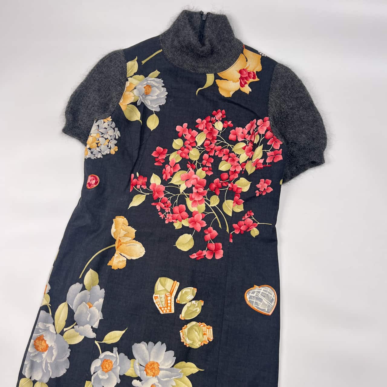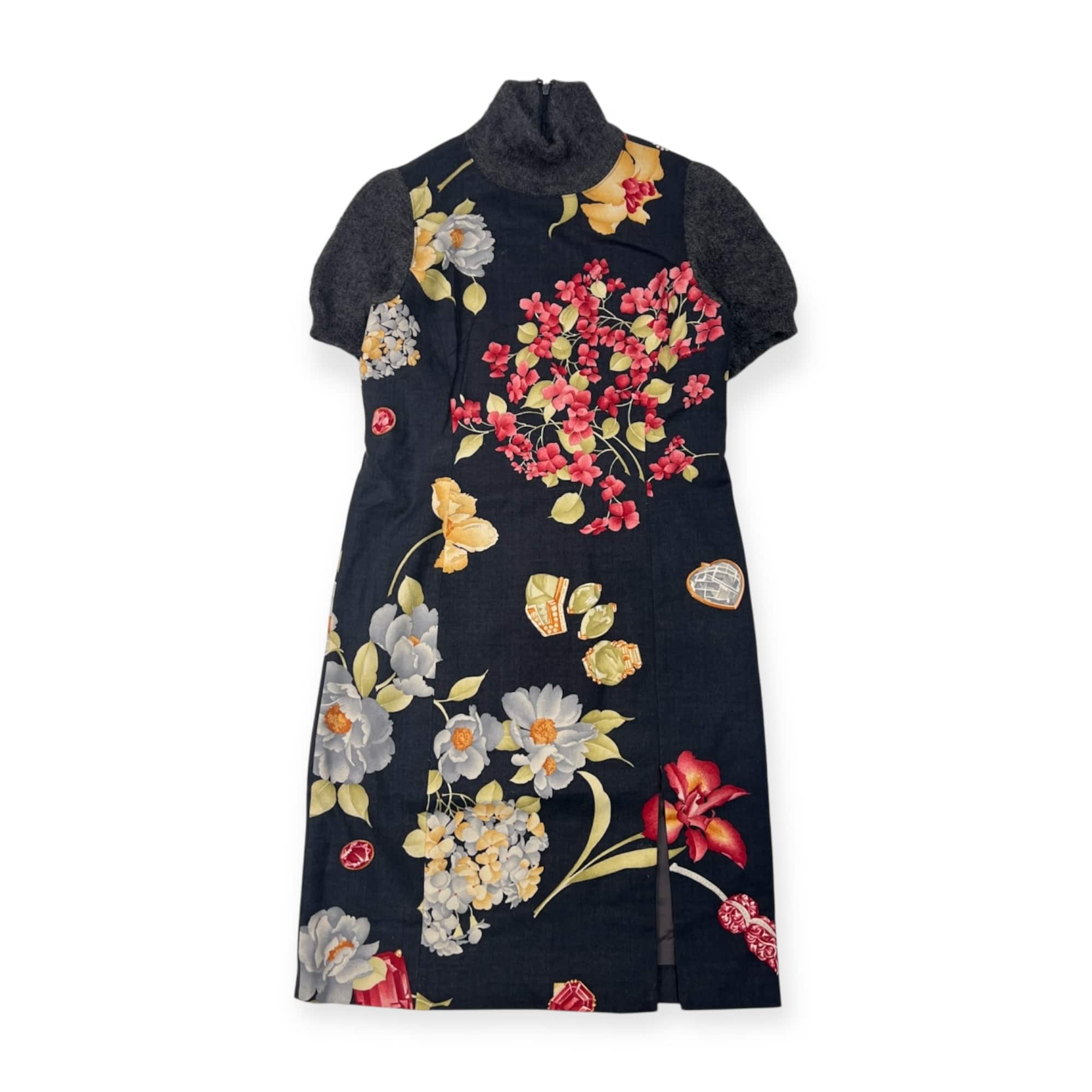 LEONARD レオナール 花柄 切替ウール 半袖 ワンピース 9AR/レディース