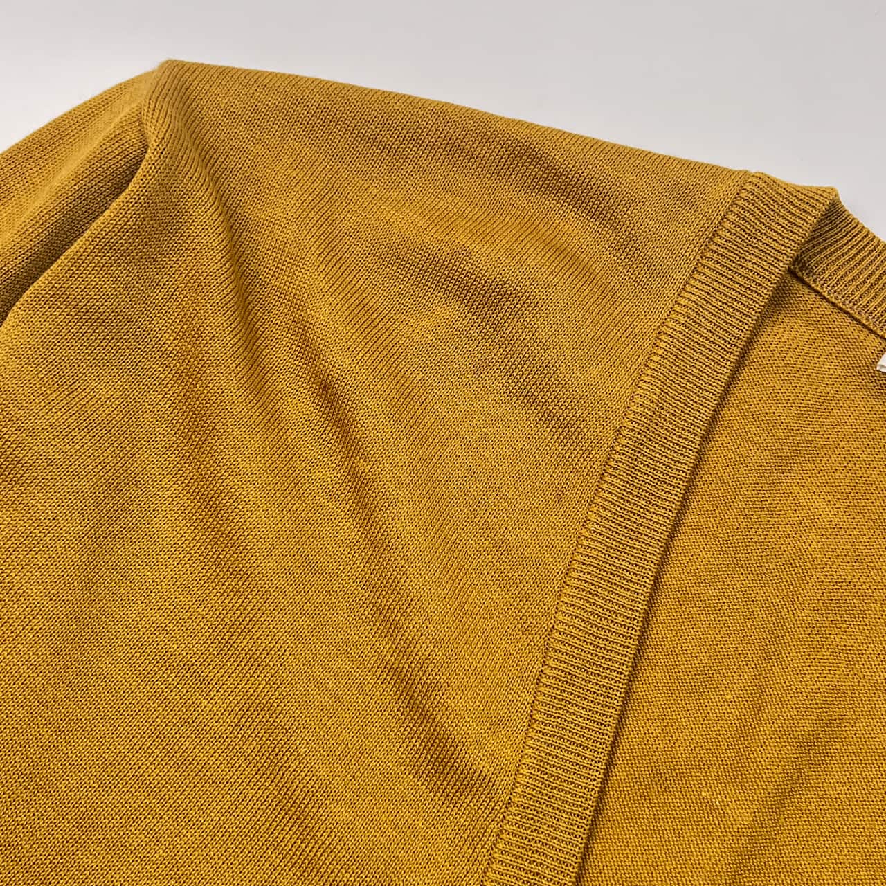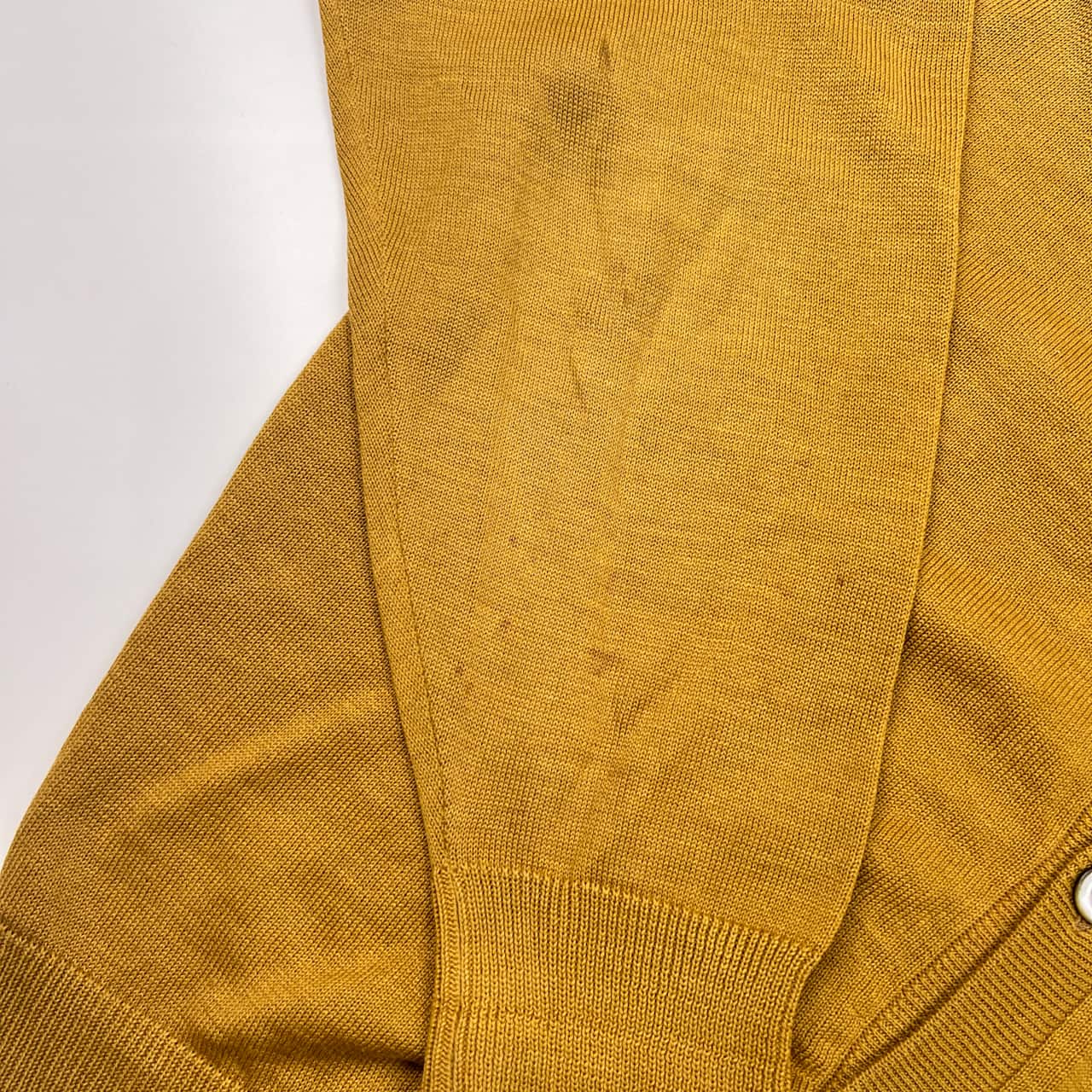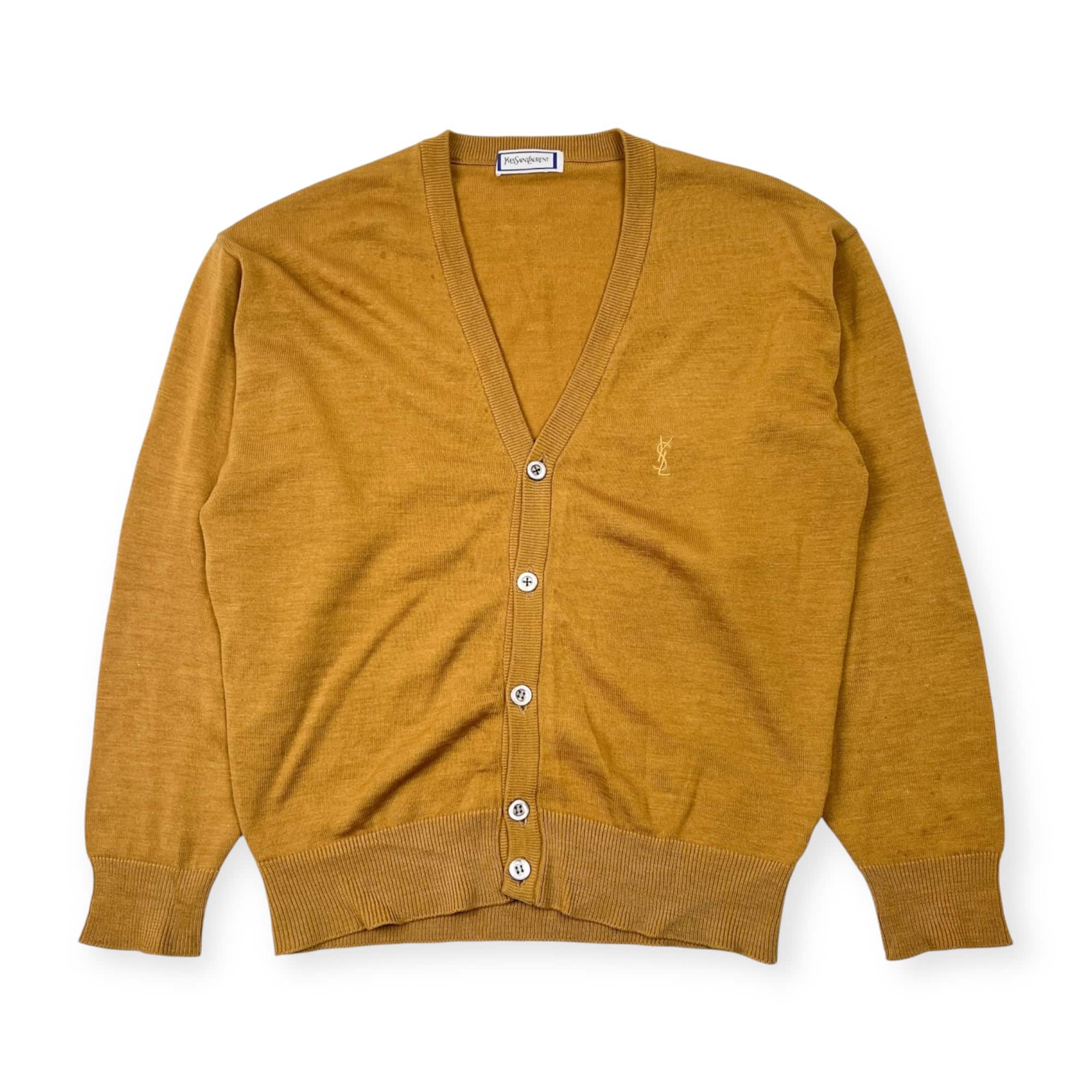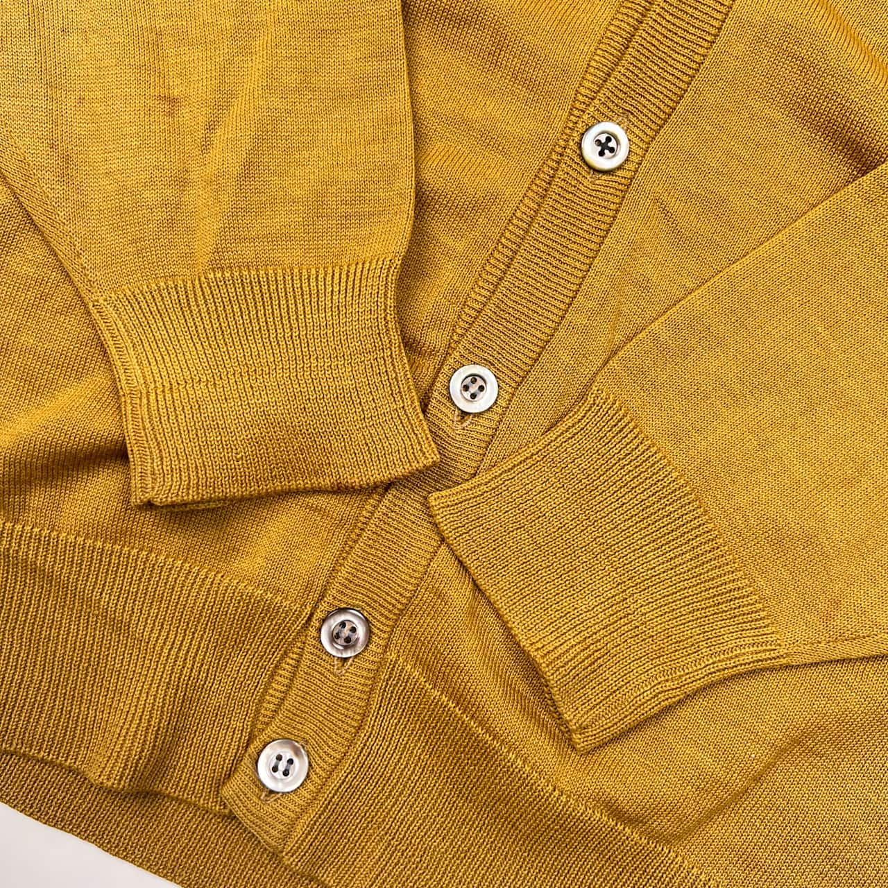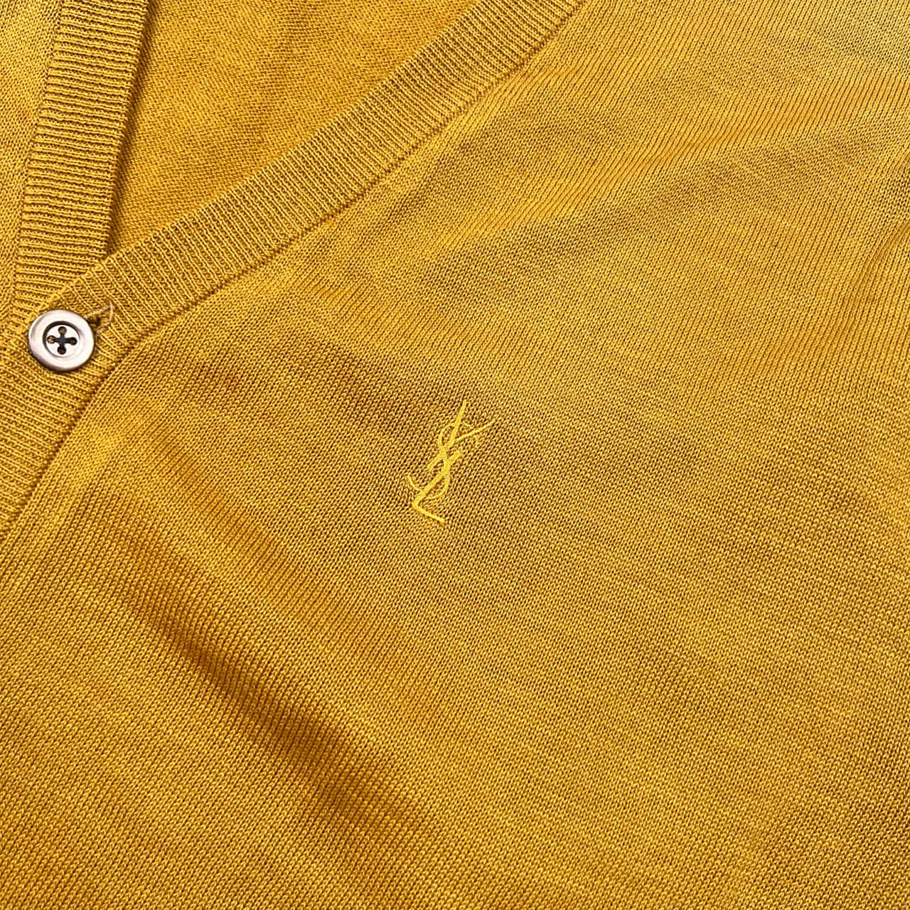 90s リネン混 Yves Saint Laurent イヴサンローラン Vネック ハイゲージ 長袖 ウール ニット カーディガン M/マスタード メンズ
