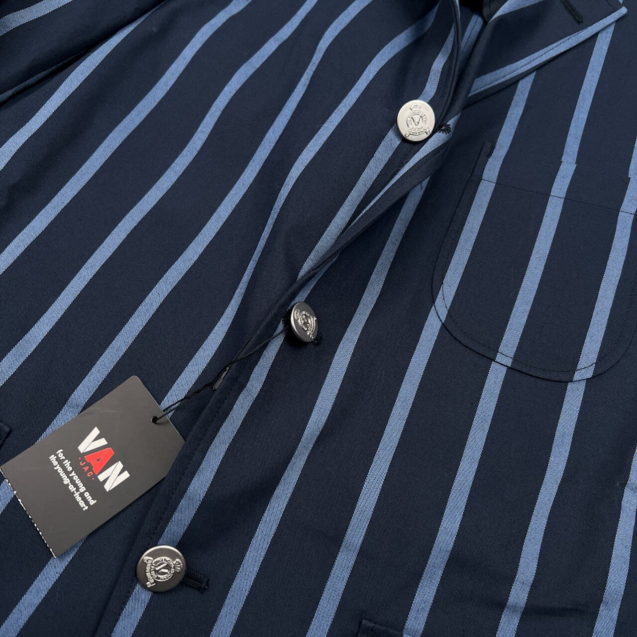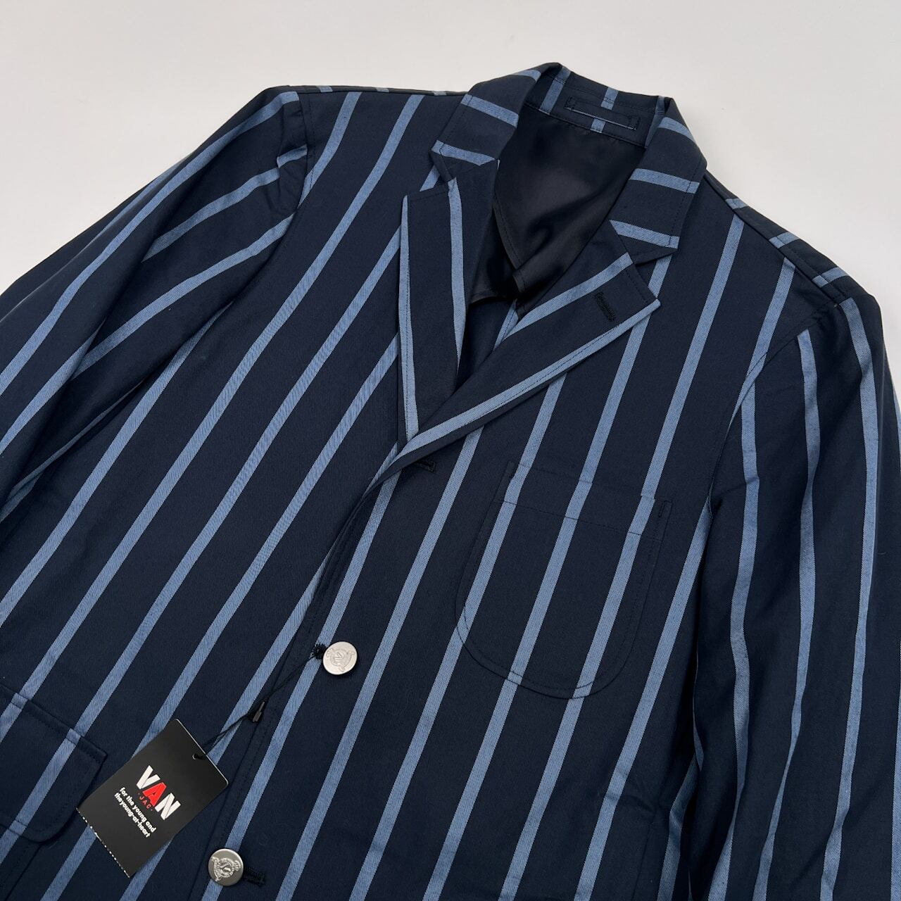 未使用品 タグ付き VAN JAC ヴァンヂャケット ストライプ スクール ジャケット ブレザー サイズ M /ネイビー/銀ボタン/段返り3B