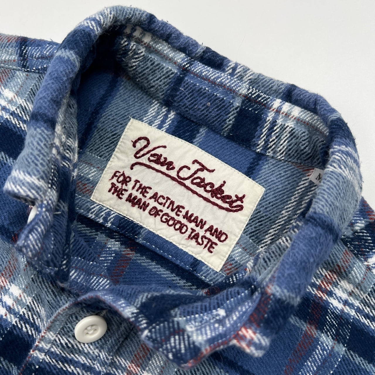 VAN JAC ヴァンヂャケット チェック柄 BD 長袖 ネルシャツ サイズ M /インド綿/ネイビーブルー系