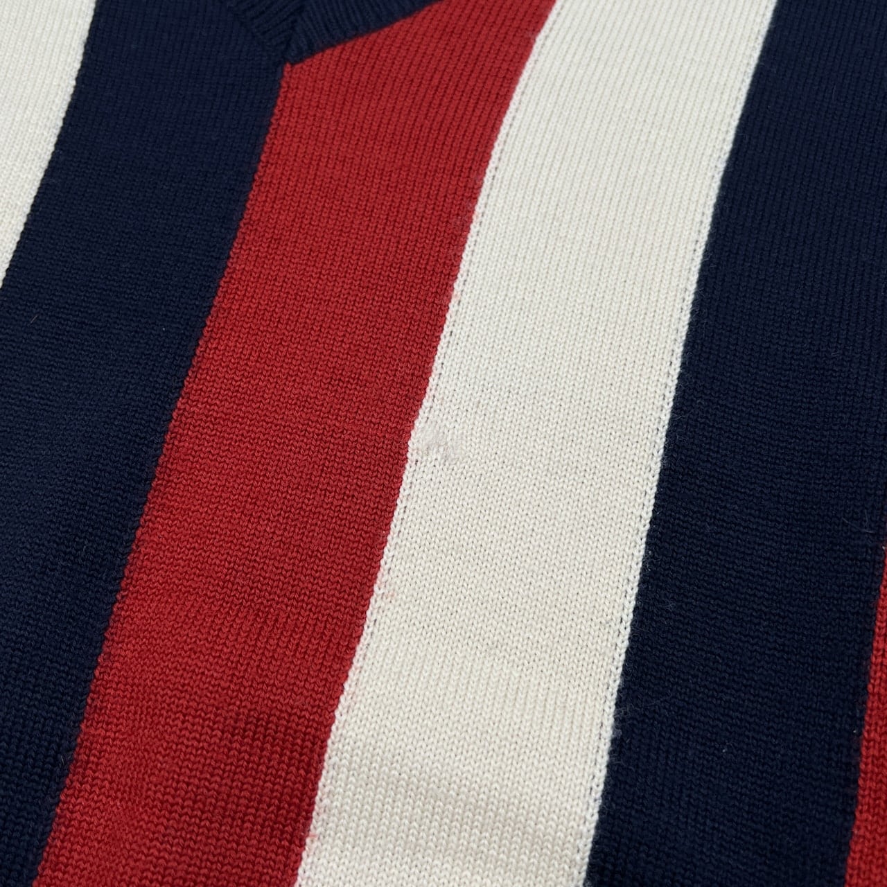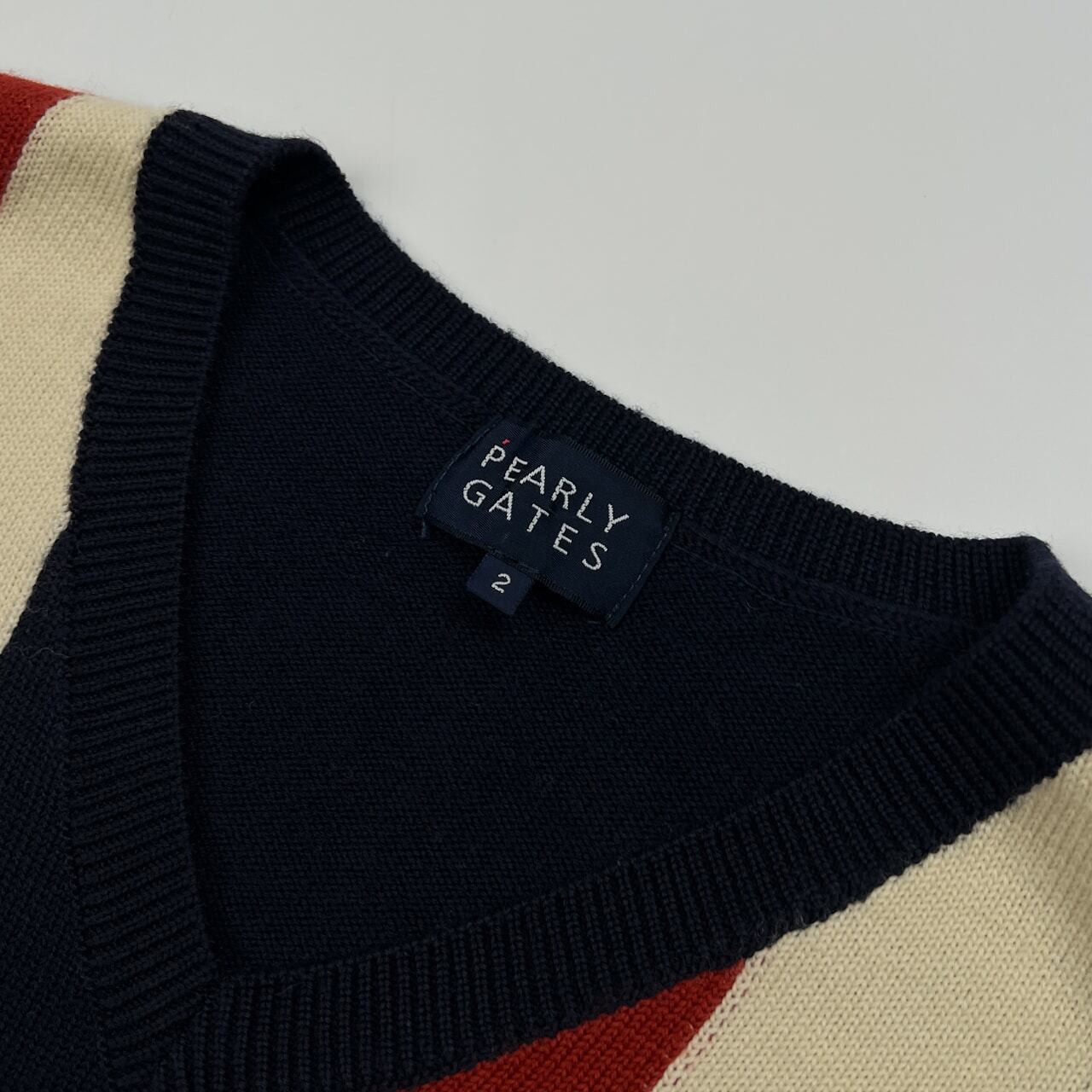 PEARLY GATES パーリーゲイツ ストライプ Vネック ウールニットセーター サイズ 2 /ネイビー×ホワイト×テラコッタ系/ゴルフ