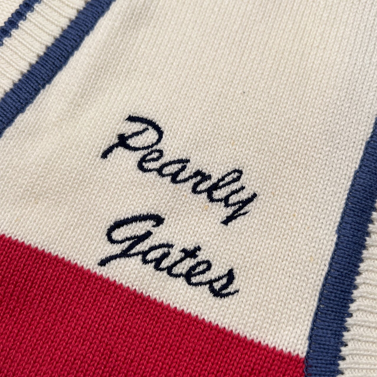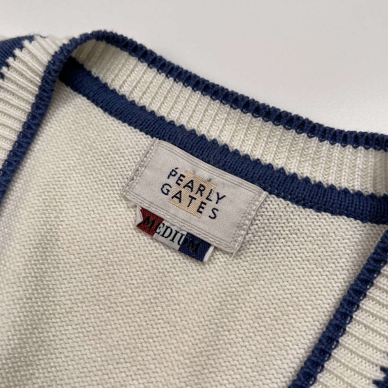 PEARLY GATES パーリーゲイツ 前ボタン コットンニット ベスト サイズ M /メンズ/ゴルフ/ホワイト×ピンクレッド×ブルー