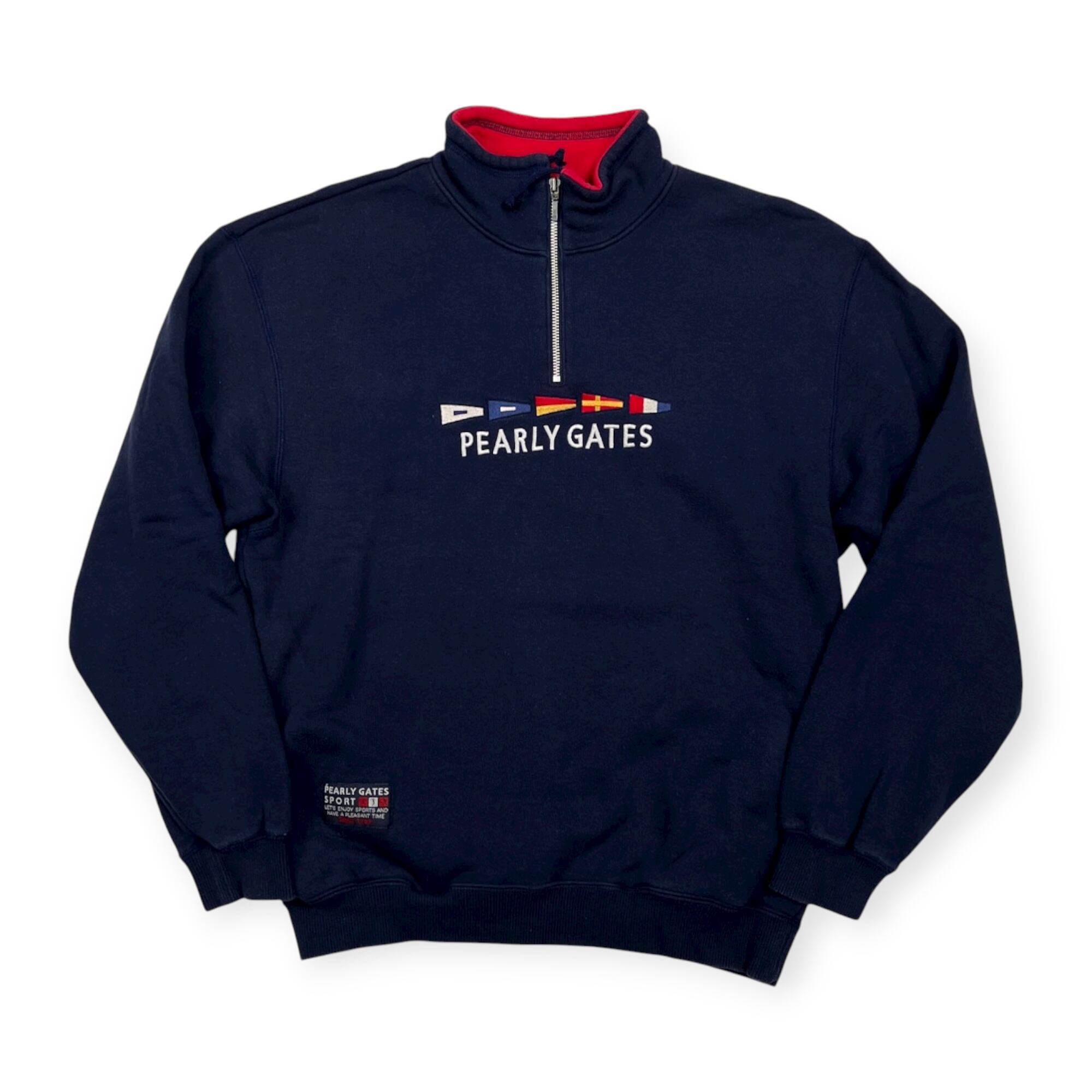 PEARLY GATES パーリーゲイツ ロゴ刺繍 ハイネック ハーフジップ スウェット トレーナー サイズ 2 /ネイビー/ゴルフ