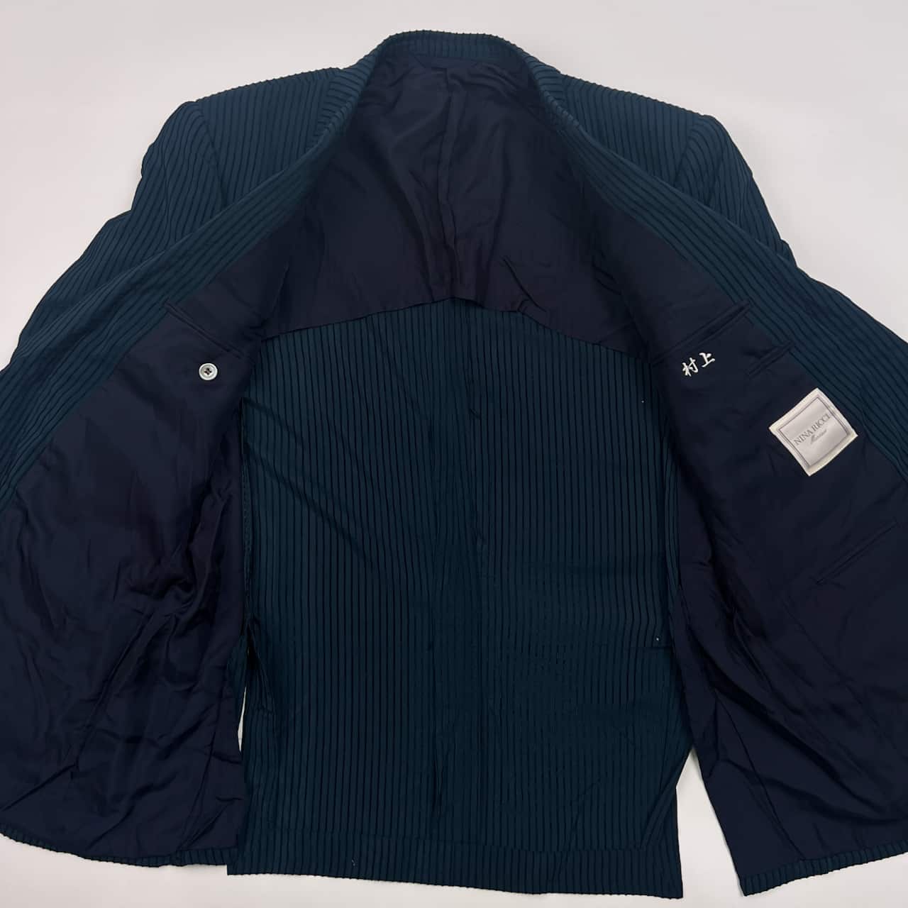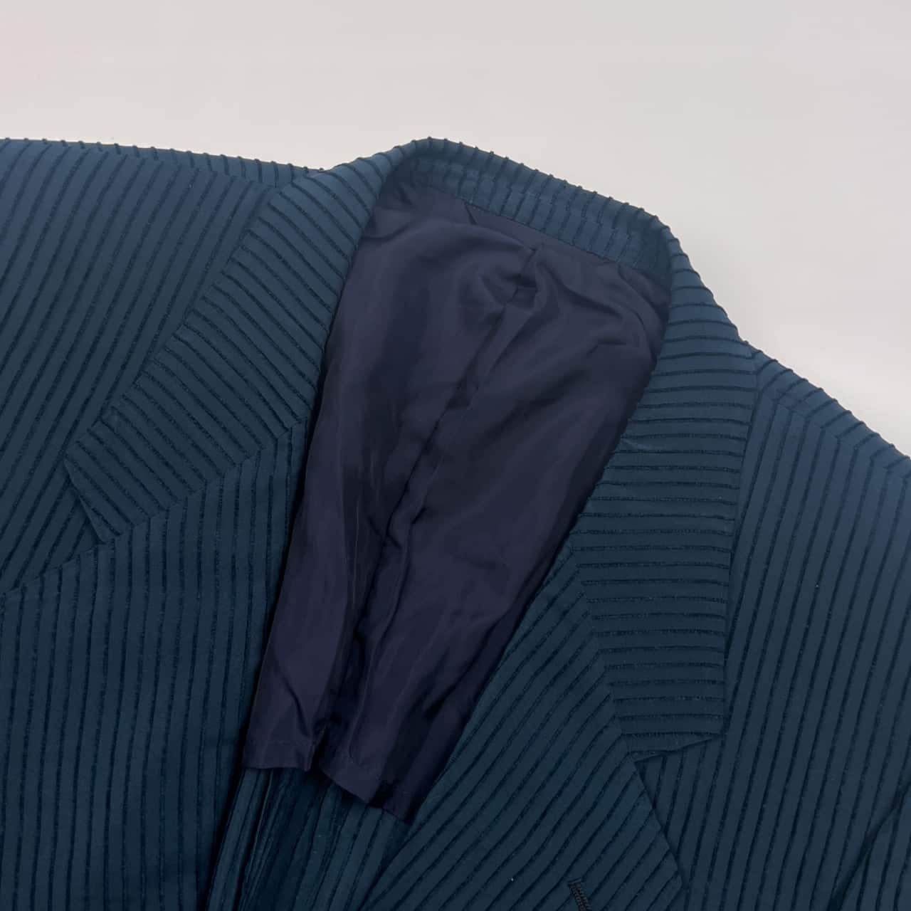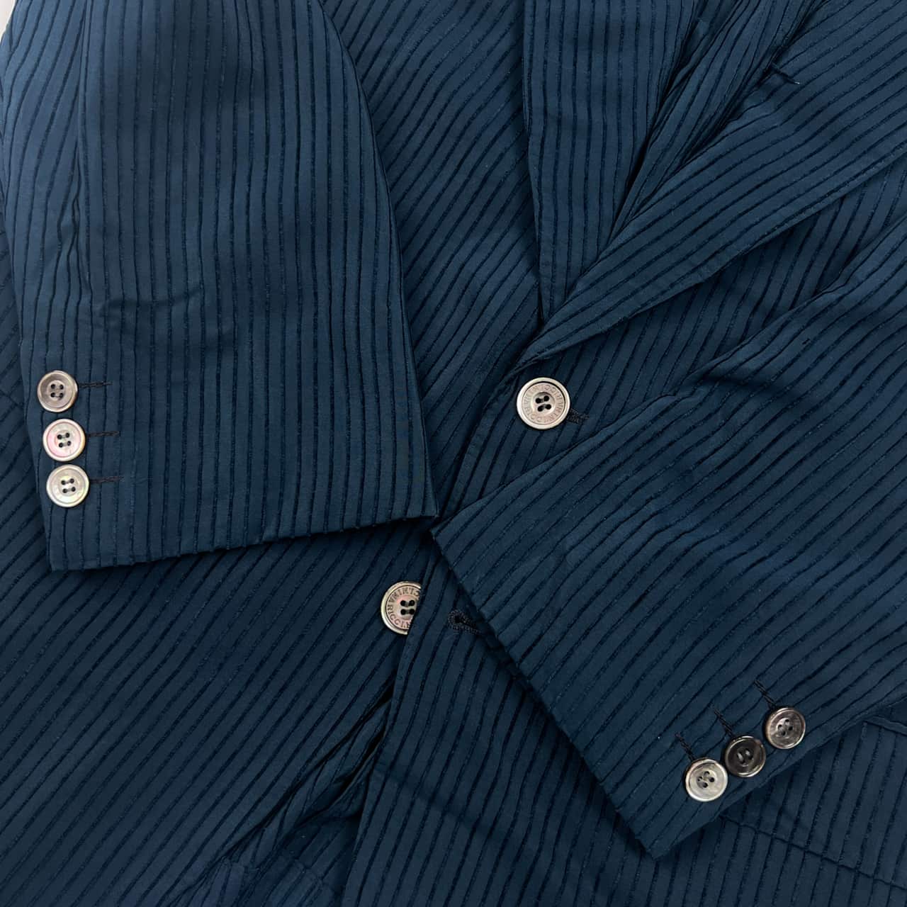 シルク100% NINA RICCI ニナリッチ ストライプ 背抜き 2B テーラードジャケット 96AB5/グリーンブルー系 メンズ