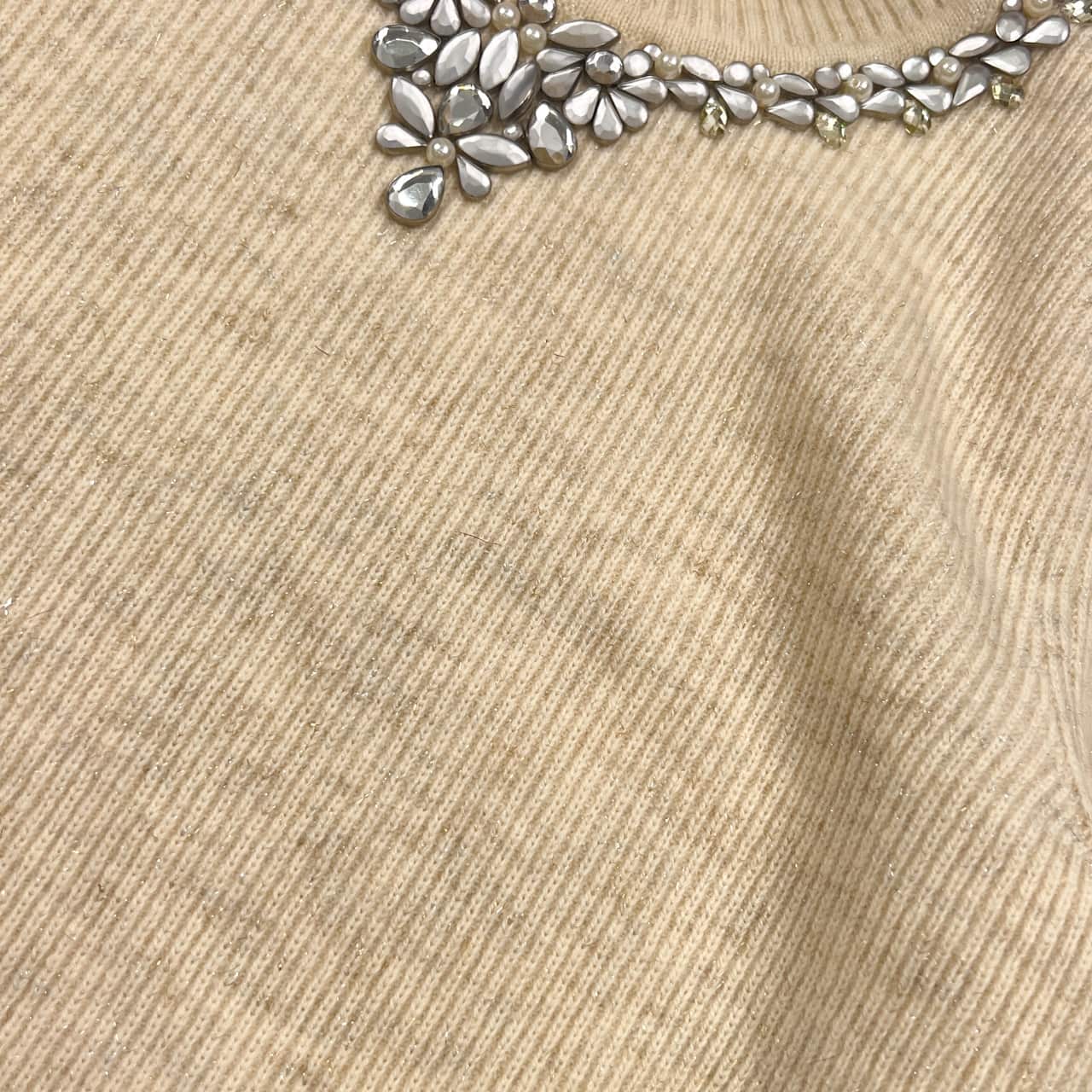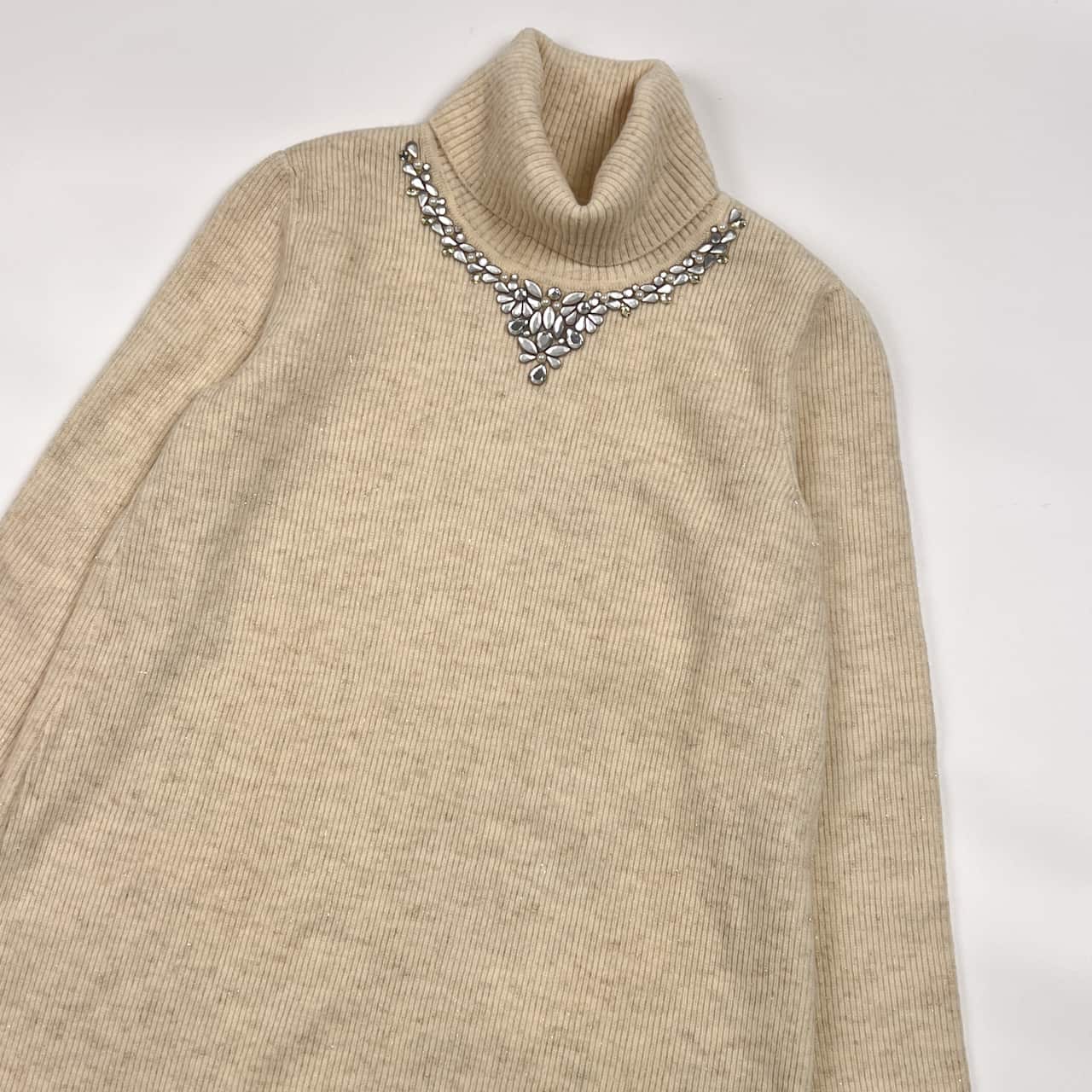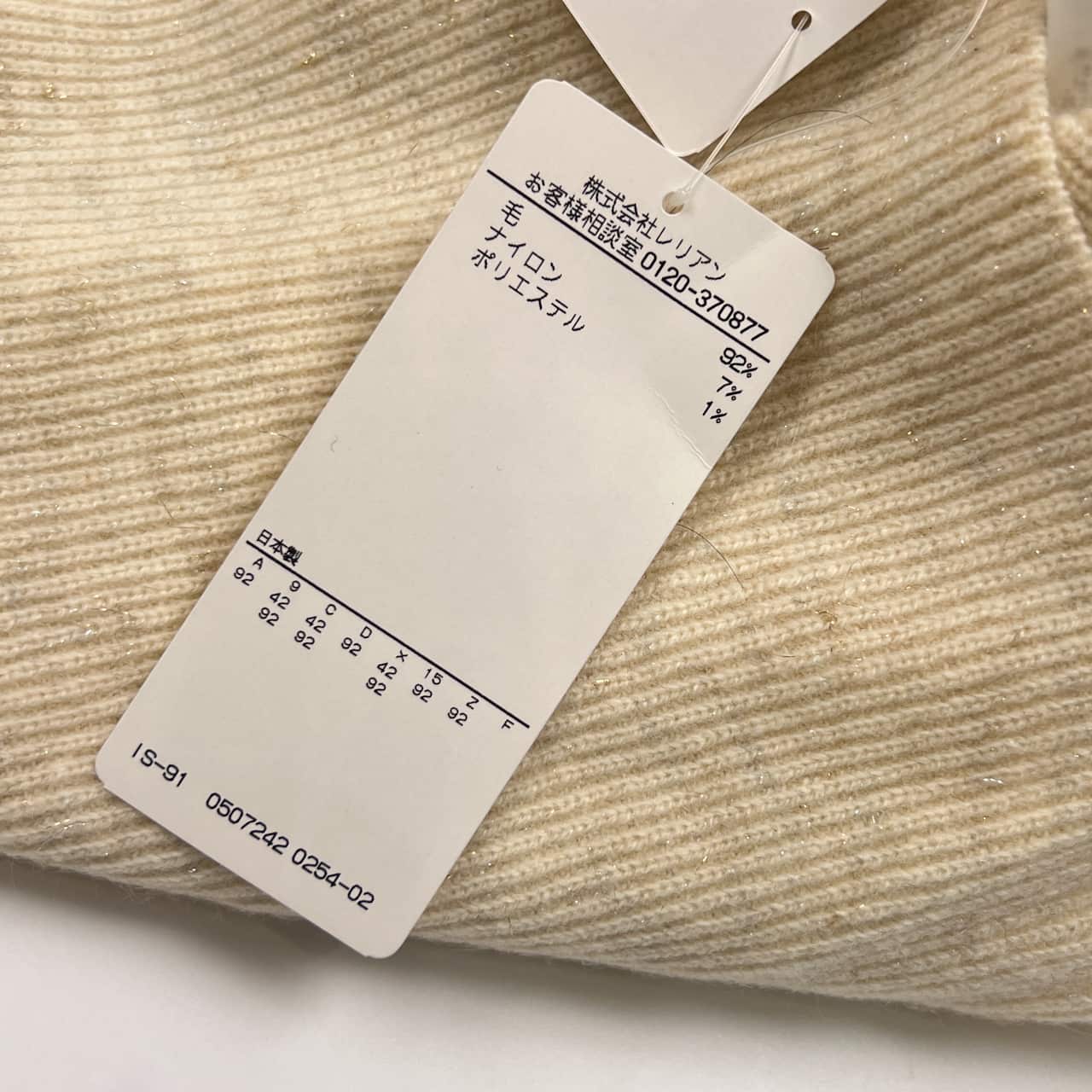 新品 タグ付き Leilian レリアン ラメ ビジュー タートルネック リブ編み 長袖 ウール ニット セーター 9/アイボリー 系 レディース