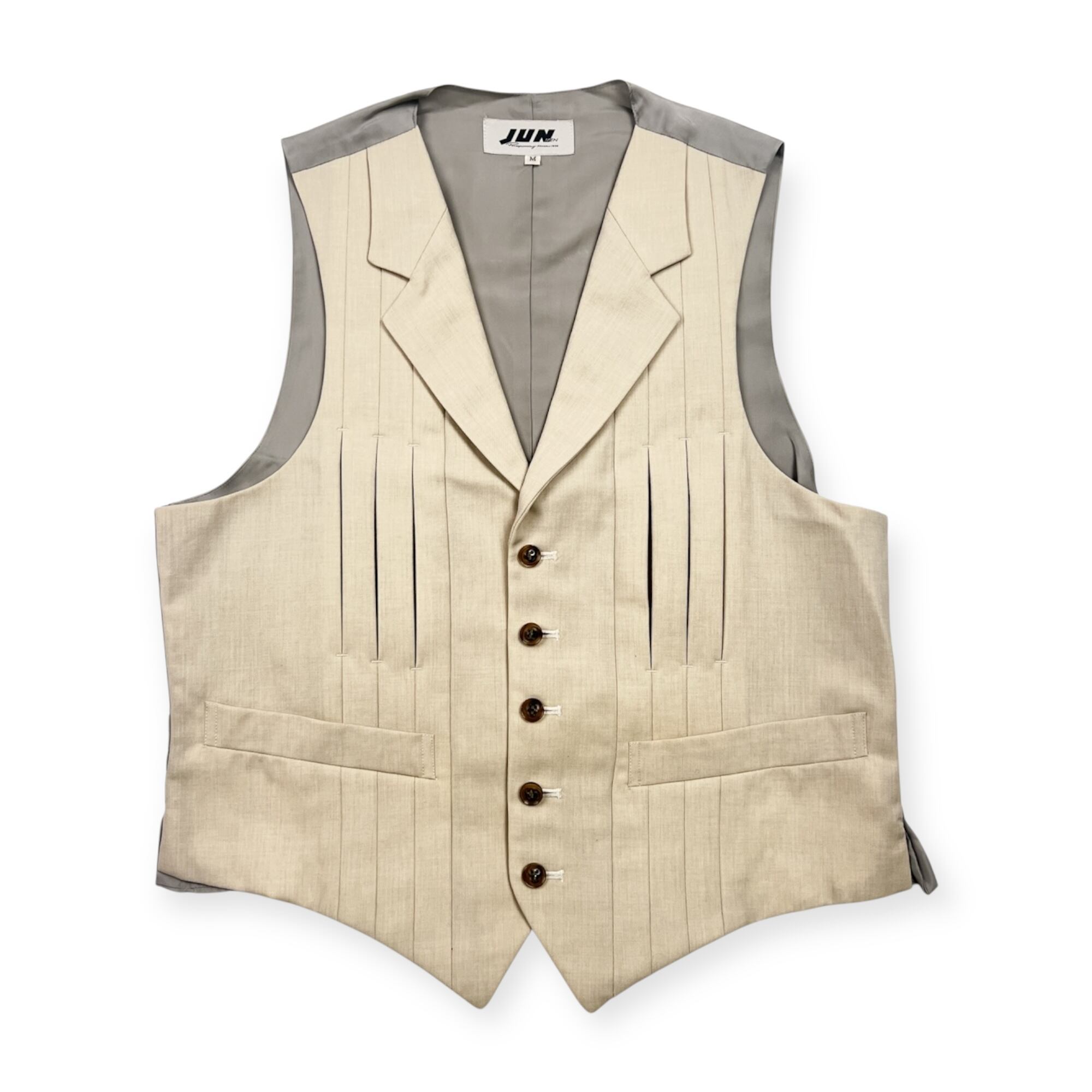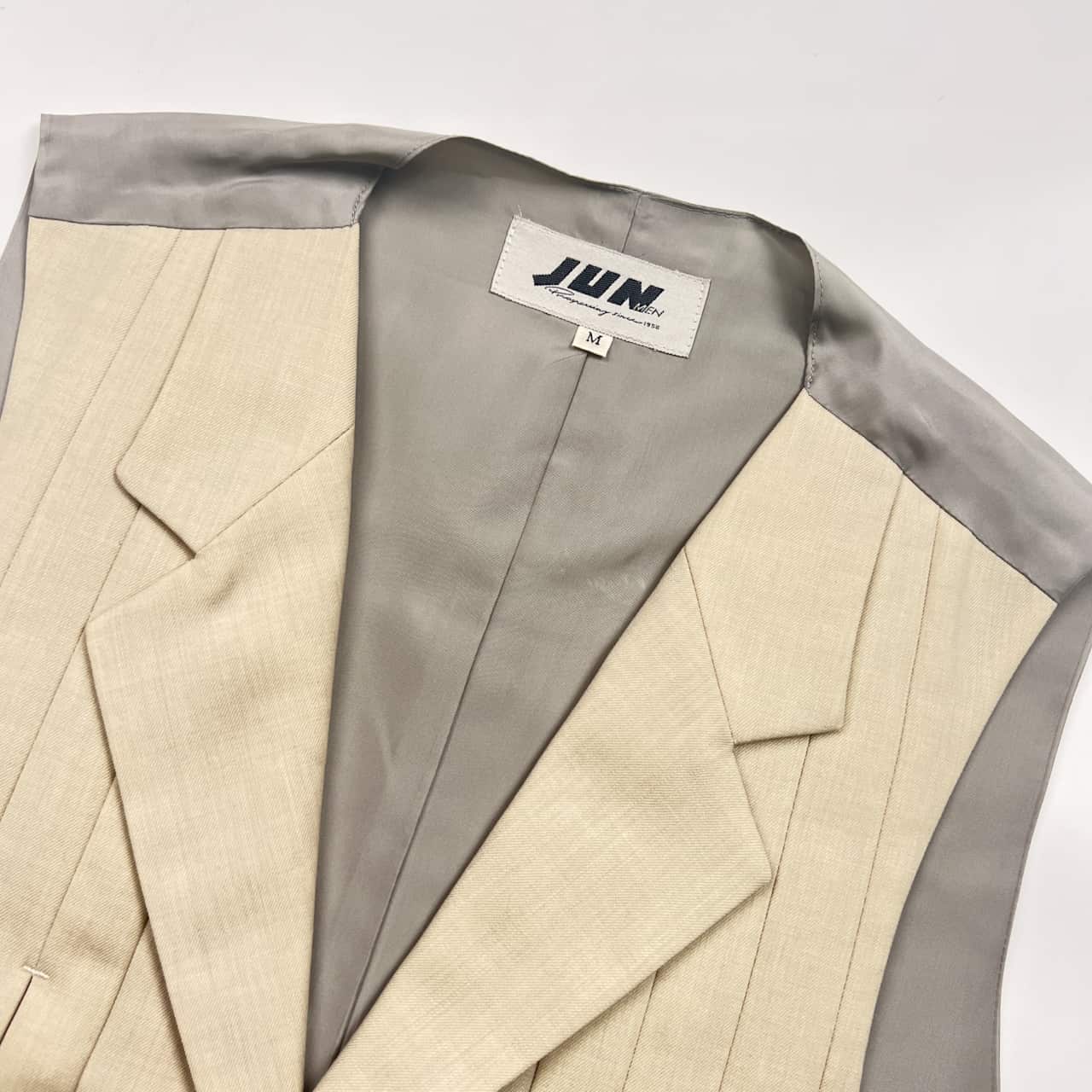 90s JUN MEN ジュンメン ベスト ジレ M/アイボリー ×グレー 系 メンズ ビンテージ