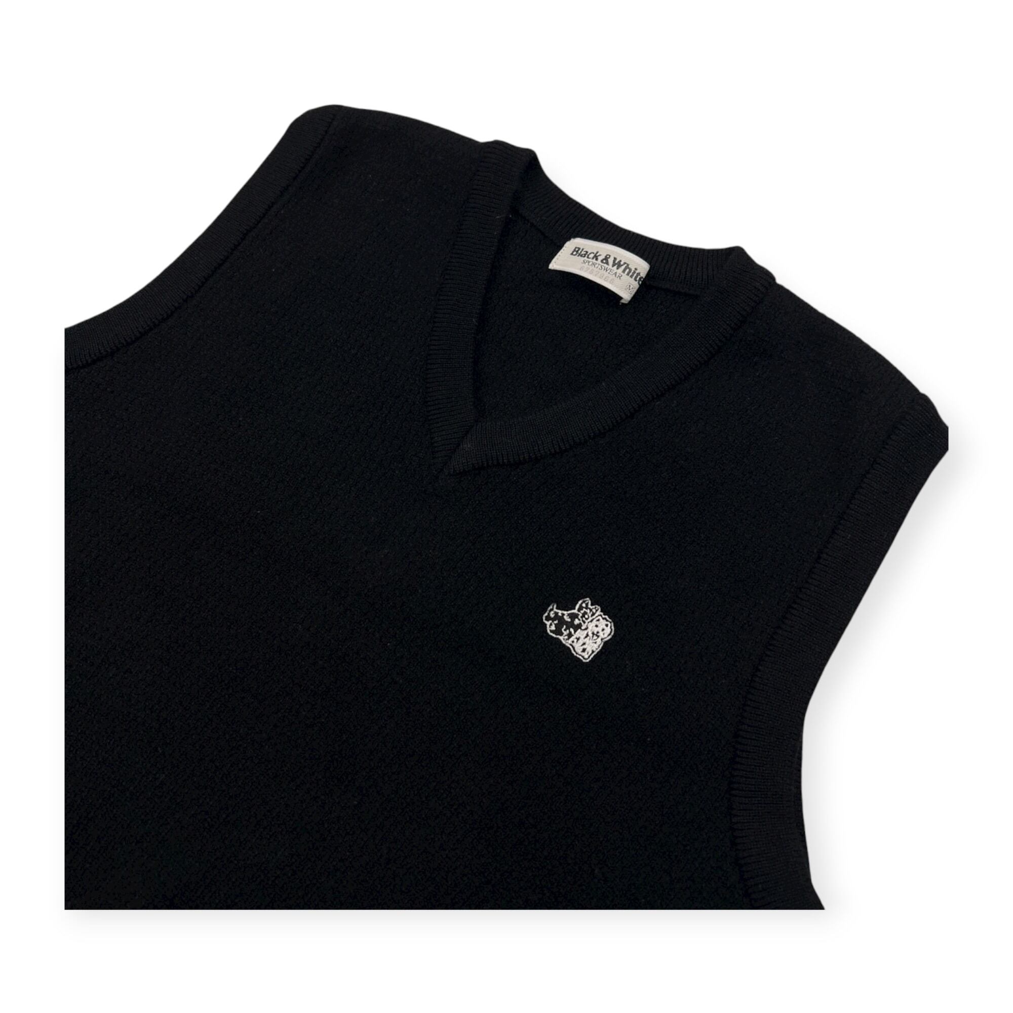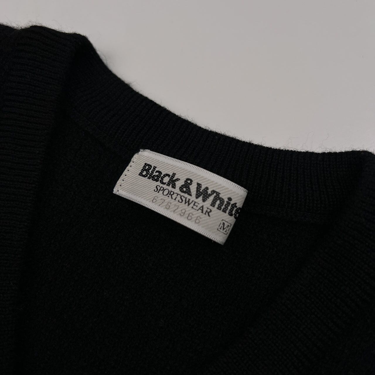 Black & White ブラックアンドホワイト ケーブル編み Vネック ウールニットベスト サイズ M /ブラック&ホワイト/ゴルフ/日本製