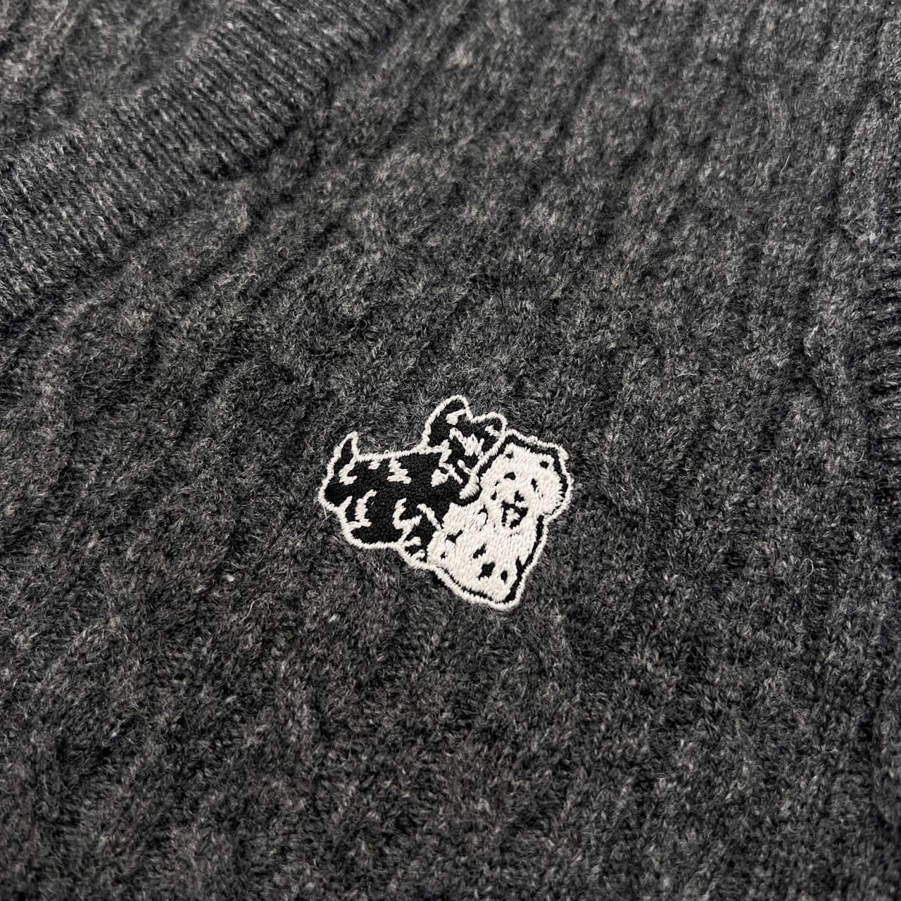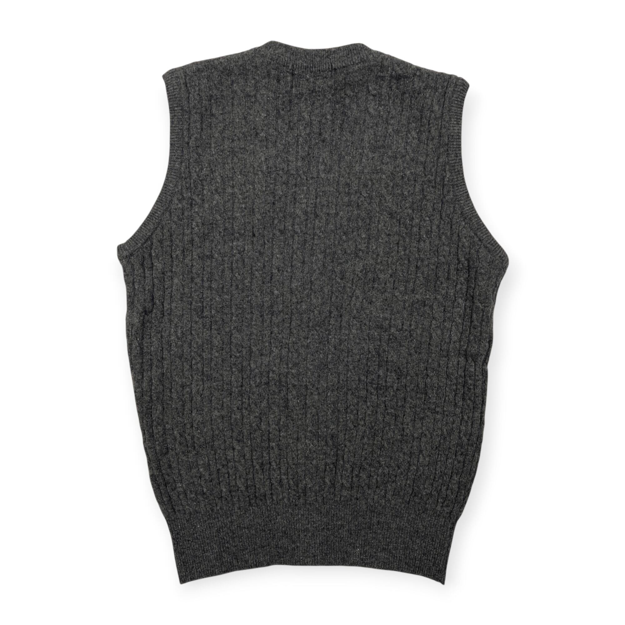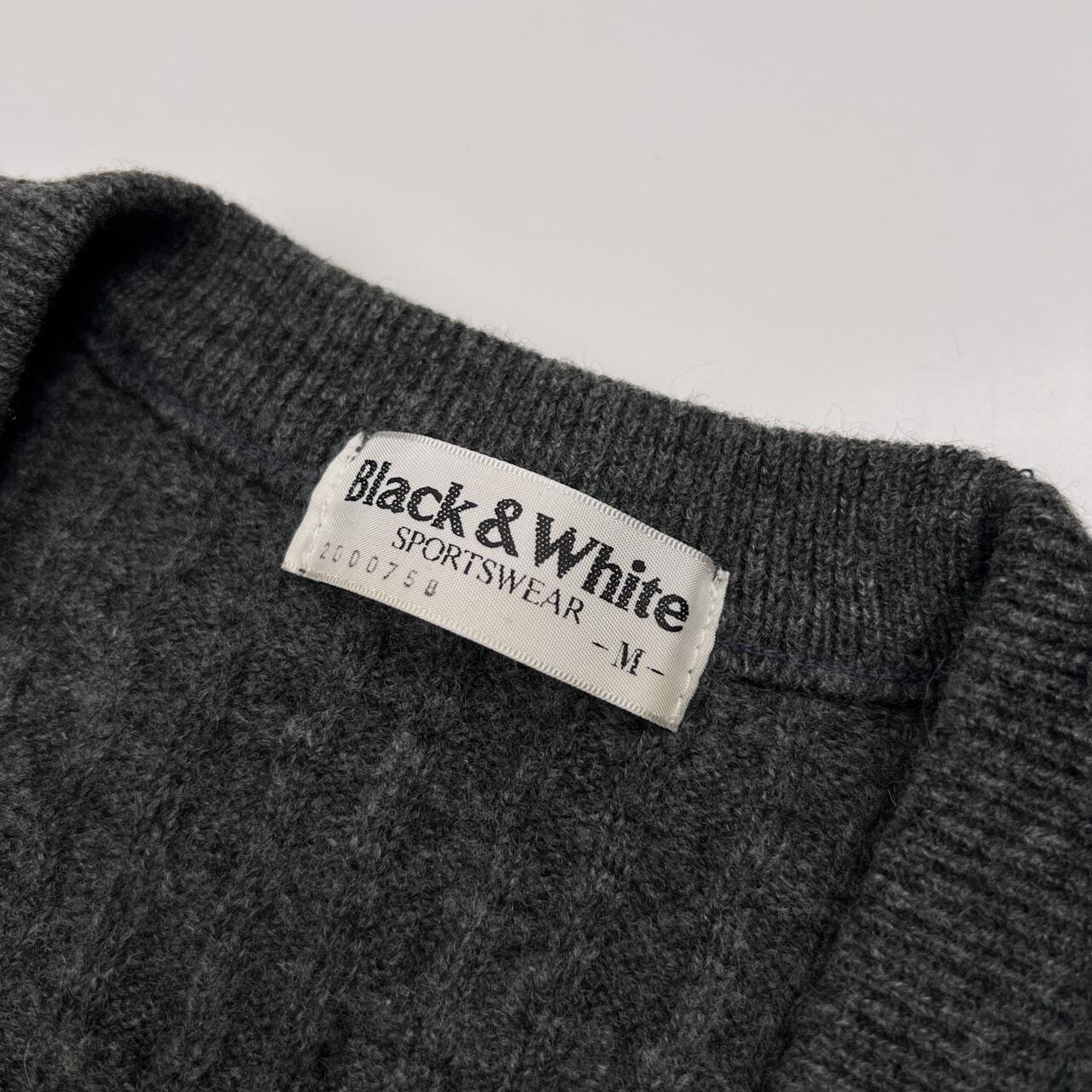 Black & White ブラックアンドホワイト ケーブル編み 前ボタン ウールニットベスト サイズ M /グレー/ブラック&ホワイト/ゴルフ