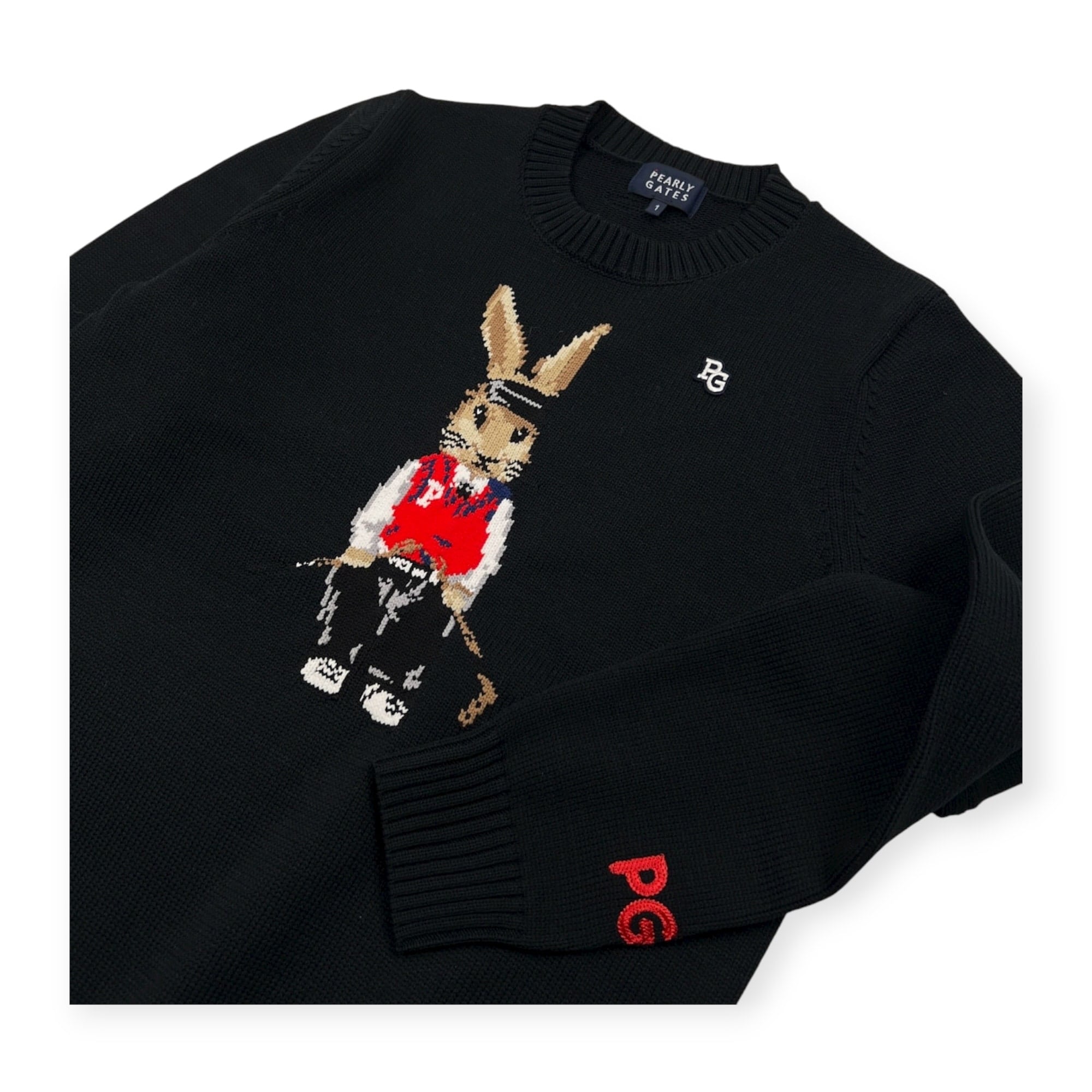 PEARLY GATES パーリーゲイツ ラビット柄 ニットセーター サイズ 1 /ブラック系/レディース/ゴルフ/ウサギ柄/非売品