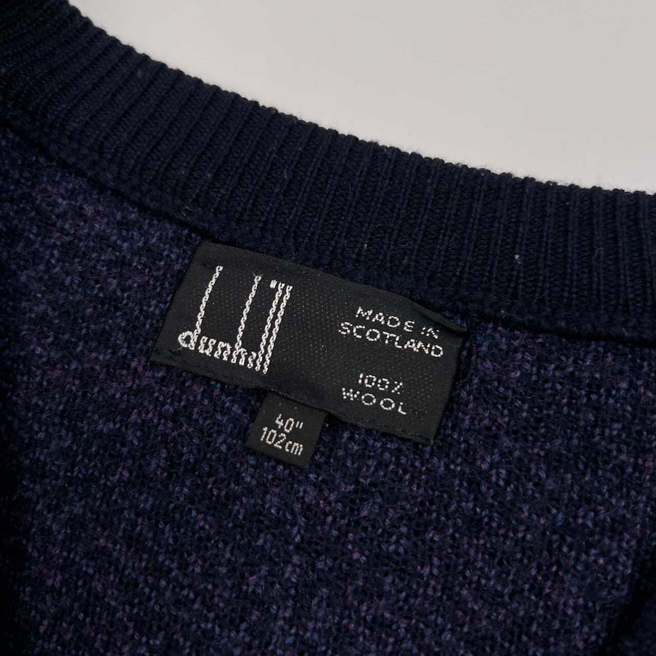 スコットランド製 dunhill ダンヒル 総柄 Vネック ウールニットセーター サイズ 40/102cm /メンズ/英国製/パープル/XY0026a