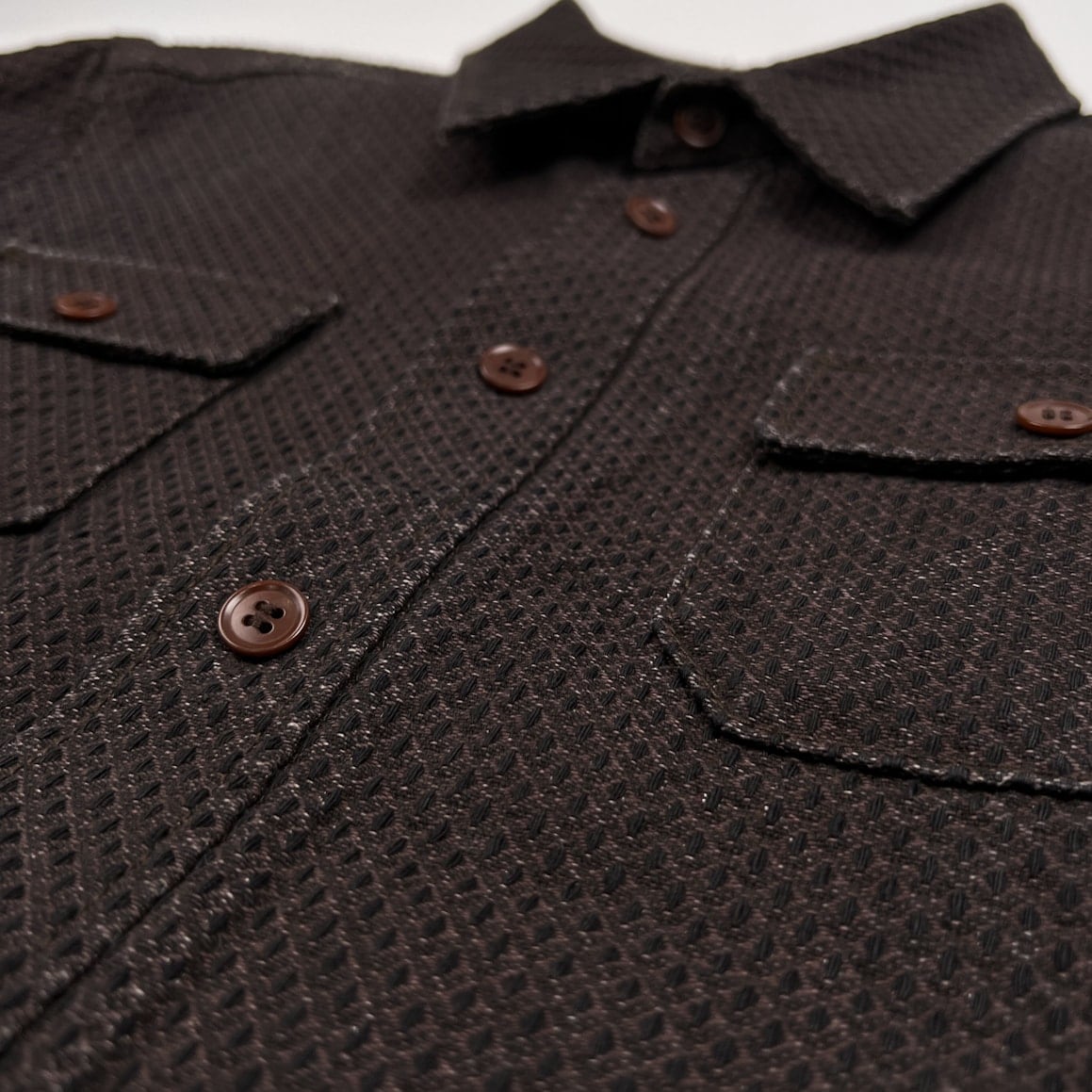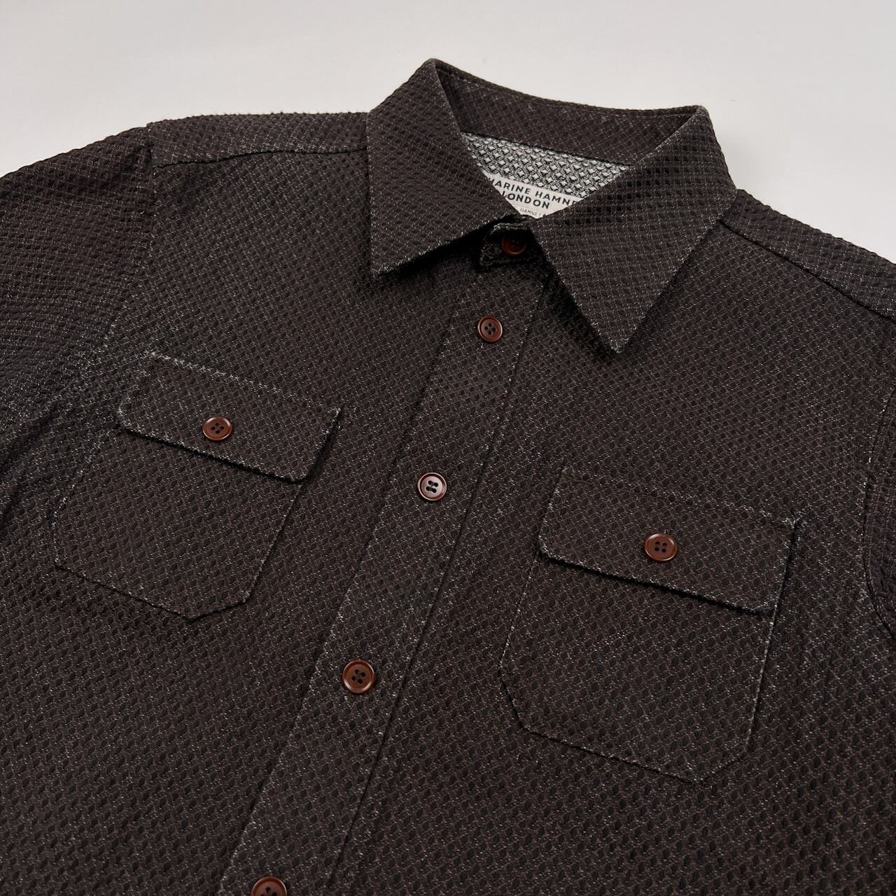 希少 00s KATHARINE HAMNETT キャサリンハムネット 立体柄デザイン シャツ ジャケット サイズ L /オールド/アーカイブ/ダークブラウン