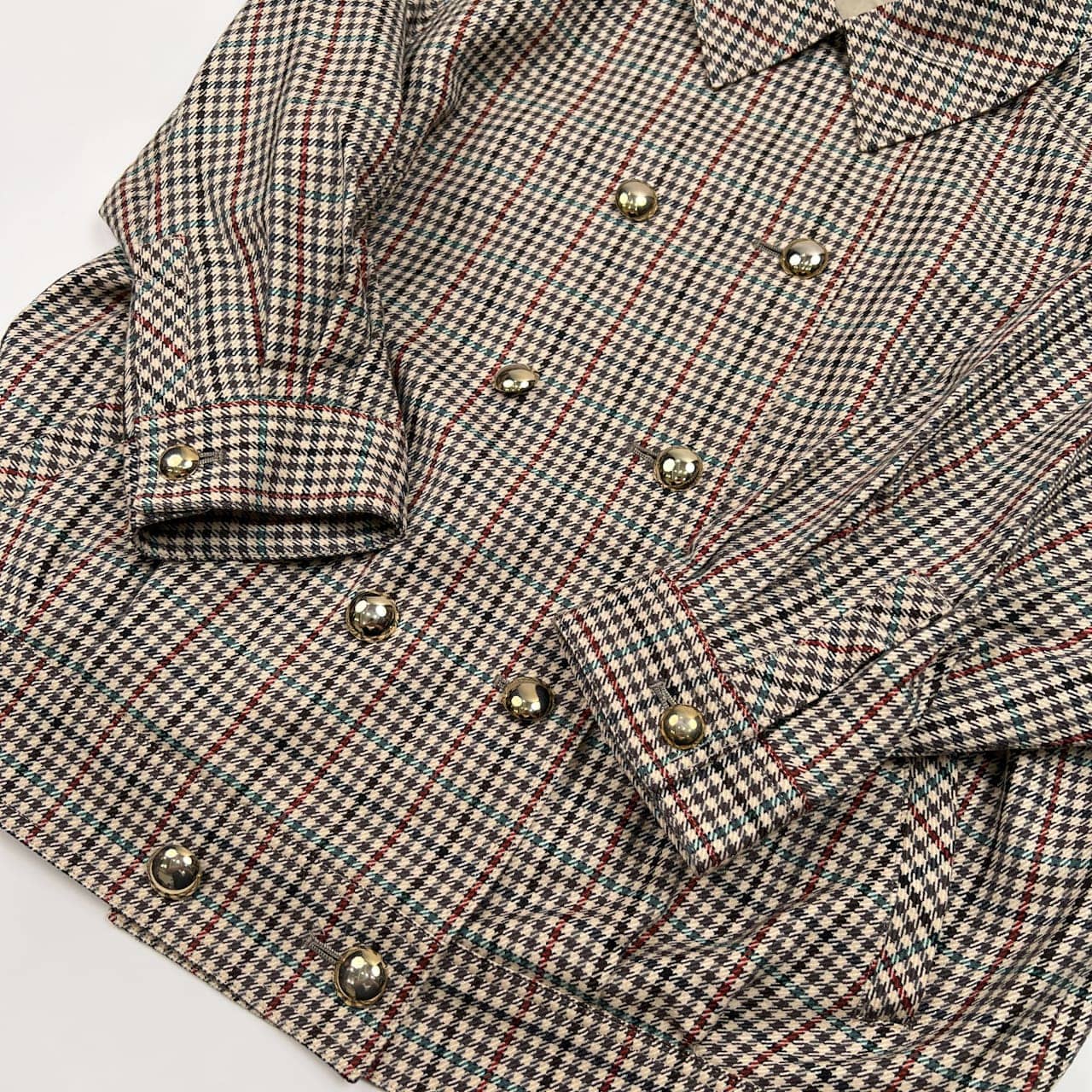 Leilian レリアン 金系ボタン ガンクラブチェック ダブル ジャケット サイズ 13+ /ベージュ系/レディース/日本製