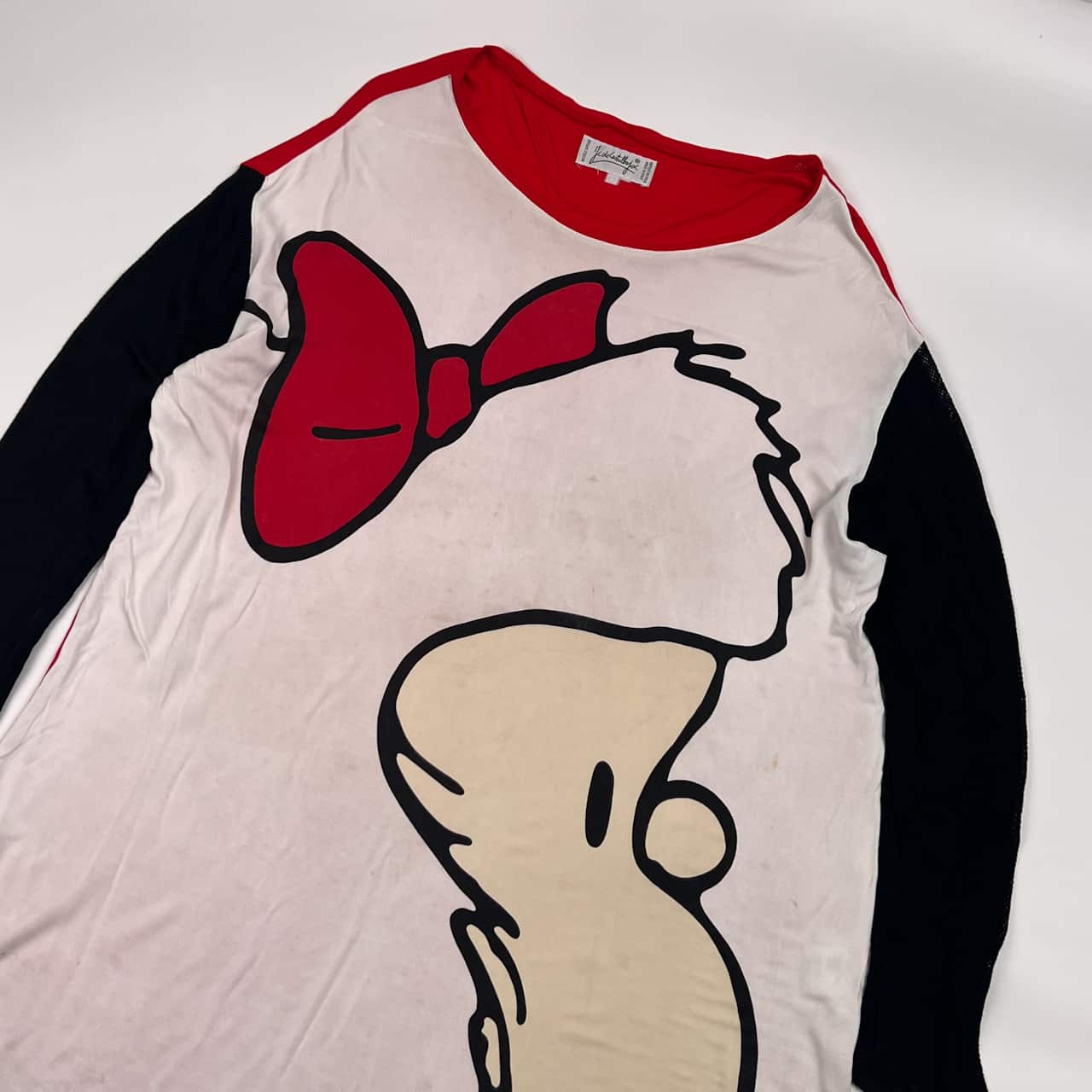 イタリア製 CASTELBAJAC カステルバジャッック 袖メッシュ キャラデザイン チュニック丈 レーヨン シャツ カットソー /ホワイト×レッド系 ゴルフ