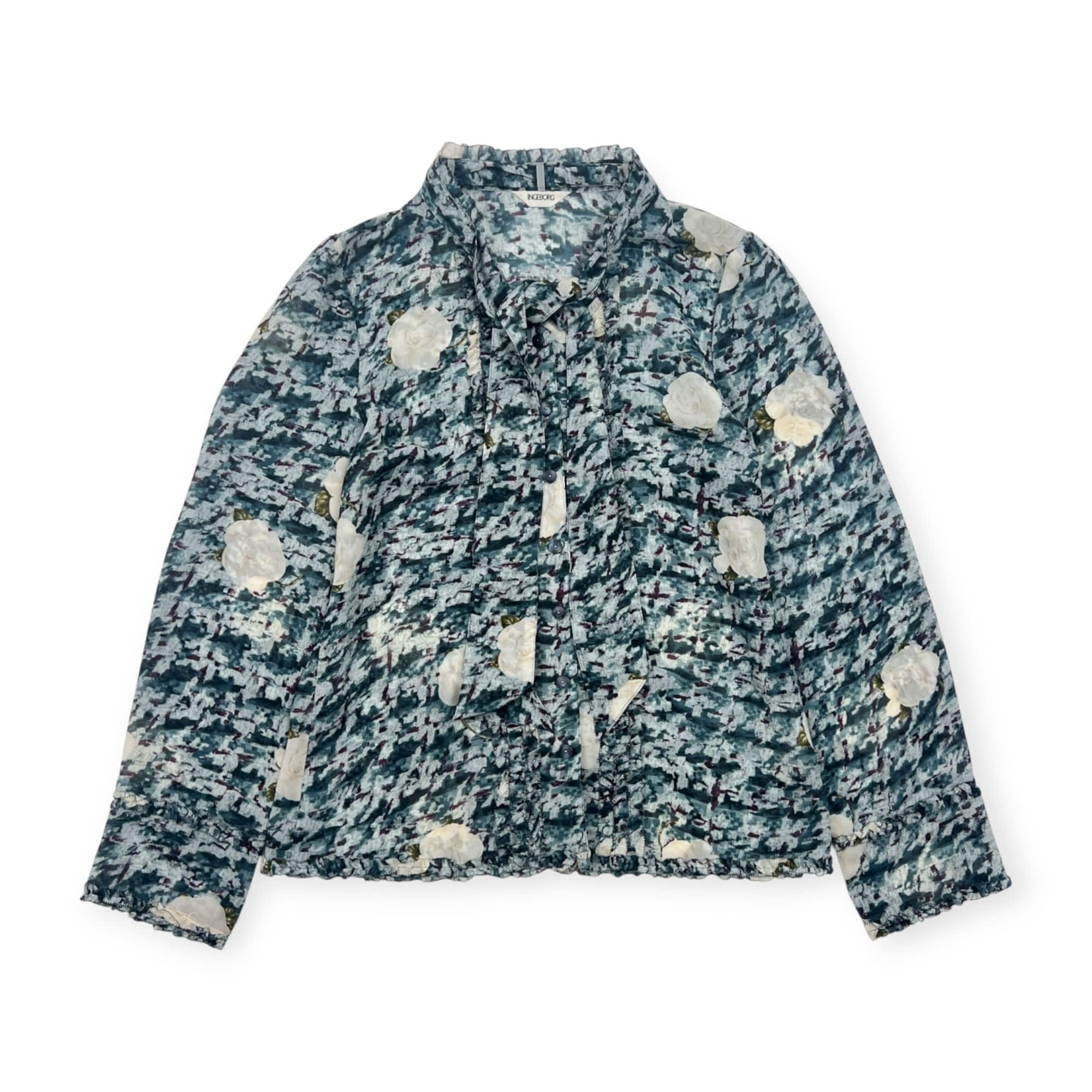 INGEBORG インゲボルグ ボウタイ バラ 総柄 シースルー 長袖 シャツ ブラウス 9/ブルー系 レディース