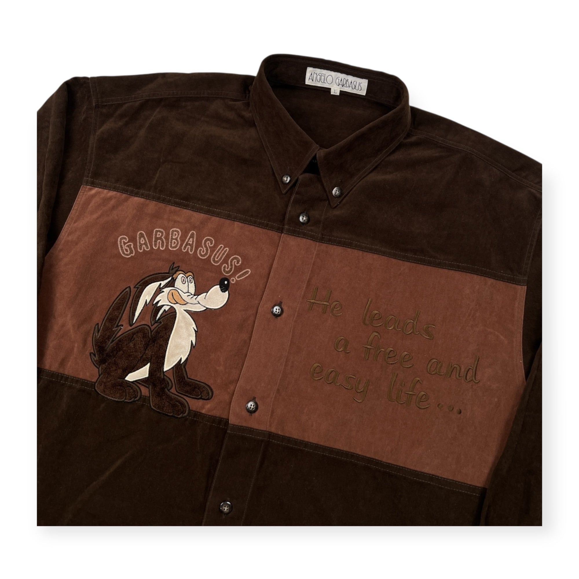 ANGELO GARBASUS アンジェロ ガルバス キャラ刺繍 BD 長袖シャツ サイズ L /メンズ/ブラウン/日本製