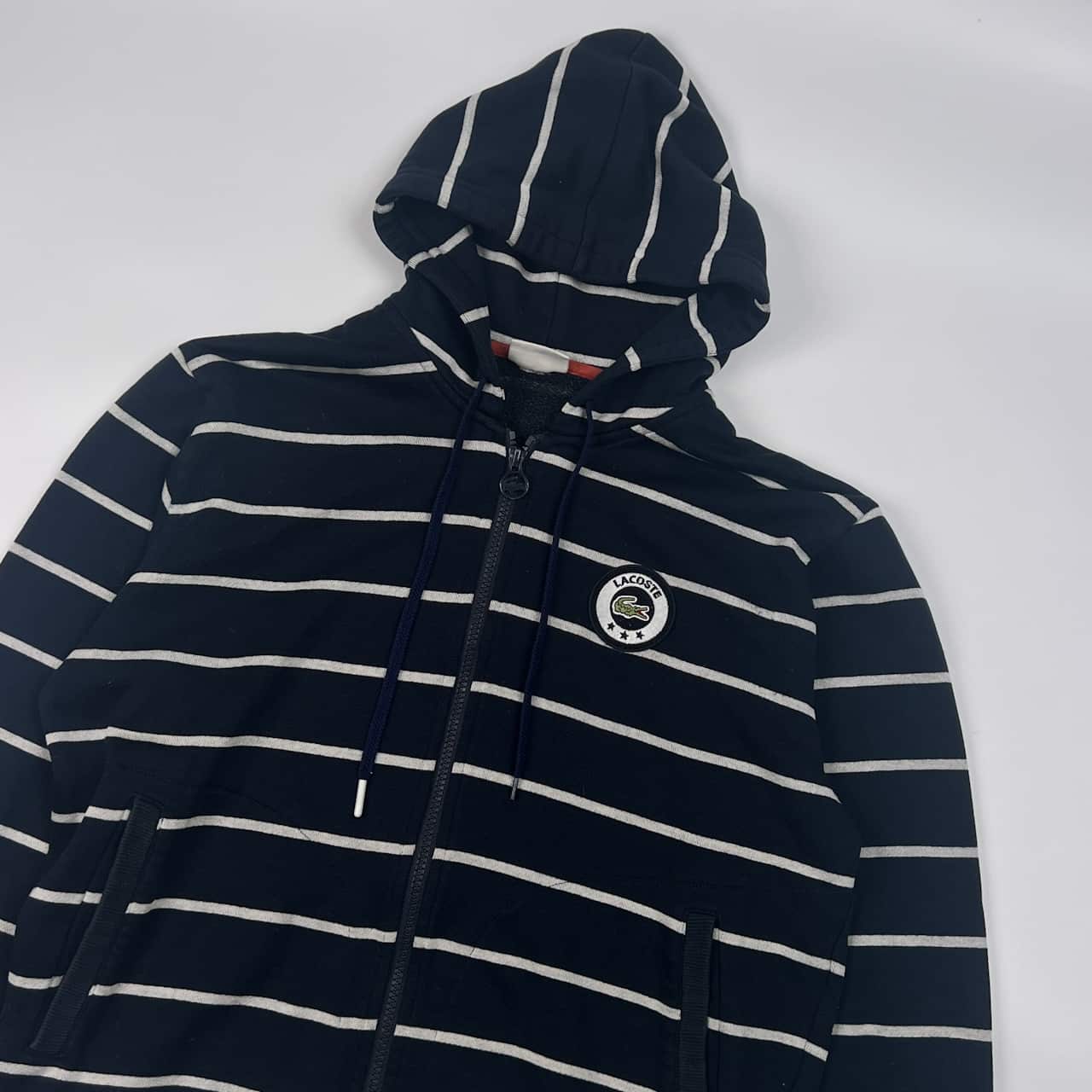 LACOSTE ラコステ ボーダー ダブルジップ 裏起毛 パーカー 4/ネイビー メンズ