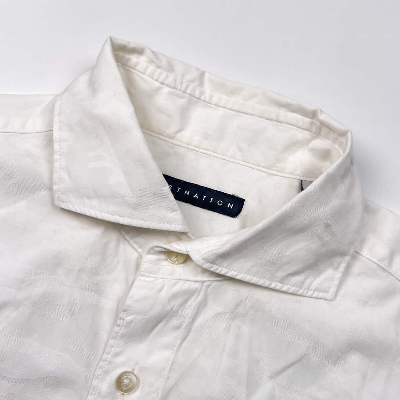 ESTNATION エストネーション カモフラ 迷彩 デザイン ワイドカラー 長袖シャツ M/ホワイト メンズ