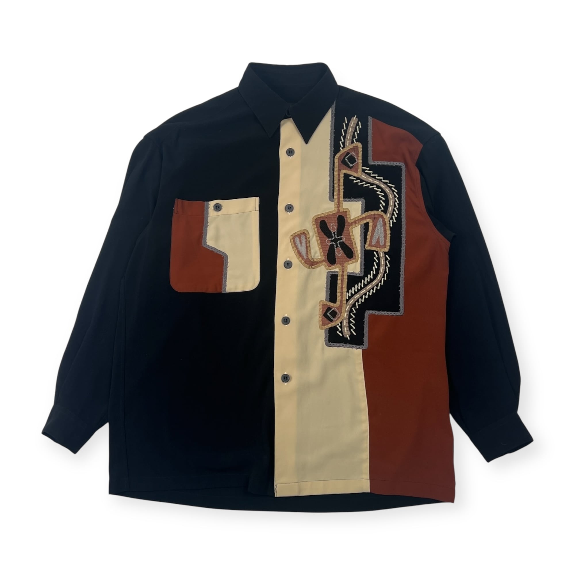 santa fe サンタフェ 刺繍 デザイン 長袖シャツ 03/ブラック系 メンズ