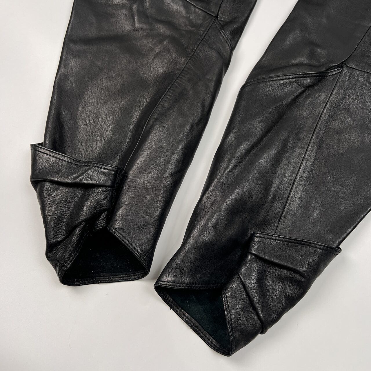 希少 レア GIANNI VERSACE ジャンニ ヴェルサーチ 裾巻きデザイン レザー パンツ サイズ 38 /レディース/本革/ブラック/ビンテージ