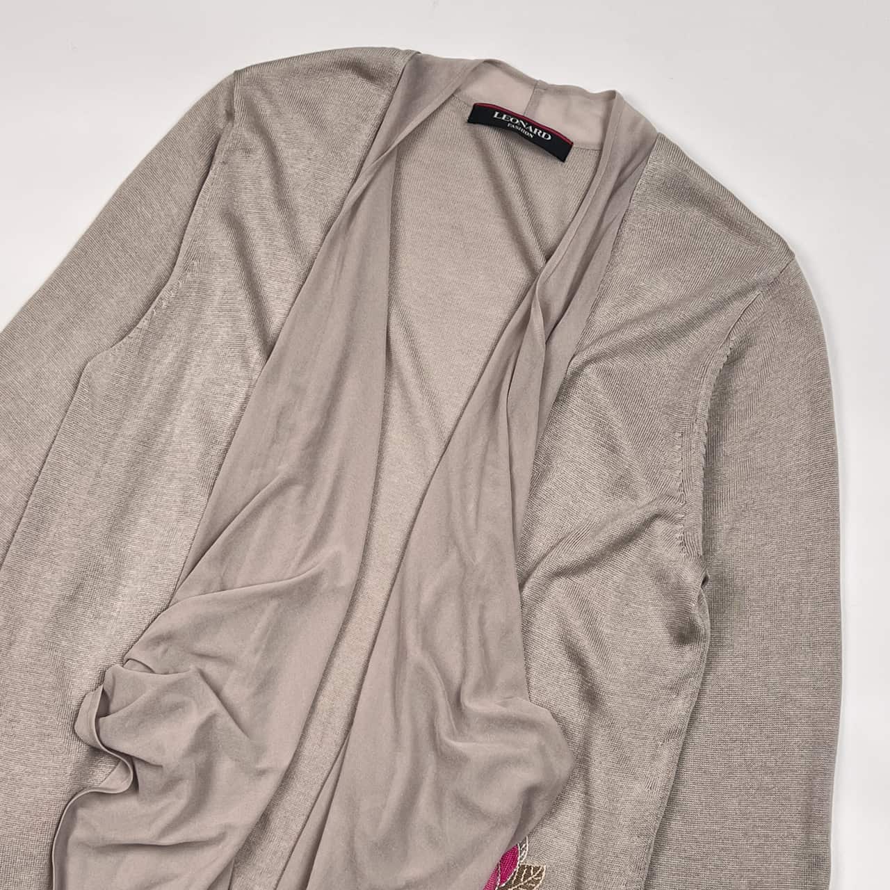 シルク混 LEONARD レオナール 刺繍 デザイン ハイゲージ ニット カーディガン 40/グレー レディース