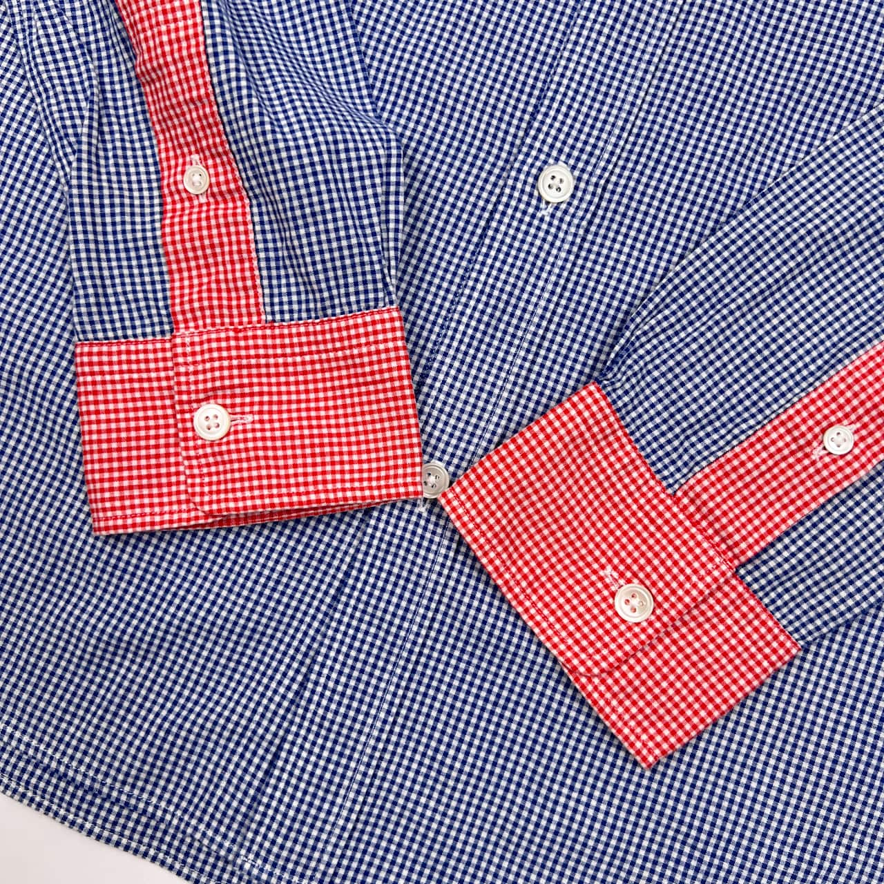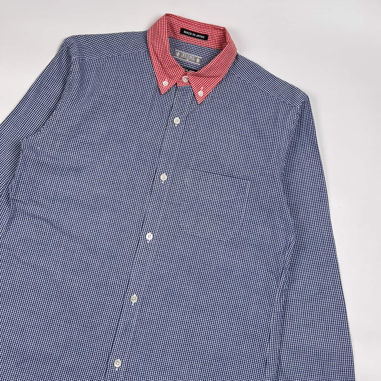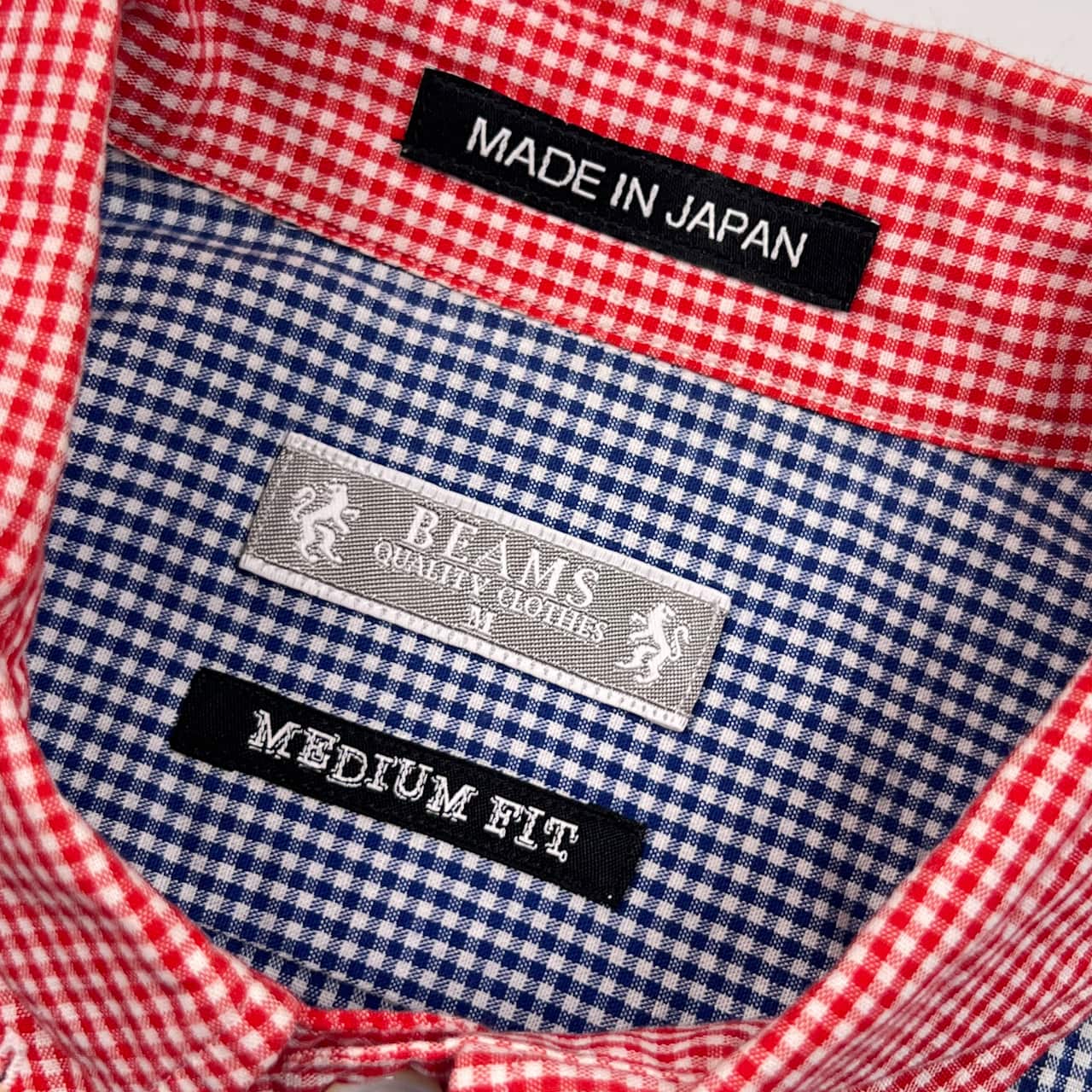 BEAMS ビームス ギンガムチェック BD ボタンダウン 長袖シャツ クレリックシャツ M/レッド×ブルー メンズ