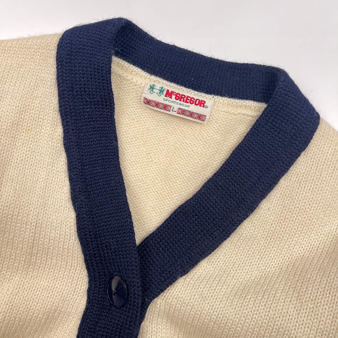 McGREGOR マクレガー チルデン ウール ニット カーディガン L/アイボリー×ネイビー系 レディース