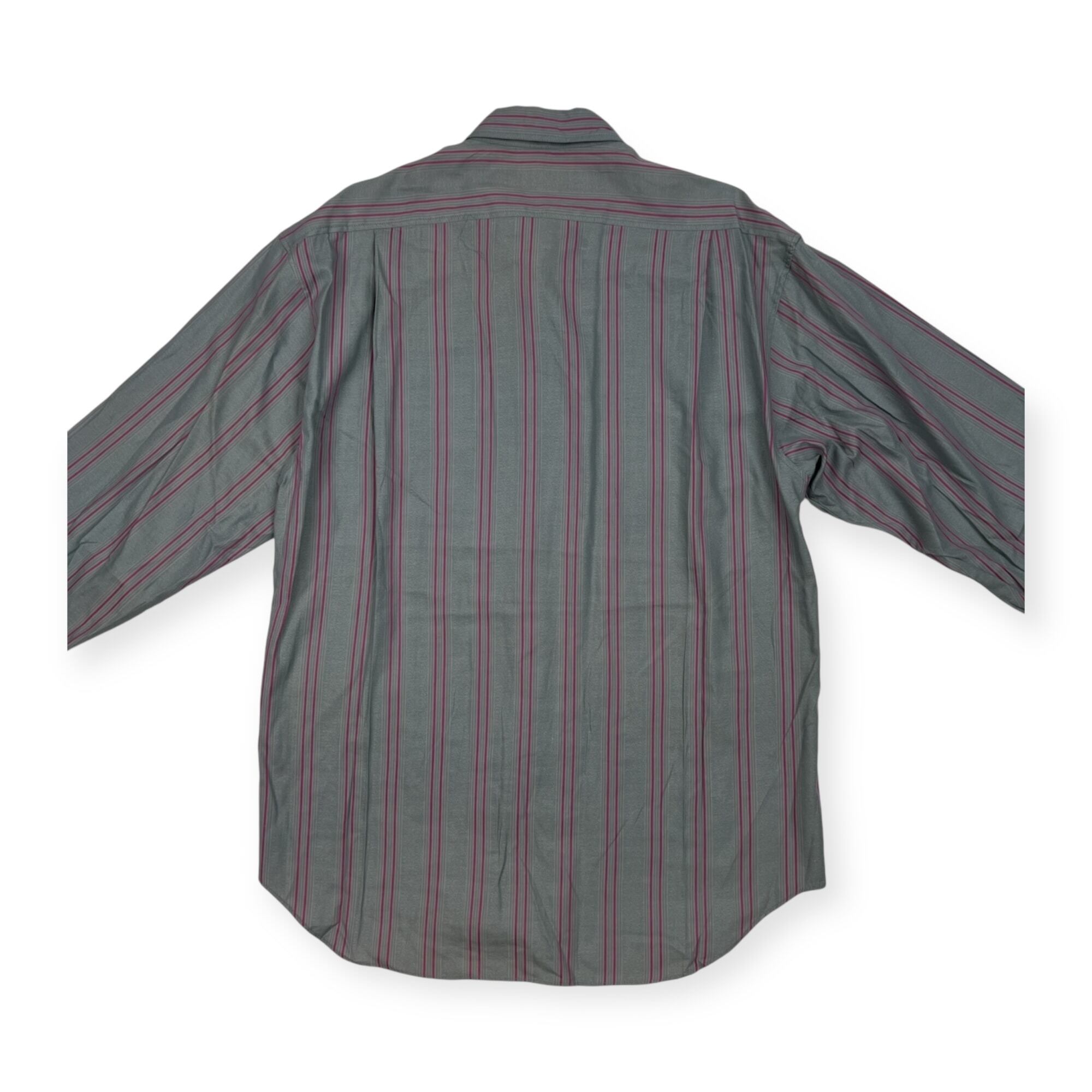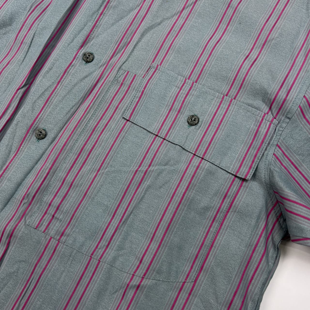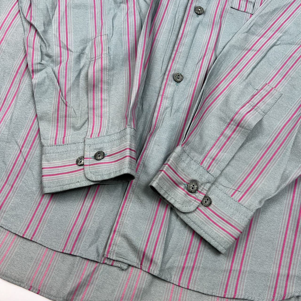 希少 90s GIURIO AGATE 1990 デザインポケット ストライプ 長袖シャツ 48 /メンズ/オールド/ビンテージ/ブルーグレー系×ピンク