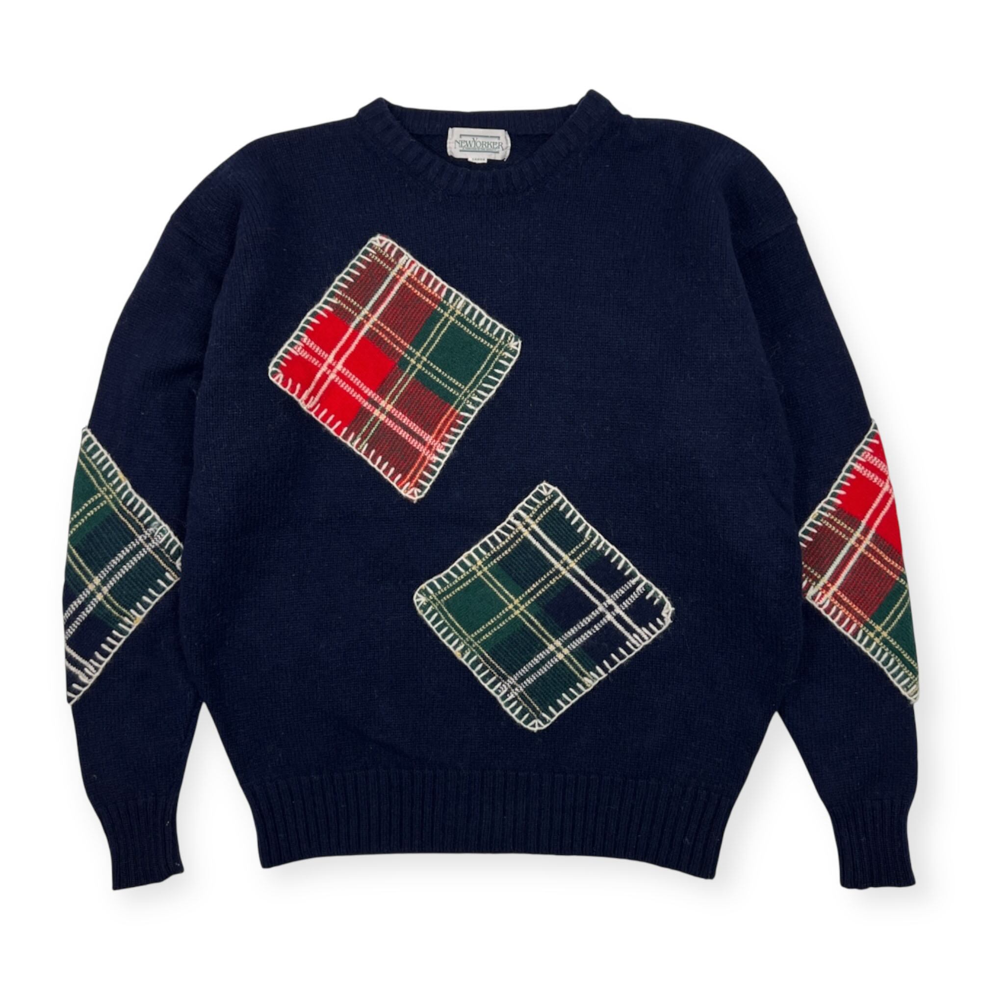 NEWYORKER ニューヨーカー チェック柄 アーガイル ダイヤ柄 ウールニットセーター サイズ L /メンズ/ネイビー