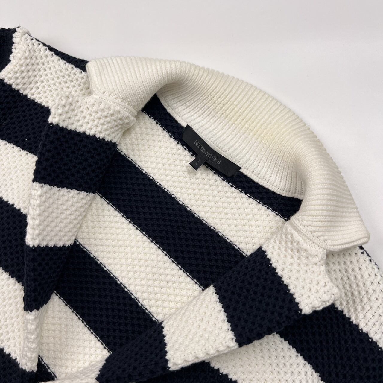 DESIGNWORKS デザインワークス アバハウス ボーダー柄 コットン ニット テーラードジャケット サイズ L /メンズ/ホワイト×ネイビー