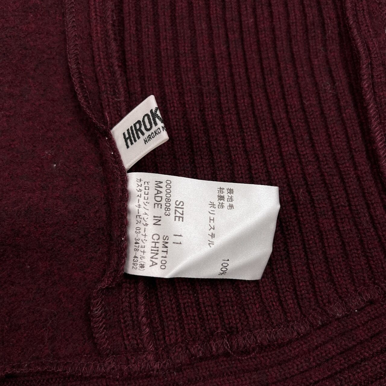 HIROKO BIS ヒロコビス ヒロココシノ デザイン ウールニット ジャケット カーディガン サイズ 11 /ボルドー