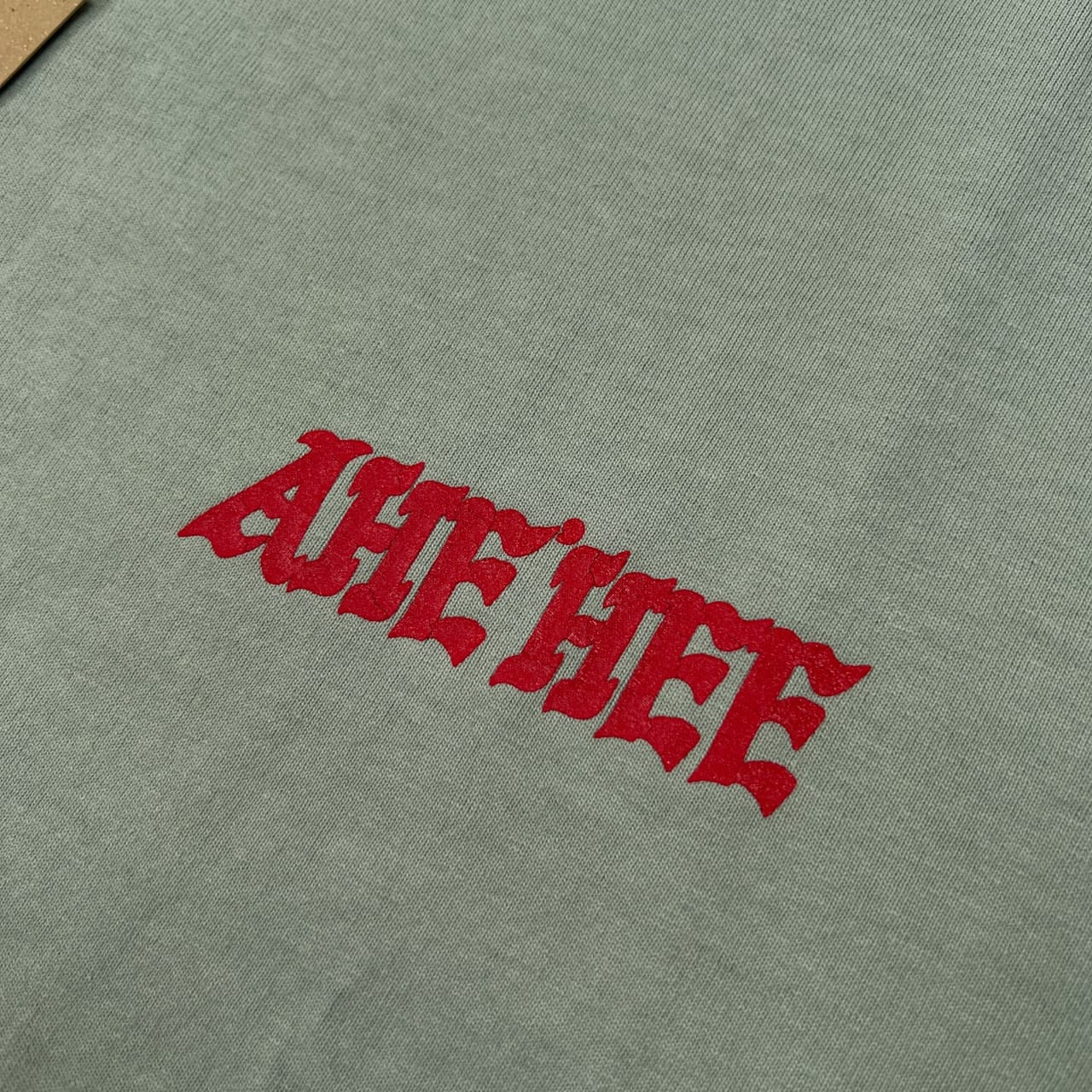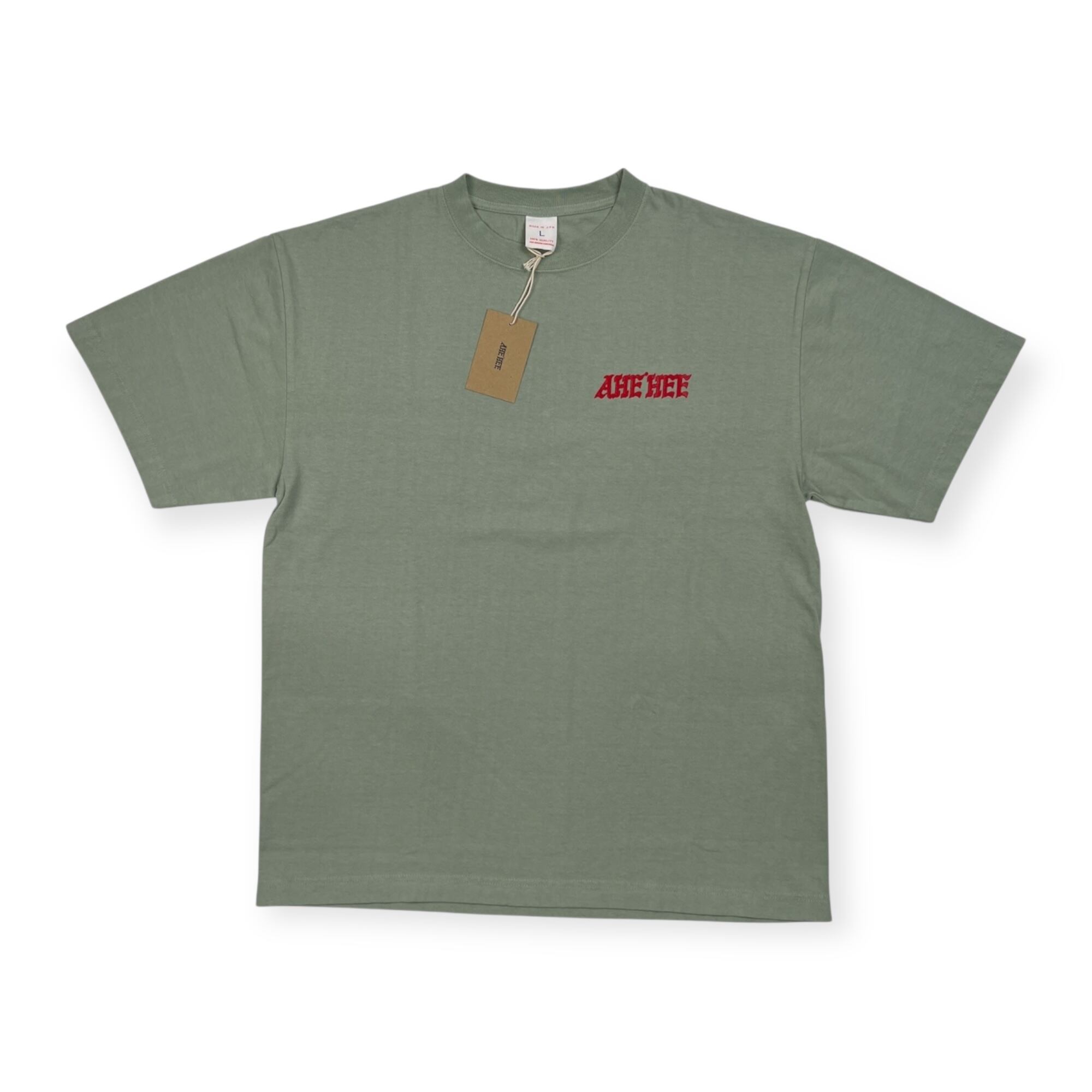タグ付き 未使用品 Ahe'hee / アヘヘ ロゴプリント 半袖Tシャツ カットソー サイズ L /グリーン系/日本製