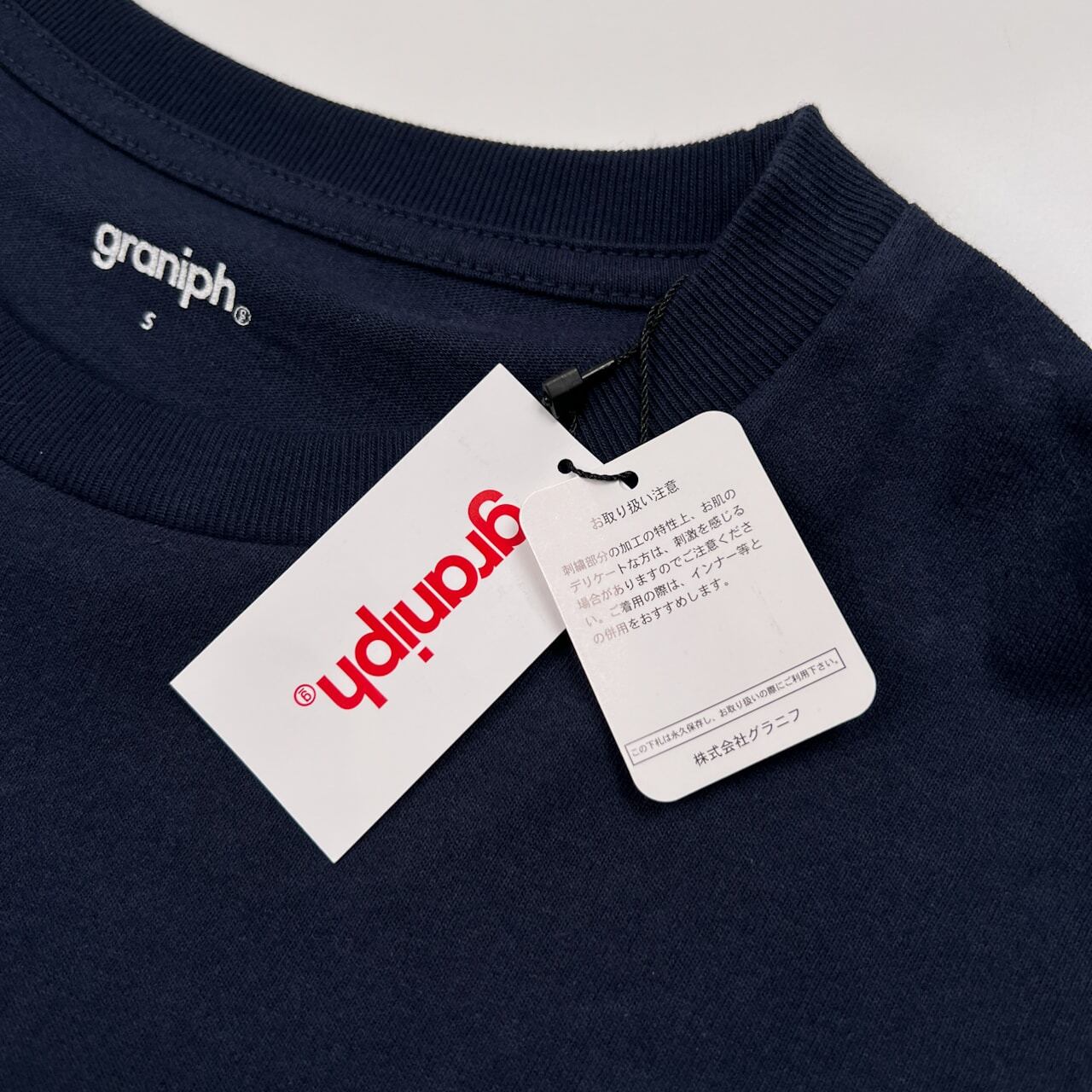 タグ付き 未使用品 graniph グラニフ MOULI アニマル 動物刺繍 ワッペン 半袖Tシャツ カットソー サイズ S /ネイビー
